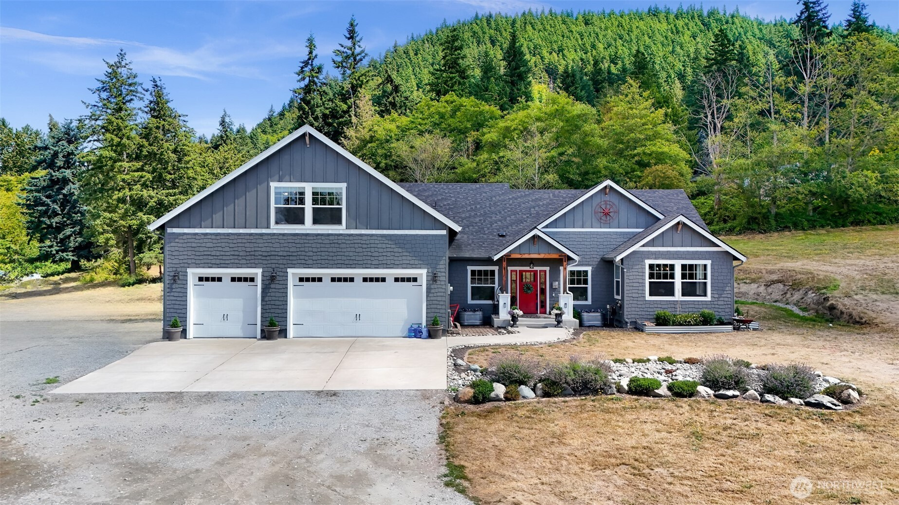 Impeccable NW Contemporary, Mid Century Home in desirable Hillcrest area of Mount Vernon. This well taken car of home boasts 3 bedrooms, 2bathrooms, featuring 2680 sq. ft and sits on a landscaped, private lot. 1950's styling in woodwork, cabinets and built ins. Double pane windows, private decks all overlooking Skagit Valley. Upgraded kitchen with quartz countertops, stainless steel appliances, and double oven. Large master suite with upgraded bathroom and deck to view the valley and sunsets. Fully fenced yard. New metal roof in 2021. New furnace in 2020. Dog run off mud room.