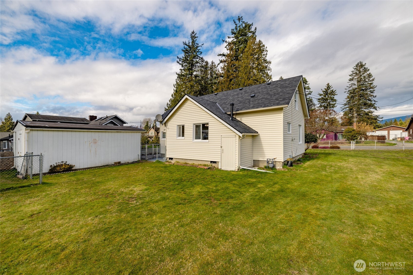 Charming and move-in ready 3-bedroom home situated on a spacious double lot! This property offers the perfect blend of comfort, function, and flexibility. Inside, you’ll find fresh interior paint throughout and beautiful hardwood flooring in the living room, creating a warm and inviting space to call home. The home and detached 1-car garage both feature brand-new roofs, gas furnace is approximately 6 years old, and the gas water heater is only 1 year old, which adds peace of mind. A step-in, jetted bathtub provides convenience and accessibility. Outside, the fully fenced yard offers security and room to spread out, with multiple outbuildings ideal for storage, hobbies, or workspace. The basement has built in shelving for added storage as well! There’s plentiful parking with a paved driveway, plus dedicated RV parking with 50-amp service — perfect for travelers, guests, or extra vehicles. With room to grow and space to enjoy, this versatile property is ready to fit a variety of needs. Don’t miss this opportunity!