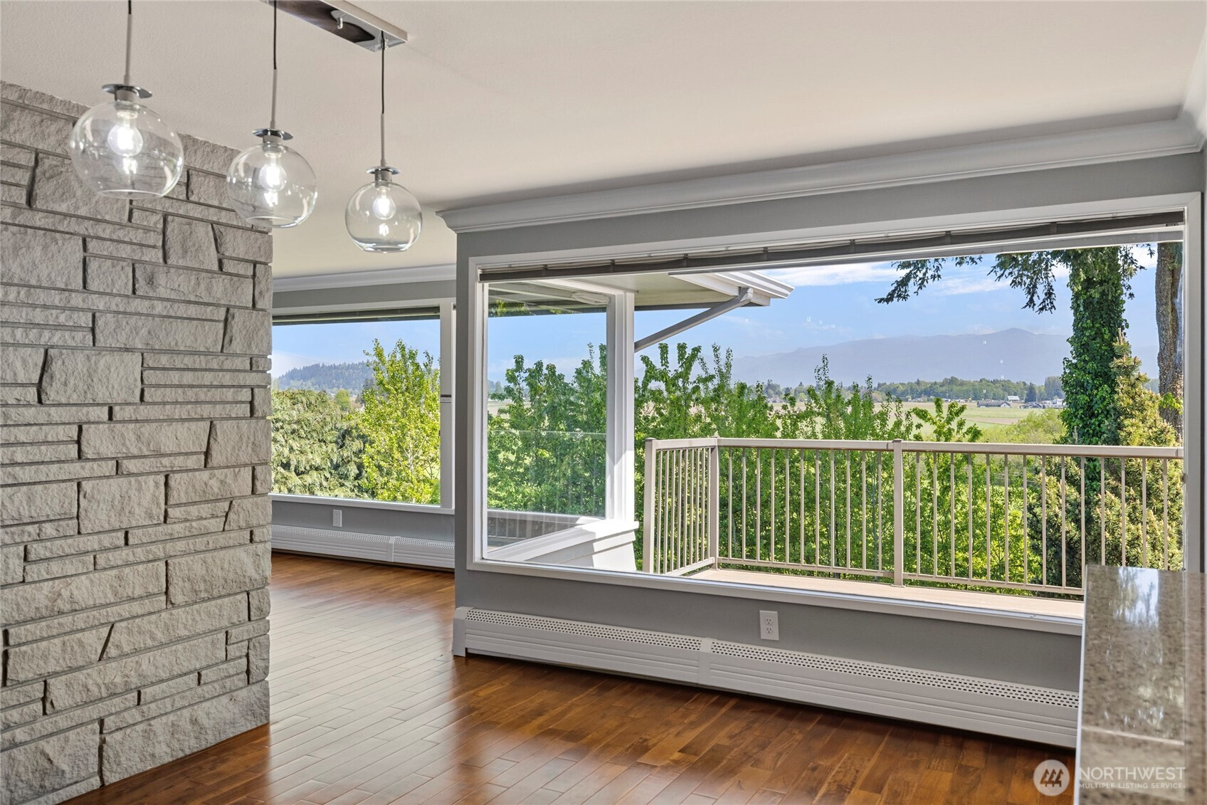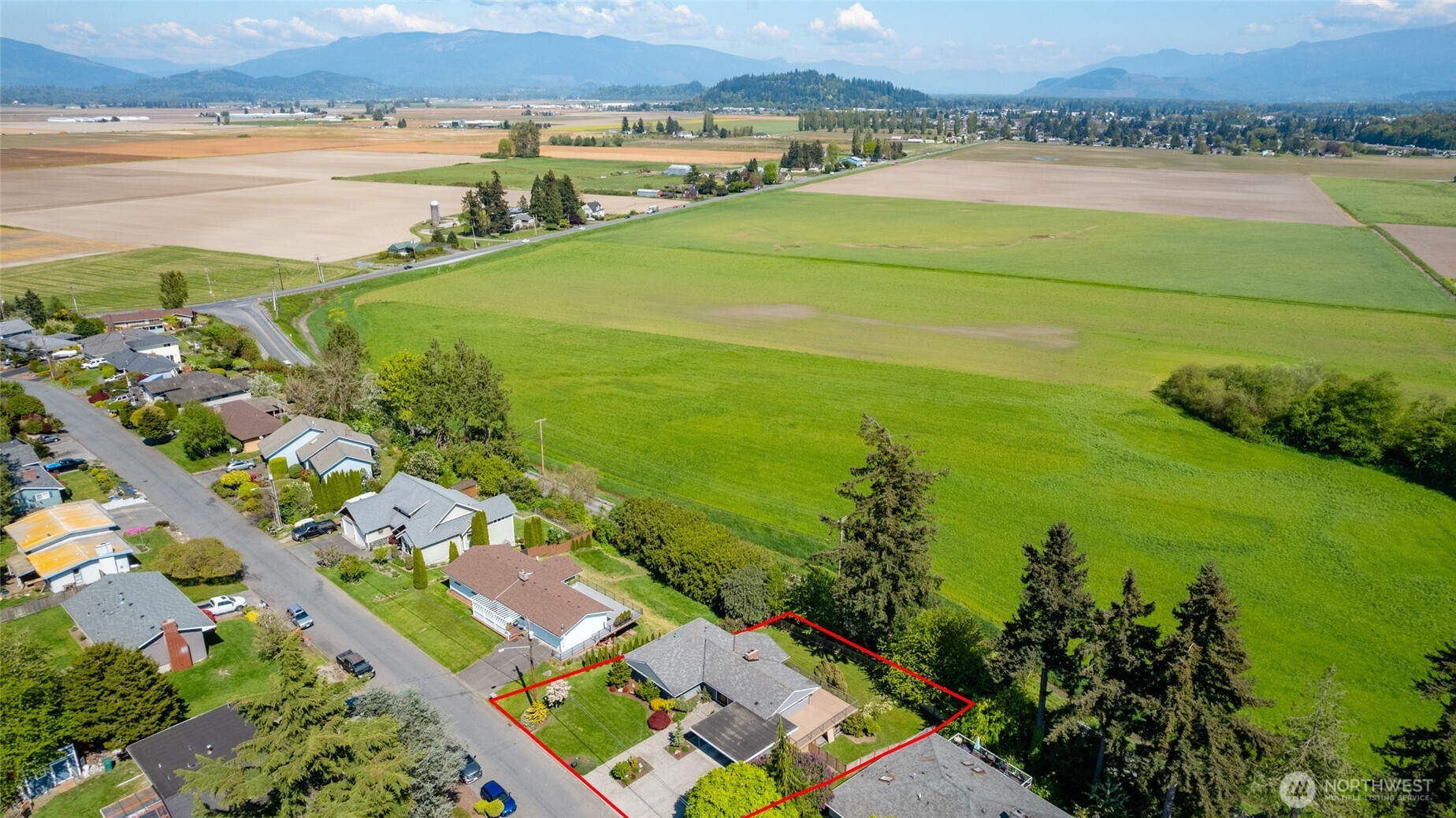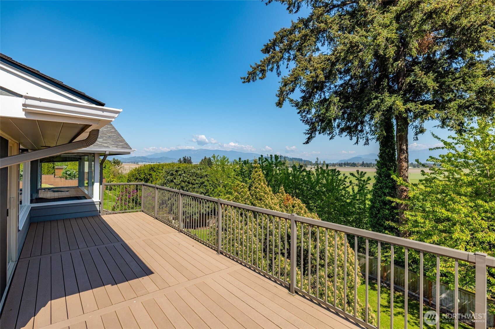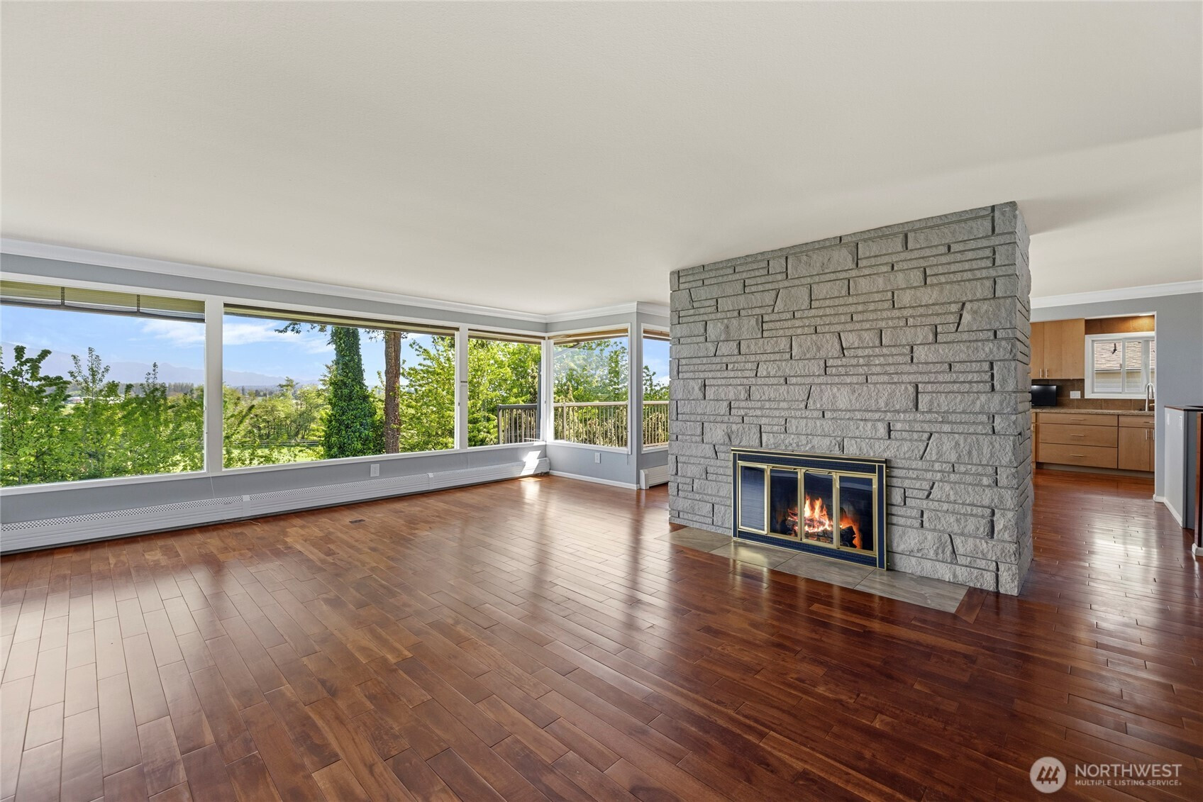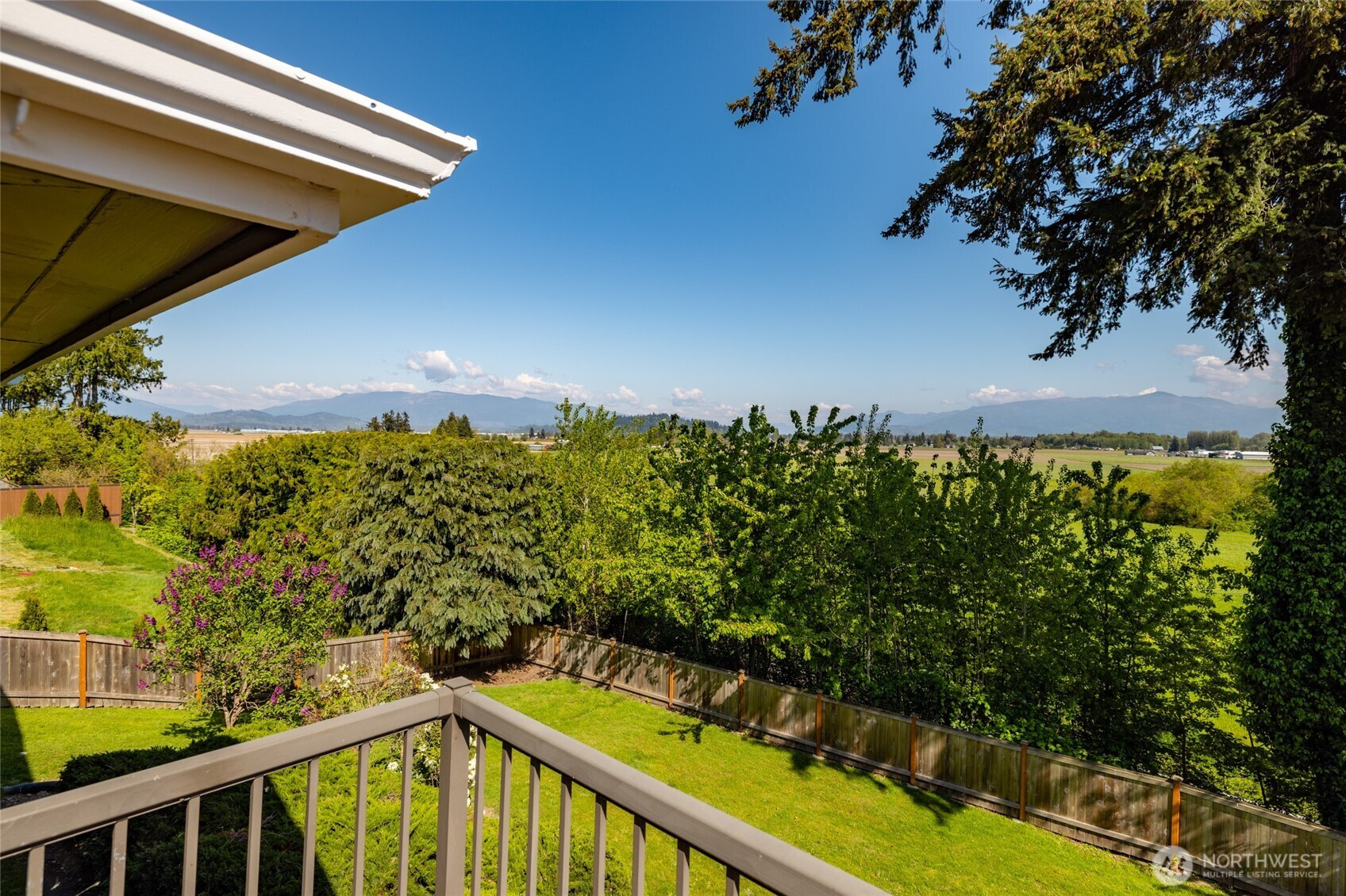 Step inside this captivating mid-century home with its cool, distinctive curb appeal and subtle NW-inspired landscaping that sets it apart from the ordinary. A welcoming 2-car carport leads to the front door, where an open-concept kitchen, living, and dining area greets you with warmth and style. A massive stone fireplace anchors the spacious main living area, while expansive windows frame breathtaking valley and mountain views. Hardwood floors flow throughout, enhancing the light-filled, airy feel. The kitchen showcases a lovely mid-century aesthetic, seamlessly opening to a large deck—perfect for dining al fresco while soaking in the scenic panorama and overlooking the expansive fenced yard. On the main level, the cozy primary bedroom offers an ensuite bathroom featuring a walk-in tiled shower, soothing soaker tub, double vanity, and generous walk-in closet. Two additional bedrooms and a full hall bathroom complete this level, providing comfort and convenience for guests. Downstairs, the daylight basement reveals versatile living space: a 4th bedroom/office, a huge bonus room, a finished flex room, laundry, and abundant closet/storage options. Walk-out access to the backyard makes indoor-outdoor living effortless.Nestled near the prestigious Skagit Golf and Country Club with no HOA, this home delivers peaceful living with excellent commuting access in all directions. Ideal for those seeking character, views, space, & flexibility in a prime location.