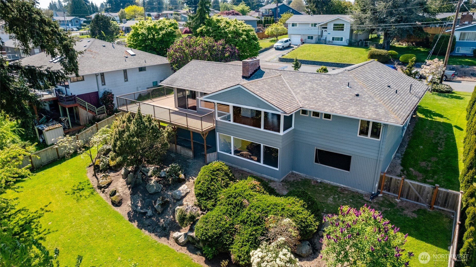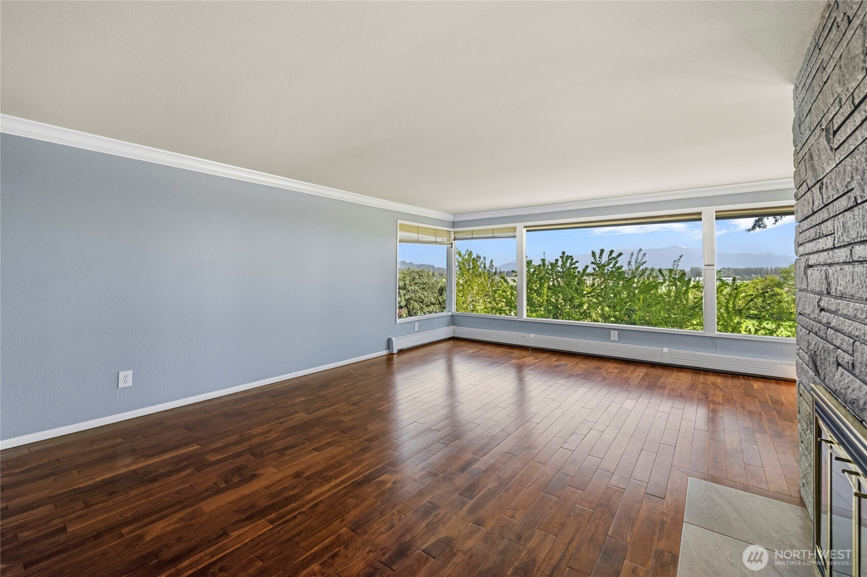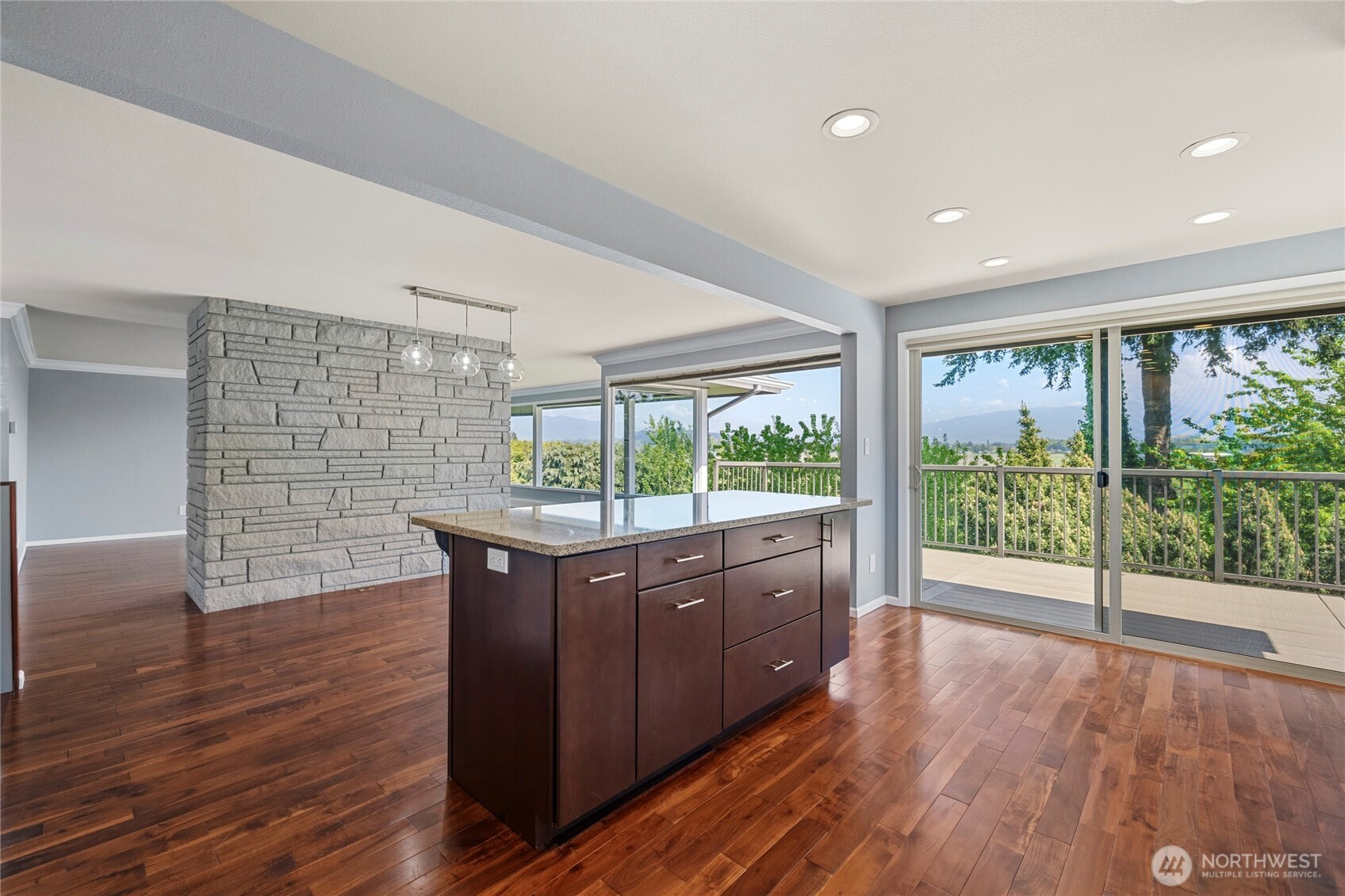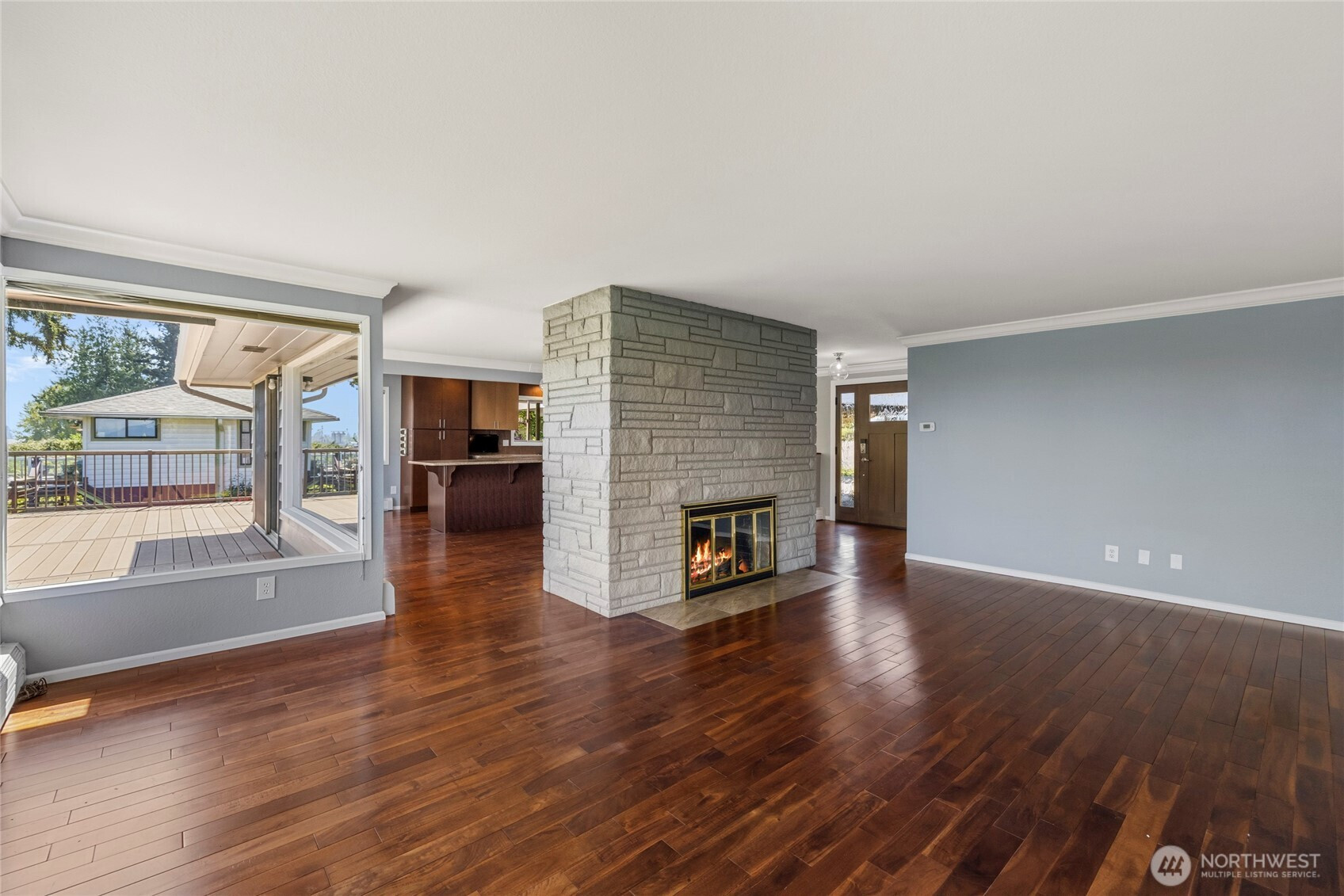 Step inside this captivating mid-century home with its cool, distinctive curb appeal and subtle NW-inspired landscaping that sets it apart from the ordinary. A welcoming 2-car carport leads to the front door, where an open-concept kitchen, living, and dining area greets you with warmth and style. A massive stone fireplace anchors the spacious main living area, while expansive windows frame breathtaking valley and mountain views. Hardwood floors flow throughout, enhancing the light-filled, airy feel. The kitchen showcases a lovely mid-century aesthetic, seamlessly opening to a large deck—perfect for dining al fresco while soaking in the scenic panorama and overlooking the expansive fenced yard. On the main level, the cozy primary bedroom offers an ensuite bathroom featuring a walk-in tiled shower, soothing soaker tub, double vanity, and generous walk-in closet. Two additional bedrooms and a full hall bathroom complete this level, providing comfort and convenience for guests. Downstairs, the daylight basement reveals versatile living space: a 4th bedroom/office, a huge bonus room, a finished flex room, laundry, and abundant closet/storage options. Walk-out access to the backyard makes indoor-outdoor living effortless.Nestled near the prestigious Skagit Golf and Country Club with no HOA, this home delivers peaceful living with excellent commuting access in all directions. Ideal for those seeking character, views, space, & flexibility in a prime location.