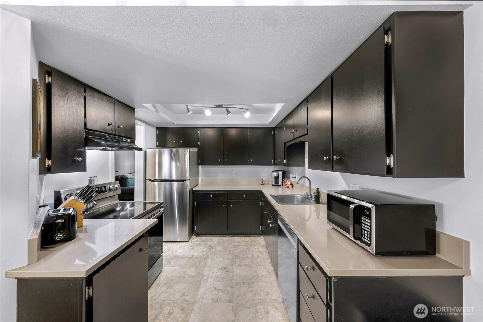 Why rent when you can own? Discover this beautifully updated 3-bedroom, 1.5-bath condo in the heart of Mount Vernon, offering an affordable path to homeownership or a smart investment opportunity. This move-in-ready home has been thoughtfully refreshed with modern upgrades throughout, including fresh two-coat interior paint on ceilings, walls, and trim, all-new flooring, and updated lighting fixtures. The kitchen shines with new appliances, countertops, refurbished cabinets, and a stylish range hood, while the bathrooms feature a new vanity and fixtures for a clean, contemporary feel. Enjoy peace of mind with a new electrical panel, switches, plugs, and a recently installed water heater. The living room boasts a custom wood slab epoxy fireplace mantel, adding a unique touch of warmth and character. Step outside to your large covered deck, perfect for relaxing or entertaining year-round, rain or shine. This condo offers a functional layout and an unbeatable location close to downtown Mount Vernon, schools, the hospital, shopping, and easy freeway access. Low monthly dues include water, sewer, and garbage, helping keep monthly costs manageable. All appliances stay, including washer and dryer, so you can settle in with ease.