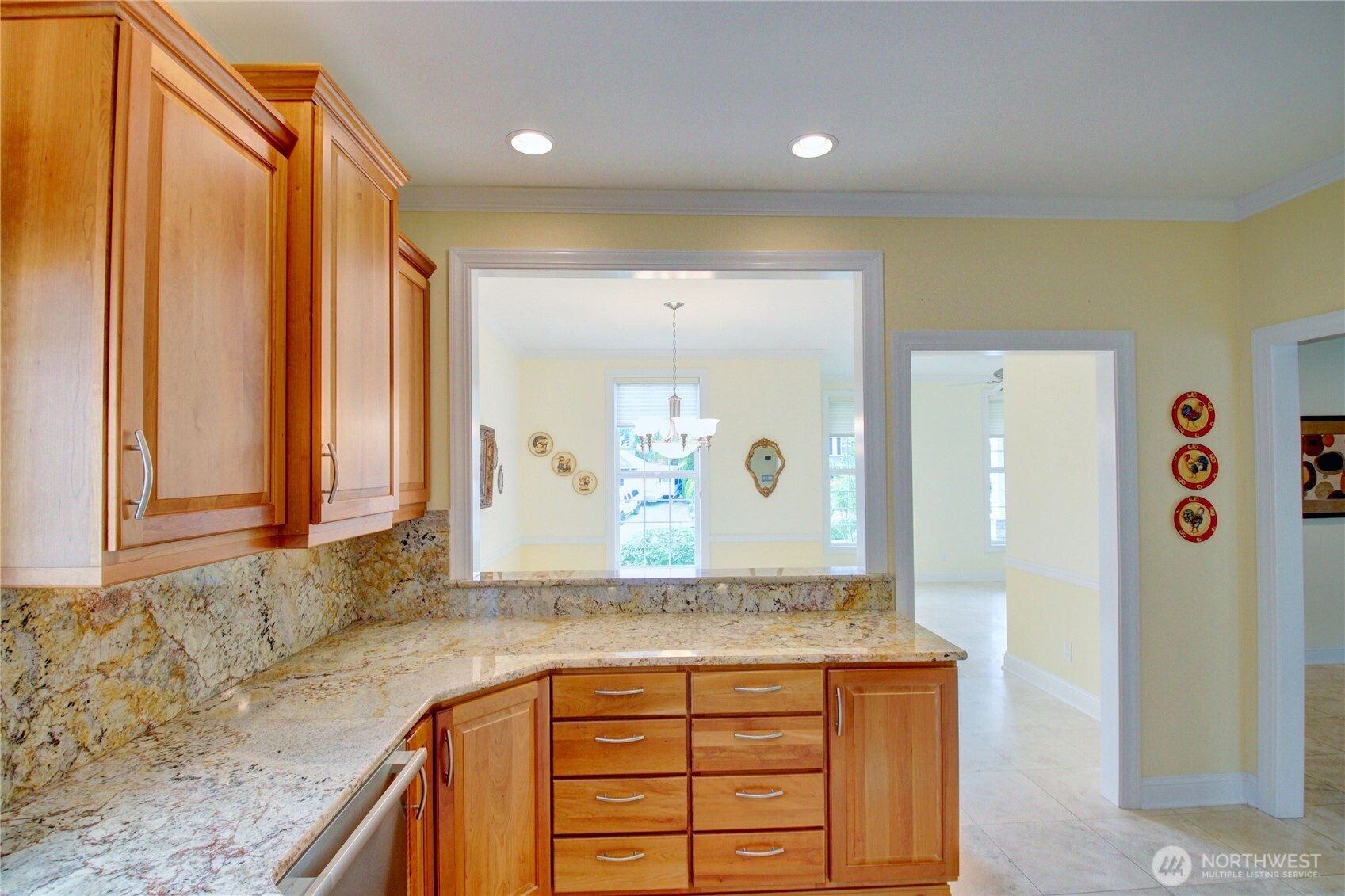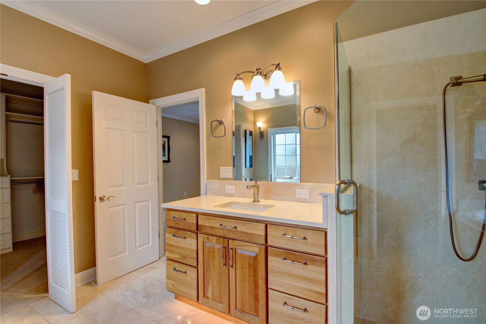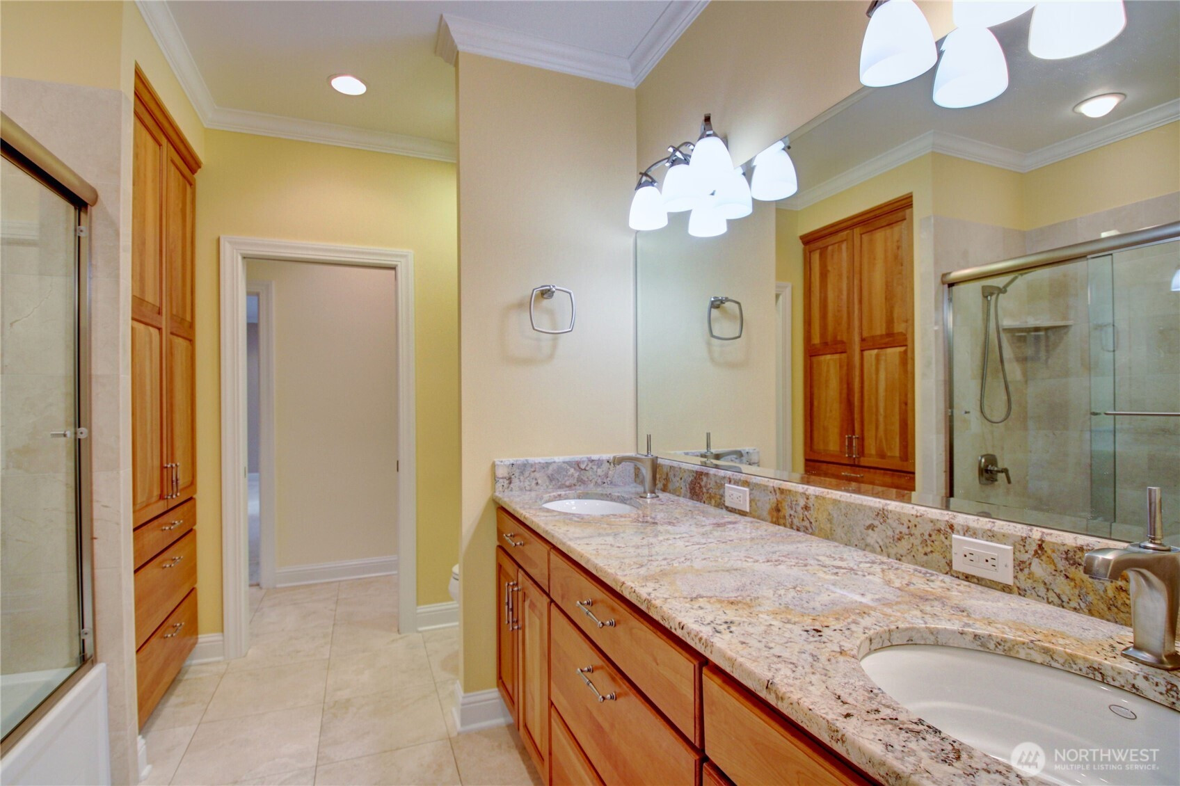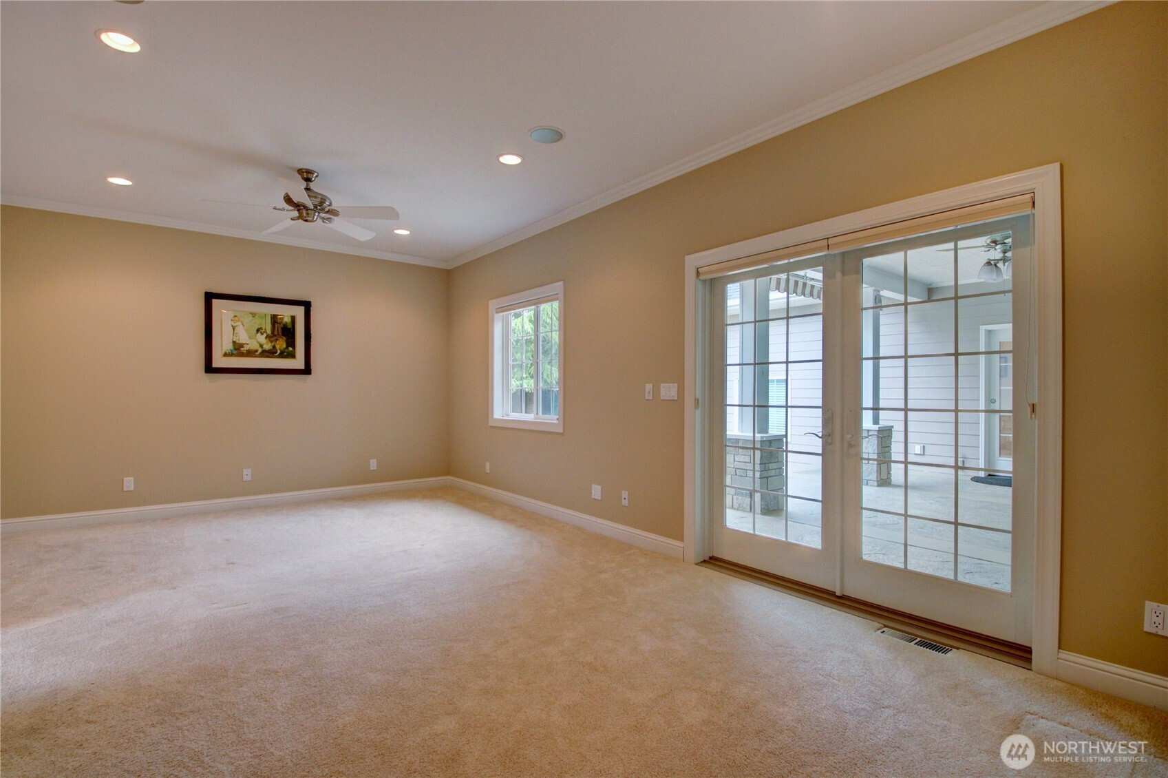 Welcome to this immaculate 2,471 sq ft rambler with beautiful tile floors and a spacious living room with a beautiful fireplace, surround sound, and 3 French doors opening out to a fabulous, covered patio and a lower patio overlooking a fully fenced backyard retreat. Enjoy mature landscaping, lush lawn, a water feature, fire pit, irrigation system, storage shed and a small greenhouse-perfect for entertaining and gardening. The chef's kitchen features a Sub-Zero refrigerator, double ovens, abundant top of the line cabinets, pantry area, and eating bar. Dining room and cozy family room for comfortable gatherings. Spacious primary suite includes room for a sitting area and a French door out to the patio. Primary bath offers soaking tub with bubbler, large shower, db. sinks and wonderful walk-in closet. Two guest bedrooms each feature walk in closets. Large laundry room with ample storage. Heat pump provides efficient air conditioning for summer comfort Nearly 1,100 sq ft 3 bay garage offers extensive cabinets, deep sink, shop space, stair access to an impressive overhead storage area. Mudroom with 3/4 bath conveniently located off garage entry. Terraced front yard and welcoming covered front porch complete this exceptional home!