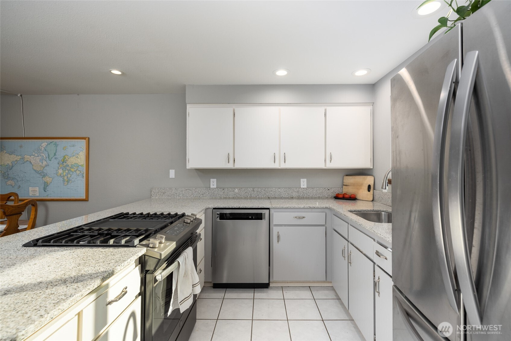 Move-in ready end unit w/attached private garage and driveway. Seller has updated the unit with engineered hardwood flooring throughout, new interior paint, new water heater (2022), new furnace (2025), and a gorgeous primary bath with tile slower, new vanity and flooring. Spacious open living/dining area with natural gas fireplace. Kitchen has stainless appliances, including gas range, fridge, and dishwasher. Pantry. Laundry in unit. Primary bedroom has a big walk-in closet and private 3/4 bath. Guest room/office also has a walk-in closet. Full guest bathroom. Enclosed patio. Attached garage fits two cars, plus driveway services only this unit. Roof was replaced in February of 2025. Great Country Club location close to everything.
