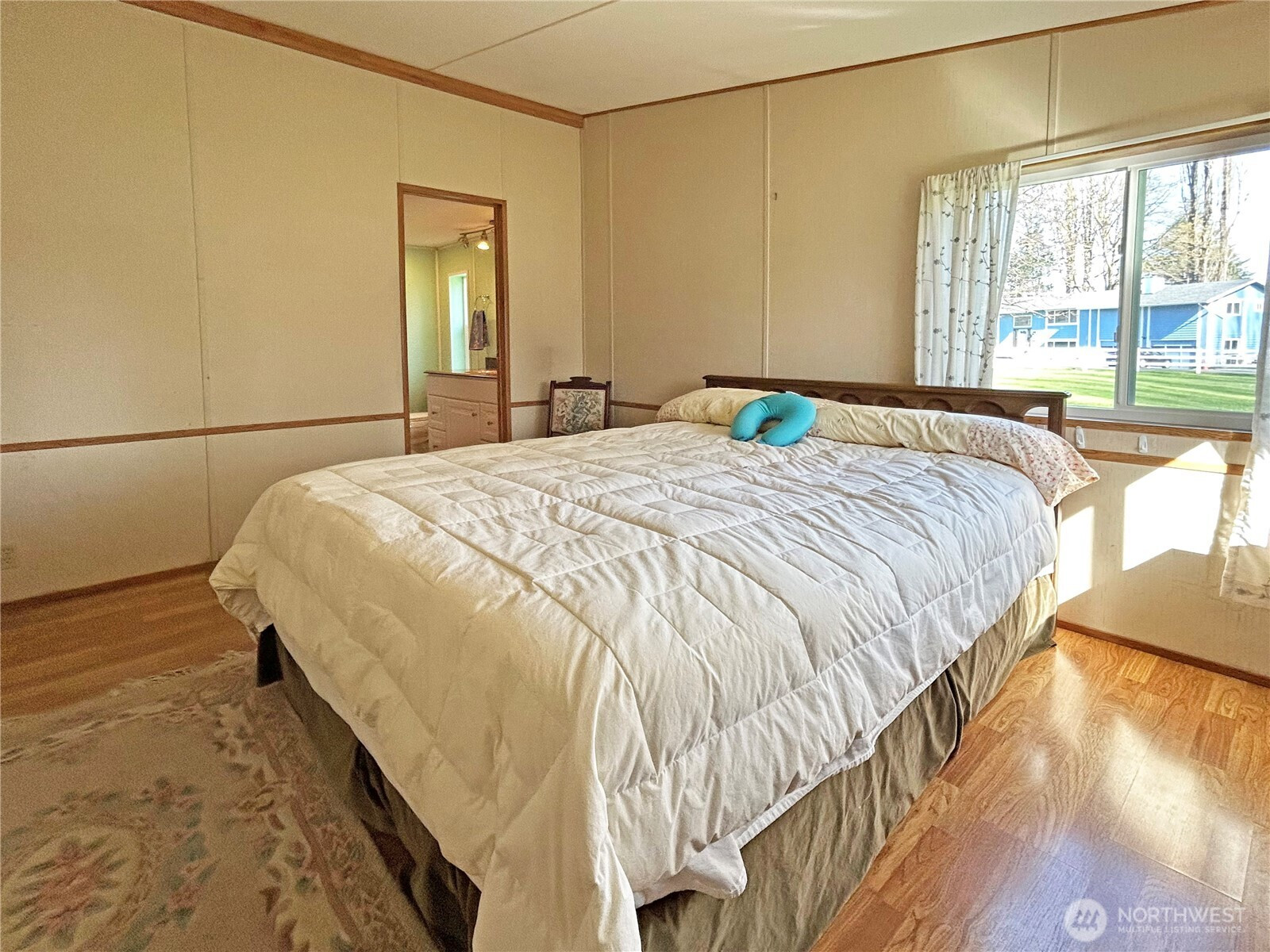 Welcome home to this three-bedroom manufactured home on a flat quarter acre+ with a 20 x 20 shop and no HOA's or park fees and plenty of parking. Tucked away on Markwood Road, this home has vaulted ceilings, ceiling fan, space for a garden, room for a play area, and RV parking. All appliances stay, including the free-standing freezer. New composition roof in 2019 and home and shop were painted in 2023. Easy access to I-5, Hwy 20, shopping and amenities!