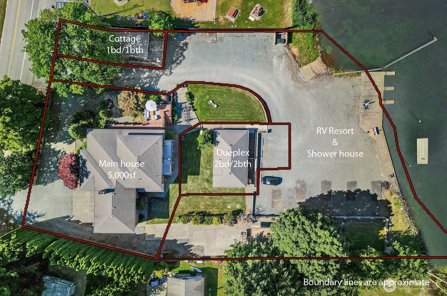 Incredible opportunity on Clear Lake! 4 separate parcels offer endless possibilities, whether you’re looking to host large gatherings, create a recreational retreat, or take advantage of its income potential. 4 parcels are as follows: main house (5,047 SF with 3 bdrms/1.75 bths), duplex (each 1 bd/.75 bth), guest cottage (459 SF with 1 bd/.75 bth) & waterfront lot. Originally built in 1994, all structures have been thoughtfully updated. Enjoy lake life just steps away, plus boat slips & boat launch. With 9 RV pads & guest amenities including showers, laundry & restrooms, this property is set up for hosting all visitors. All of this in a peaceful setting, just 5 mins to Mount Vernon & I-5. It’s recreation, entertainment & income all in one!