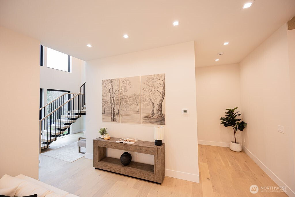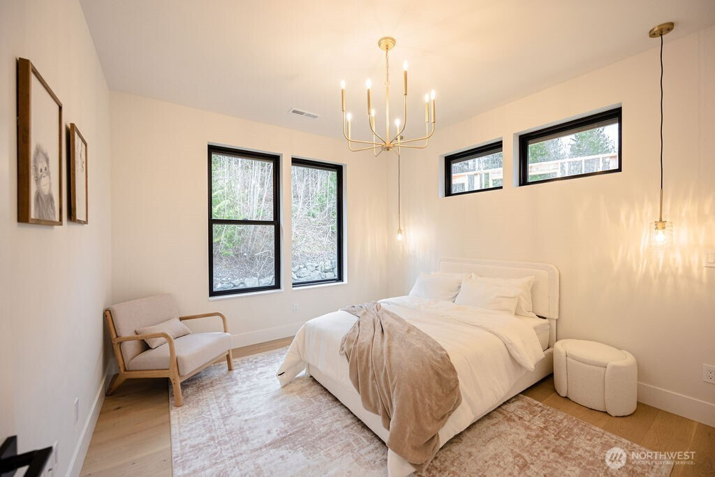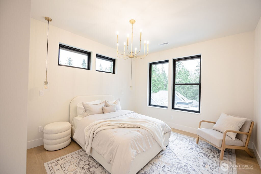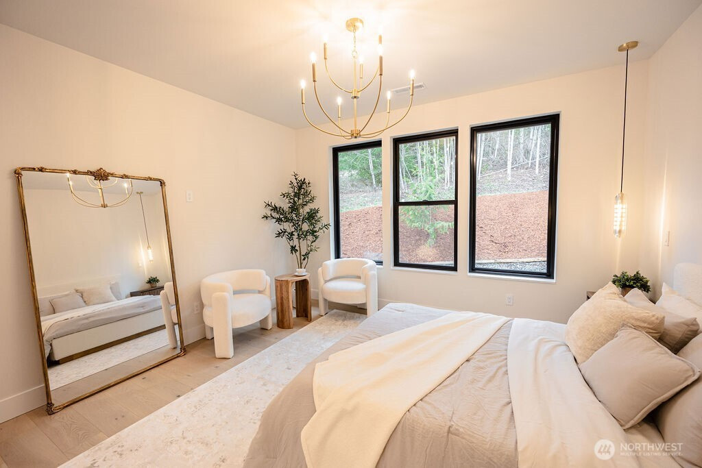 Beautiful custom modern home in the desirable Eaglemont neighborhood. This 2500+ sqft home features 3 beds, 3 baths, & a thoughtfully designed floor plan filled with natural light. Enjoy a chefs kitchen with premium Thermador appliances, large quartz island, brass finishes & a butlers pantry. High ceilings, large windows, oak floors & high end finishes throughout create a luxury feel. Primary suite is a private oasis on its own, packing a double shower, heated tile floors, free standing tub, bidet, large walk in closet full of natural light, & floor to ceiling windows. Set on a 10,800+ sqft lot with the highest quality built to last finishes this home blends modern style with everyday comfort. Irrigation system in place.