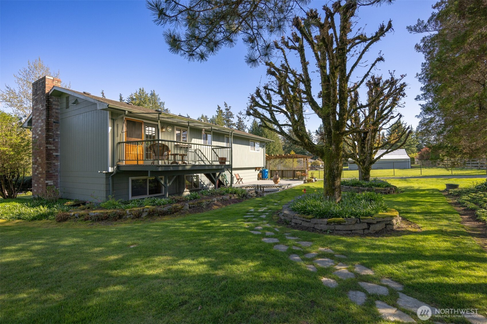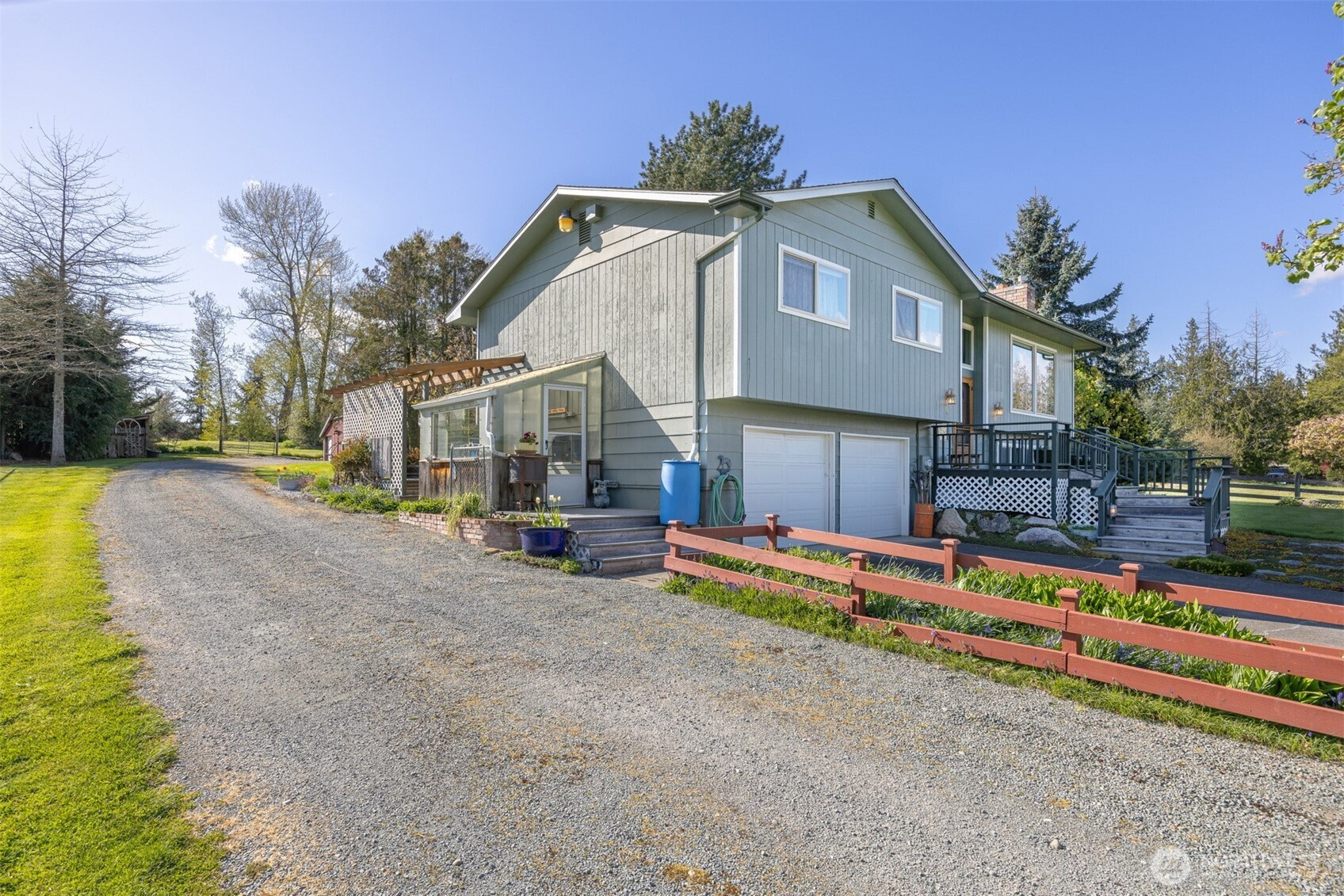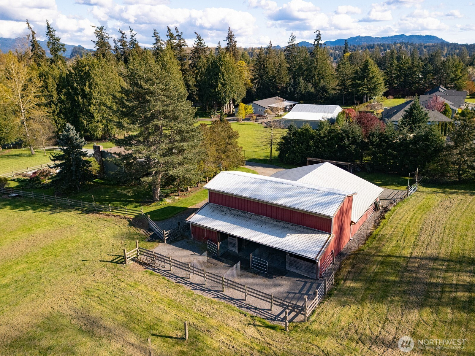 Welcome to your private 5-acre retreat, ideally situated on a highly sought after dead end lane bordering city limits, offering rare privacy with the convenience of nearby amenities and sweeping views of Mt. Baker and the Barney Lake Preserve. Just blocks from the local elementary school and minutes to town, this property blends peaceful country living with everyday accessibility. The standout feature is the impressive 3,000 sq ft shop, complete with a new roof, insulation, and full electrical, perfect for hobbies, storage, or business use, plus two enclosed side sheds for added versatility. Equestrian and hobby farm enthusiasts will appreciate the 550 sq ft barn with a 3-horse stable, full tack room, hay loft with elevator, and dedicated paddock. Both pasture areas are fully fenced with electric fencing and include water access, ready for livestock. Designed with sustainability in mind, the property also features EV charging and 3 rain catchment systems for gardening and livestock needs. Garden lovers will be drawn to the immaculate flower and vegetable garden with an automated watering system, along with a greenhouse for year-round growing. The 3-bedroom, 1.75-bath home offers 1,840 sq ft with an open-concept kitchen, updated cabinetry, and a brand-new convection stove. Hardwood floors, two fireplaces, a new furnace, and a recently updated lower-level bathroom with a walk-in shower. A rare opportunity to own a versatile property with a prime, private location!