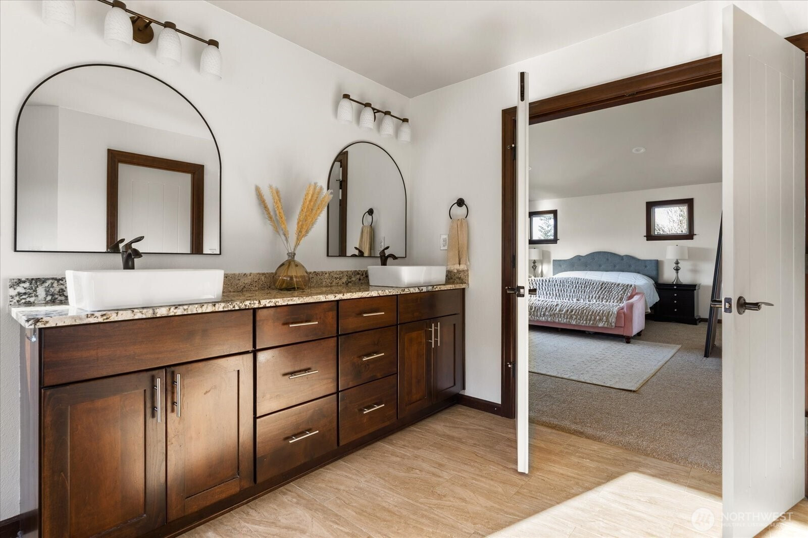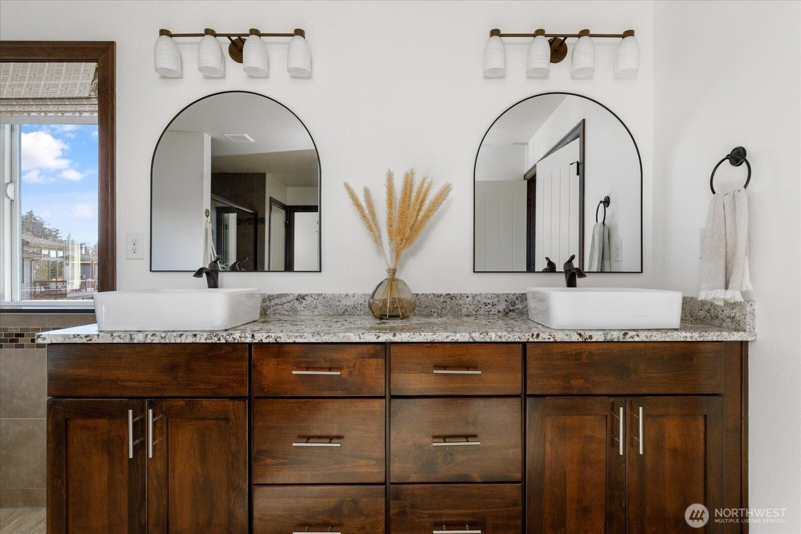 Stunning 2017 view home in sought-after Anacortes offering breathtaking ocean vistas from every room! Expansive picturesque windows frame the ever-changing beauty of the water and sky, filling the home with natural light and showcasing boats cruising through the Guemes Channel. Downstairs features a 4 car tandem garage with copper swirl colored professional epoxy flooring. A large entryway and large bedroom with its own walk in closet and full bathroom which makes for possible generational living. The main level features rich hardwood floors and an open, inviting layout designed to maximize both comfort and views. Upstairs, the spacious primary suite is a true retreat with a luxurious 5-piece bath, perfect for relaxing at the end of the day. Three additional bedrooms provide flexibility for guests, home office space, or hobbies. Step outside to the large back deck that seamlessly flows to a flagstone patio—ideal for entertaining or quiet evenings at home. Unwind in the hot tub while taking in sweeping water views, surrounding nature, and spectacular sunsets.This exceptional property combines modern construction, thoughtful design, and unparalleled scenery—an opportunity to enjoy Pacific Northwest living at its finest. Be sure to check out the virtual tour!