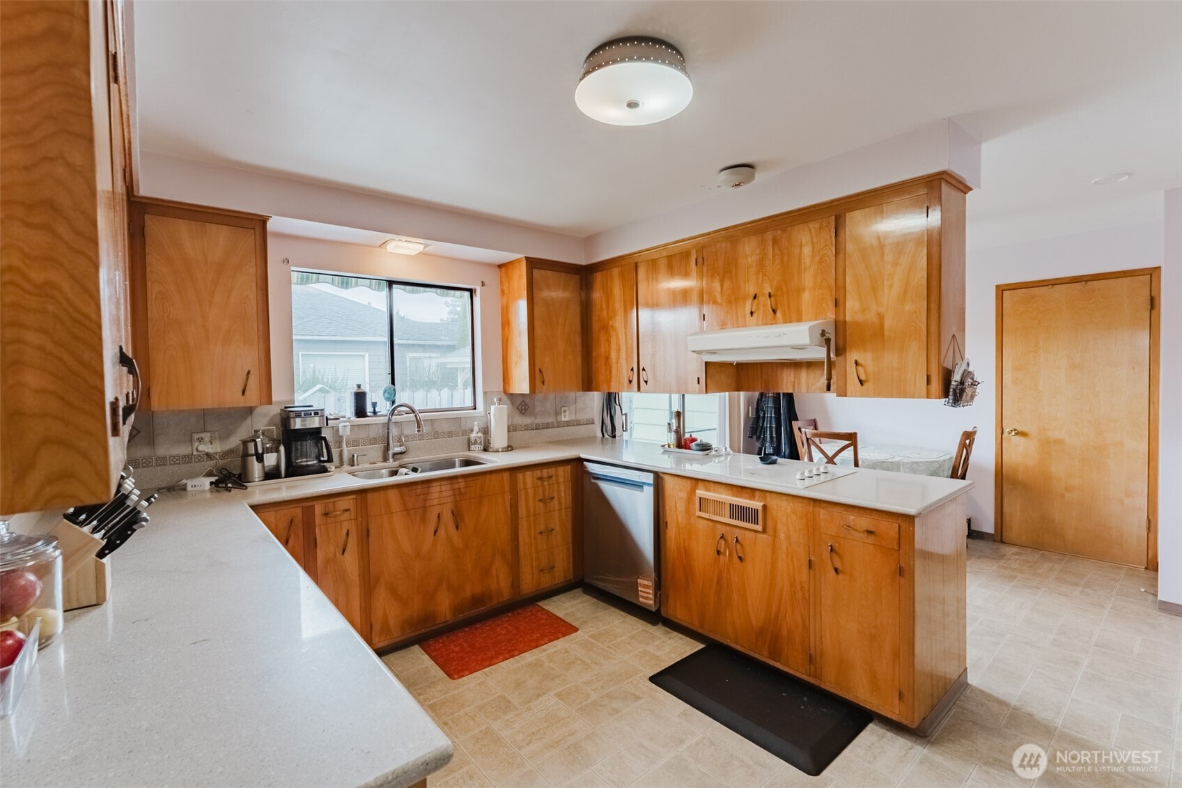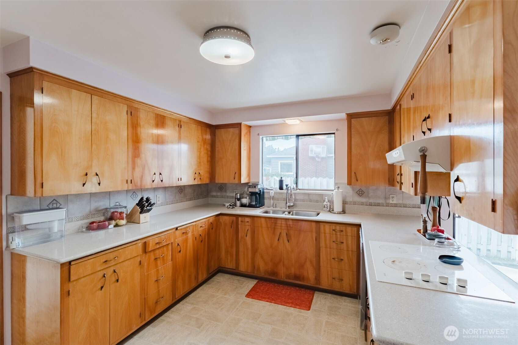 Experience the perfect blend of 1970s charm and modern reliability in this 2258sqft solid brick rambler located in the desirable Hillcrest Park neighborhood. This 3-bedroom, 2.25-bath home offers ultimate peace of mind with a new 50 year roof, new radiant heat boiler, and a new hot water tank. The interior boasts large built-in cabinets, a spacious living room with a brick fireplace, a formal dining area, and a cozy family room featuring classic knotty pine walls. Natural light pours through skylights into the kitchen and updated living spaces. Outside, you will find a fenced yard perfect for privacy and pets, all situated in a great location just steps from the park. The large two-car garage includes a convenient half-bath.