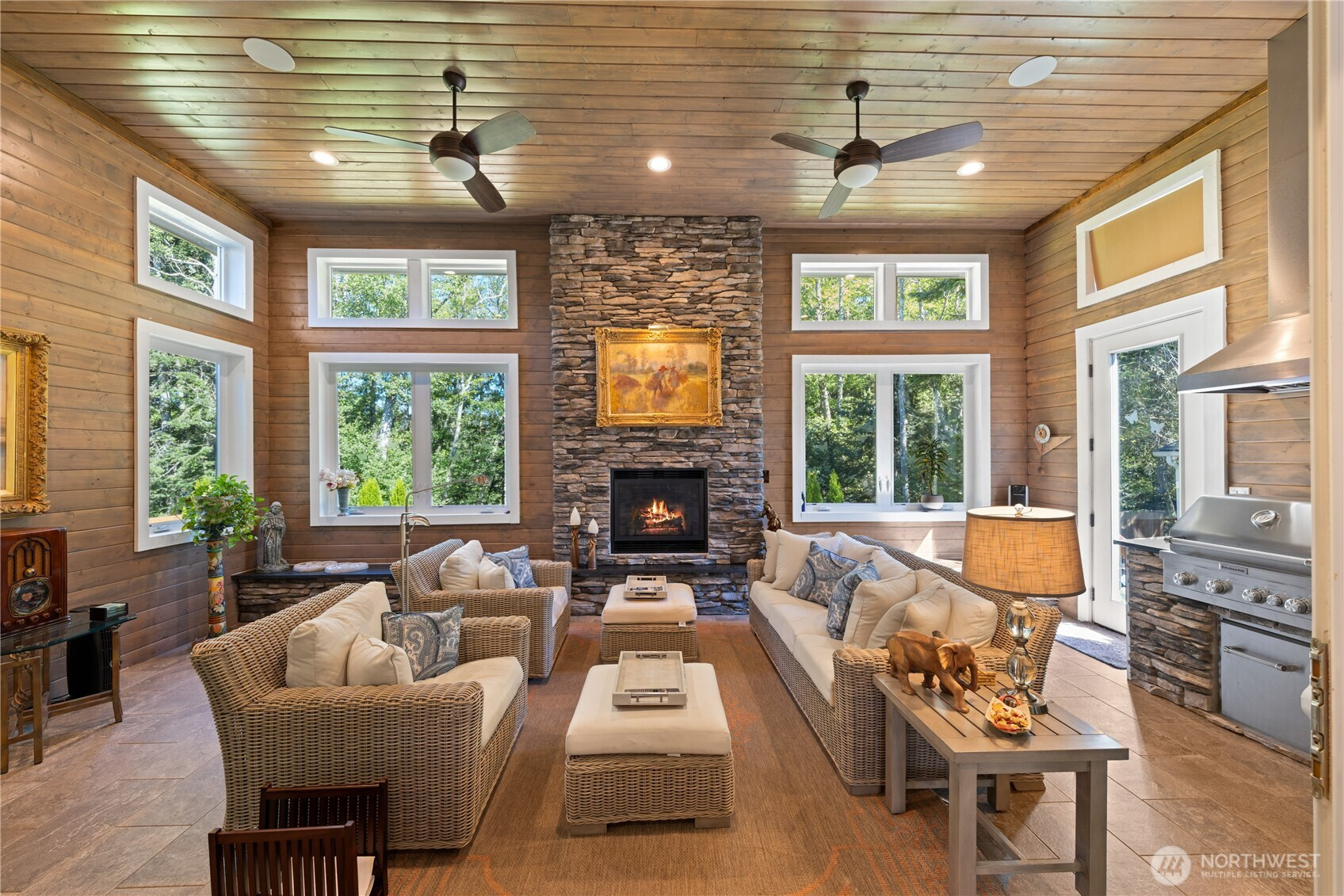 (503) 893-8874Step into luxury where high-end finishes and elegant box ceilings create an atmosphere of refined sophistication. The spacious kitchen, anchored by professional series KitchenAid appliances, becomes the heart of daily life and entertaining. Retreat to your primary suite featuring a stunning feature wall and spa-inspired bath, complemented by a generous walk-in closet. Outside, seamless indoor-outdoor living unfolds with a tiled covered enclosed area surrounding a stone gas fireplace and built-in BBQ—perfect for year-round gatherings. Complete with oversized 3 car garage, shop/shed, and generator-ready wiring, all nestled within the sought-after gated community of Deception Shores where privacy and comfort converge. Close to Deception Pass.