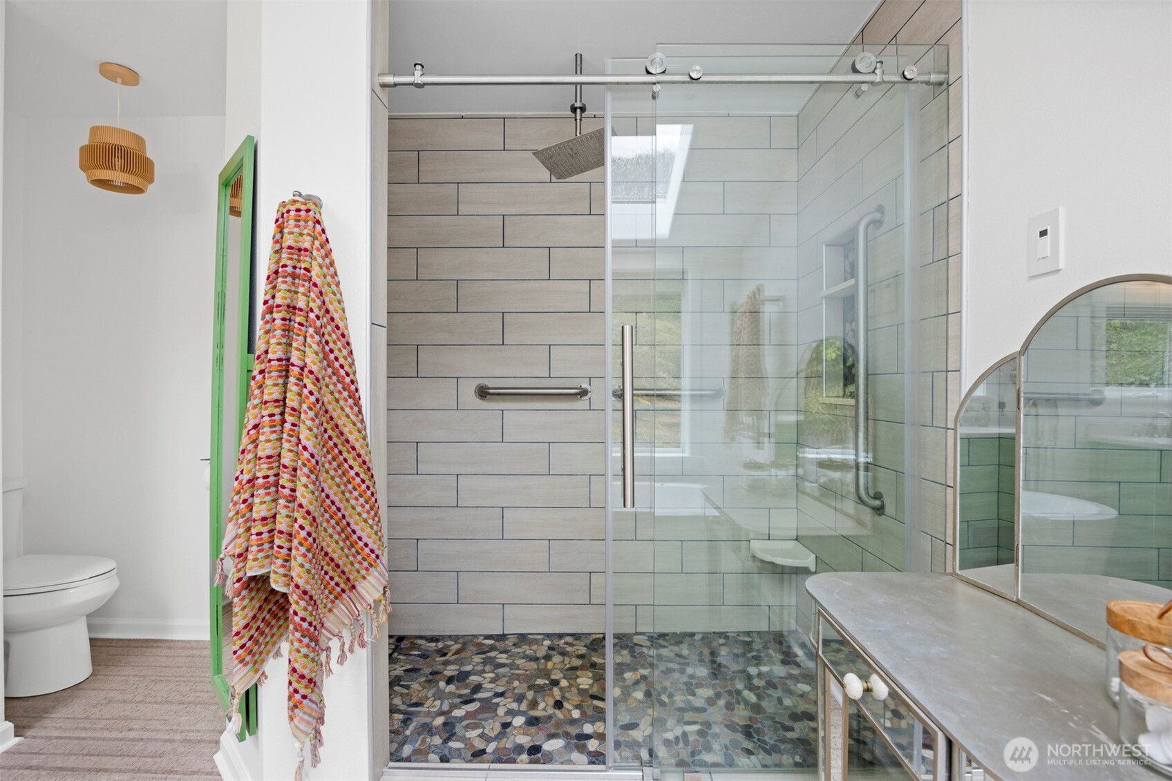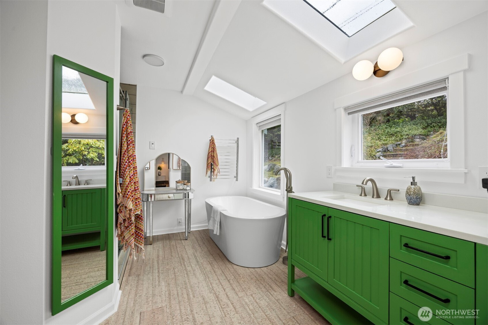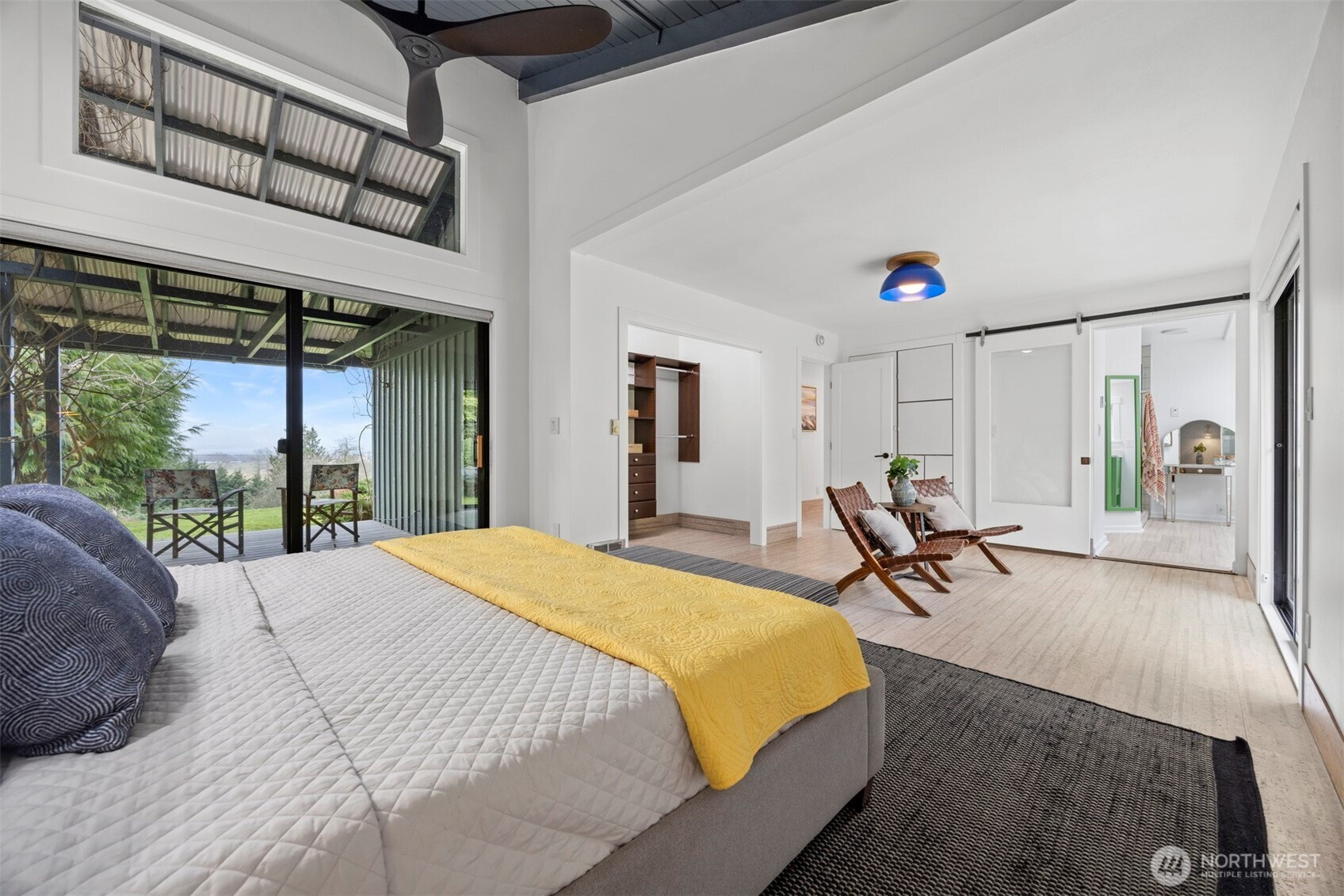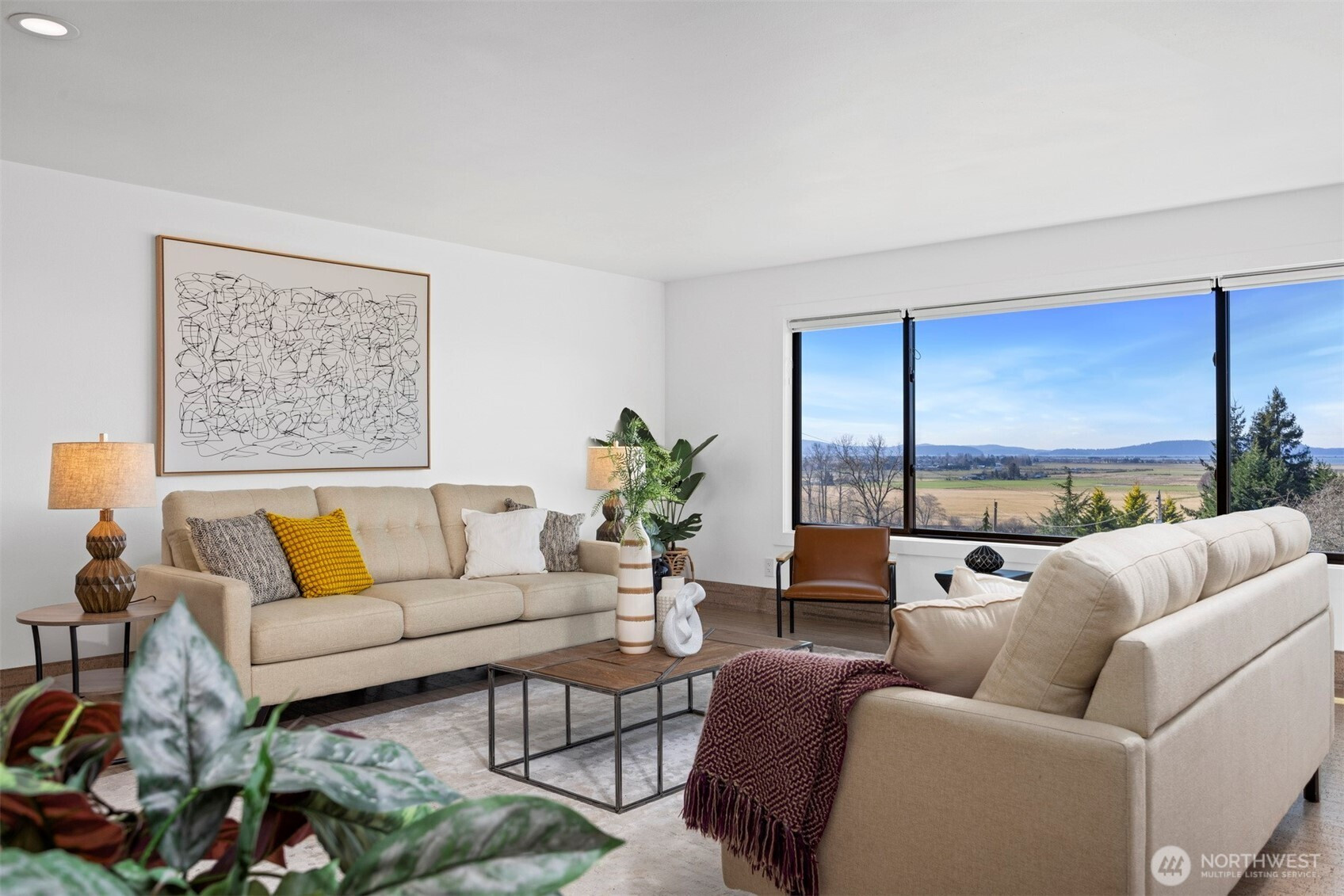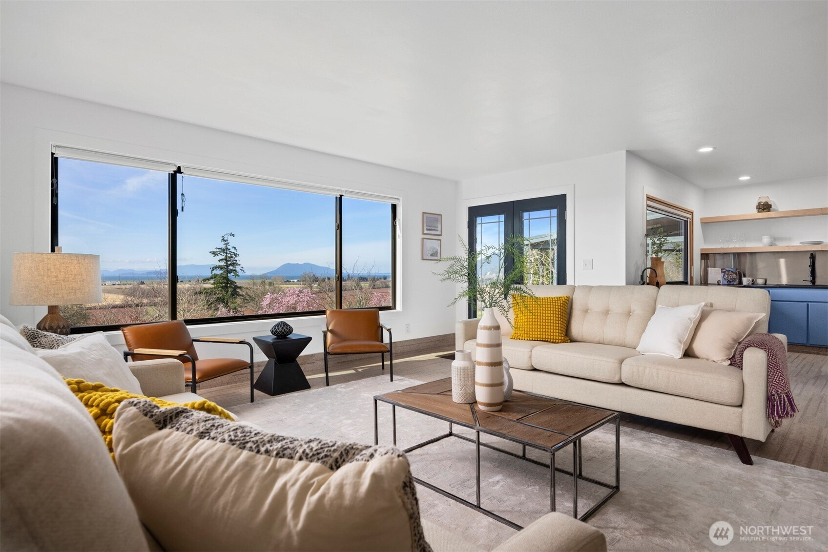 Experience sweeping views of the Skagit Valley and San Juan Islands from this west-facing, single-story home, perfectly positioned for stunning sunsets. The residence features two dedicated office spaces, with the flexibility to convert one into a fourth bedroom. Recently updated throughout, the home showcases thoughtful upgrades, including a Fisher & Paykel commercial-grade induction range and cork flooring. Rooftop solar panels help offset energy costs, adding efficiency to comfort. Outdoor amenities are exceptional: a spacious five-bay garage with room for a motorhome or boat, a greenhouse, a three-car carport, and abundant driveway parking—ideal for entertaining or accommodating large gatherings. A charming pop-out kitchen window enhances summer hosting and seamlessly connects indoor and outdoor living. This is a property not to be missed.