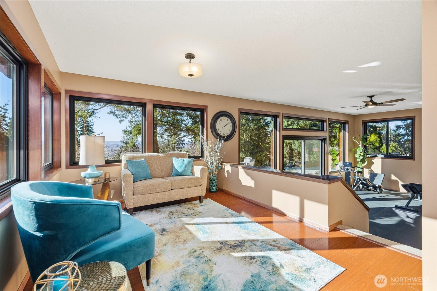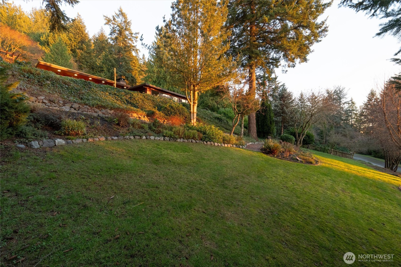 Perched on the hill in the highly sought-after Skyridge neighborhood, this exceptional residence captures breathtaking views and unforgettable sunsets from a private, oversized 1+ acre lot. Thoughtfully designed with true main-level living in mind with additional guest bedroom & bath on the lower level, the home showcases classic MCM character with clean lines, architectural angles, expansive windows, and timeless details that bring the outdoors in. Perfectly suited for entertaining, the flowing interior spaces connect seamlessly to outdoor living areas, creating an ideal setting for gatherings both large and intimate. Mature landscaping and generous acreage provide privacy, serenity, and a park-like atmosphere rarely found in such a premier location. Rich in character and warmth, this is a home that feels as good as it looks where architectural integrity, livability, and setting come together beautifully.