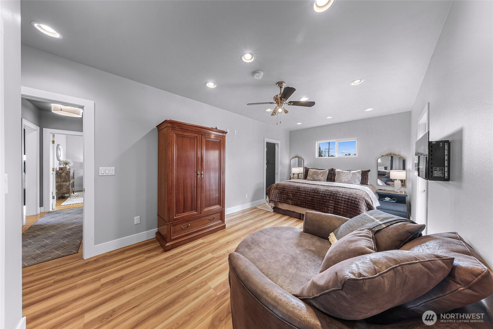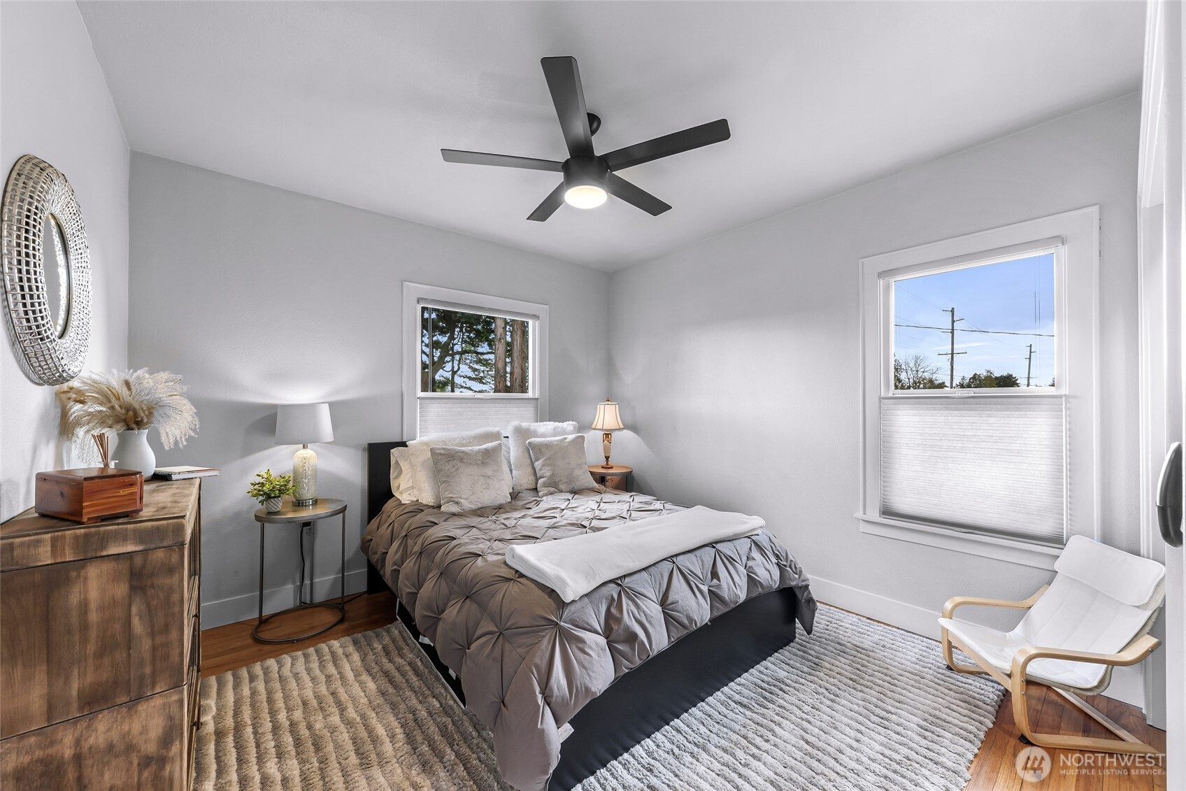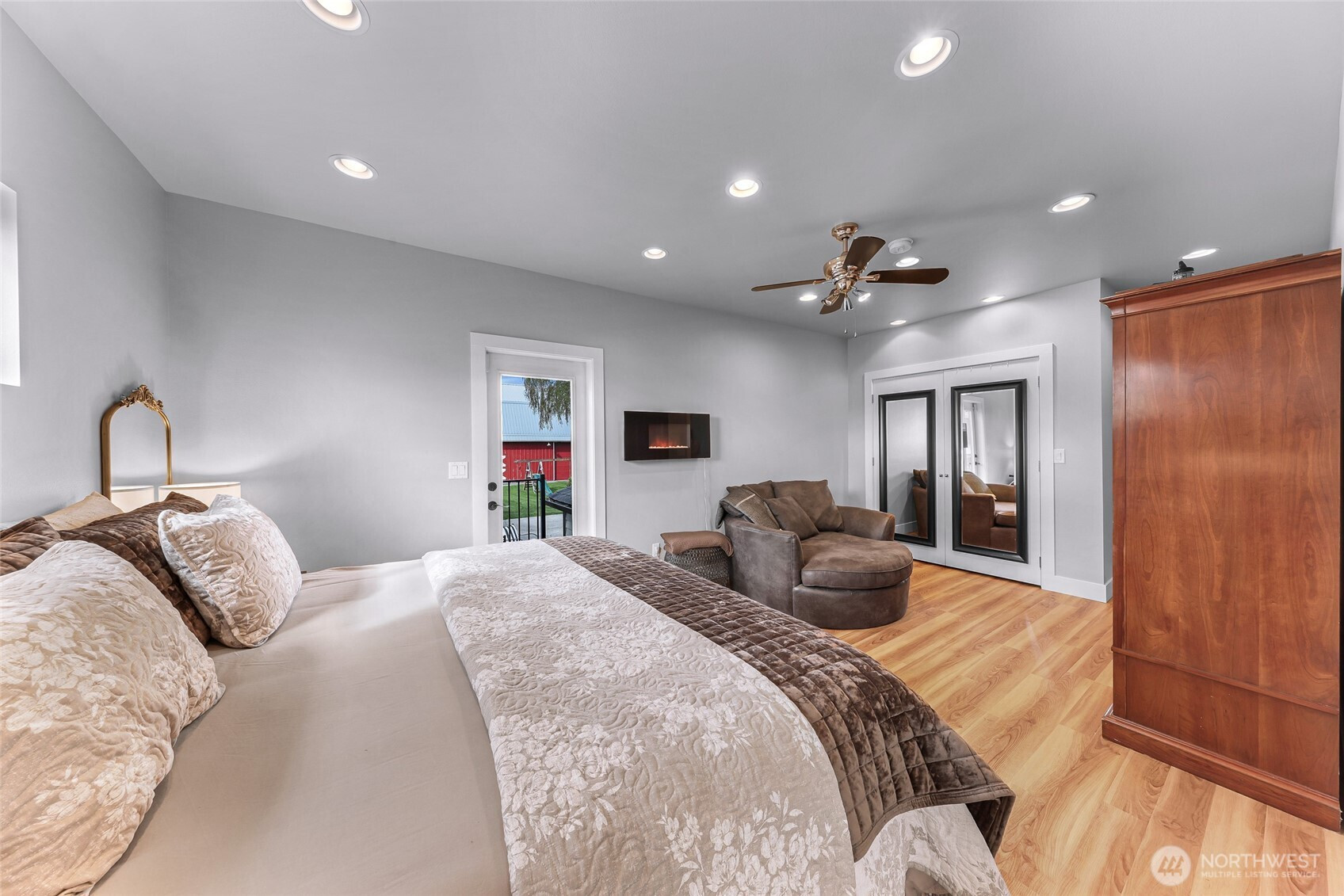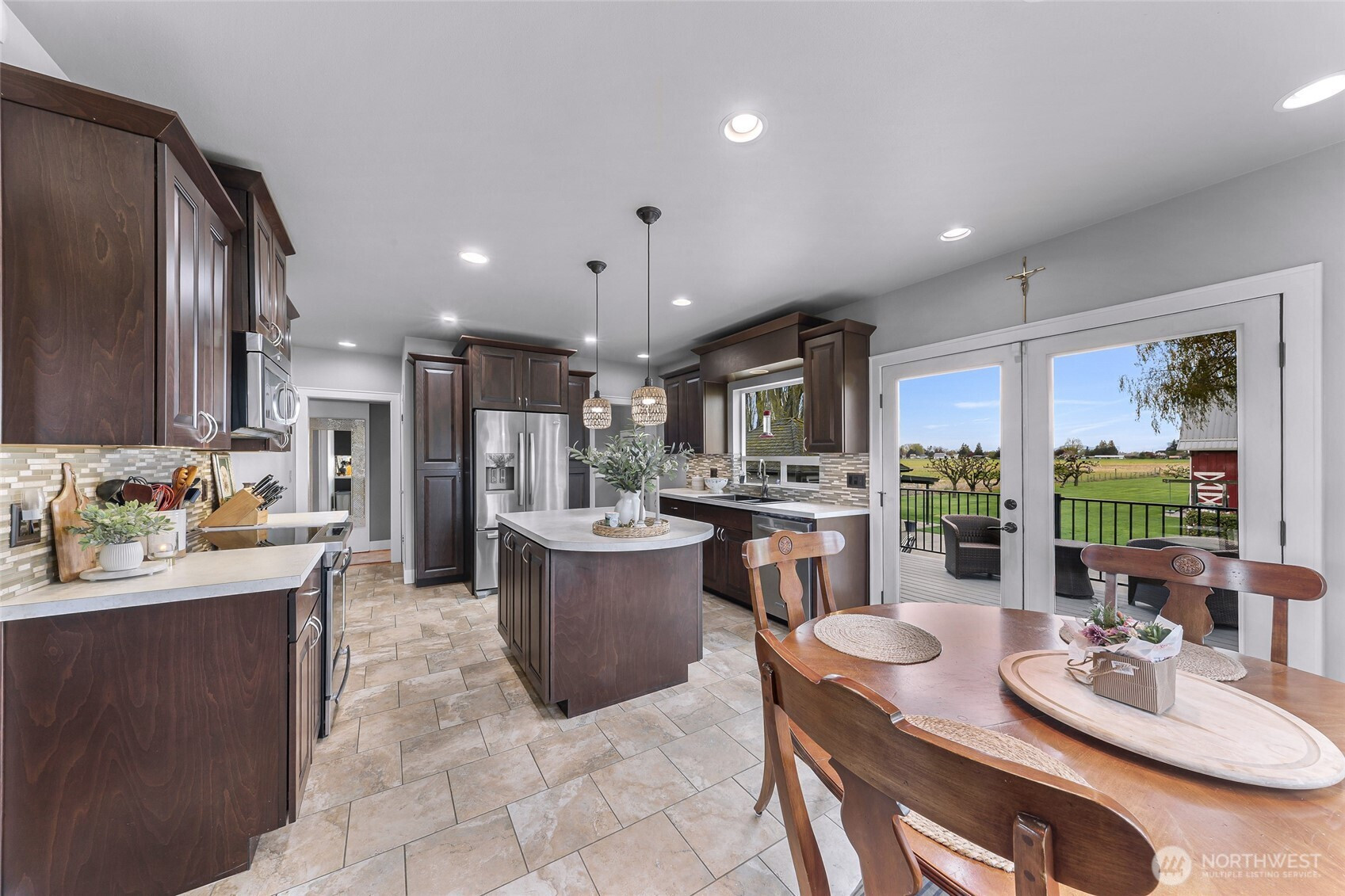 Rare opportunity to own a beautifully remodeled home in a sought-after area of Mount Vernon where properties seldom come available. Surrounded by picturesque farms and iconic tulip fields, this level 1-acre property offers the perfect blend of privacy and proximity to town. The fully updated home retains all the charm of the past, combined with the contemporary elements that create comfort and style. This light-filled home features 4 bedrooms (or 3+ office) and 2 baths, including a spacious primary suite with a spa-like bathroom, its own dedicated water heater, and private deck access. Hardwood floors and a cozy fireplace add warmth and character, while the finished basement provides flexible space for a bonus room, family room, laundry, and storage space. The recently upgraded septic system is four bedroom, providing opportunity for expansion or ADU to fit your needs.Outdoors, enjoy thoughtfully designed spaces ideal for relaxing or entertaining, complete with a hot tub and unique grafted fruit trees in the backyard - including six apple trees, two cherry, two pears, and two plum trees. Perfectly level lot has plenty of space for a garden or pasture. The impressive 30’x30’ lofted barn with 12’ overhead door and power service is perfect for RV/boat storage, hobbies, or projects. Detached 2 car garage has 220 power. Take in peaceful views from the deck and experience the best of Skagit Valley living.