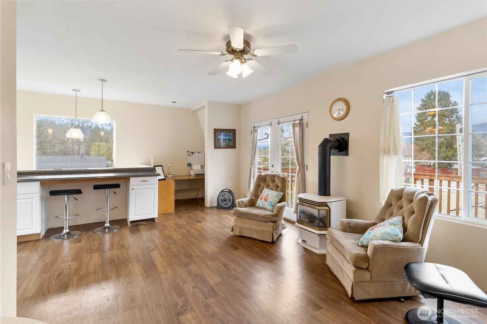 Charming Big Lake area home with spectacular lake views from the upper story, situated peacefully approx 300 yards from the water's edge. This inviting 736 sq ft residence features 1 bedroom and 1.25 bathrooms with thoughtful amenities including a modern tankless water heater and a cozy fireplace,for year-round comfort. The home opens to a lovely deck — perfect for morning coffee or evening relaxation while enjoying the serene lake vistas. Built in 1998 on a quiet 0.28-acre lot with room to create your space, The unique 752 sq ft oversized garage offers versatility potential living space or for car enthusiasts, share with a vehicle? The shop space with full sized garage door is ideal for your lake toys workshop space, or potential conversion to additional living quarters. Additional outdoor boat and vehicle storage on the property. A separate RV parking area and charming bathhouse complete the amenities — the bathhouse would benefit from water line installation, offering unique potential for a guest facility or outdoor retreat space. Convenient boat launch access nearby provides easy access to Big Lake recreation and boating. This property is perfectly suited as a full-time primary residence, a relaxing seasonal or summer retreat, or an attractive rental investment opportunity. Don't miss this rare gem in the desirable Big Lake community.