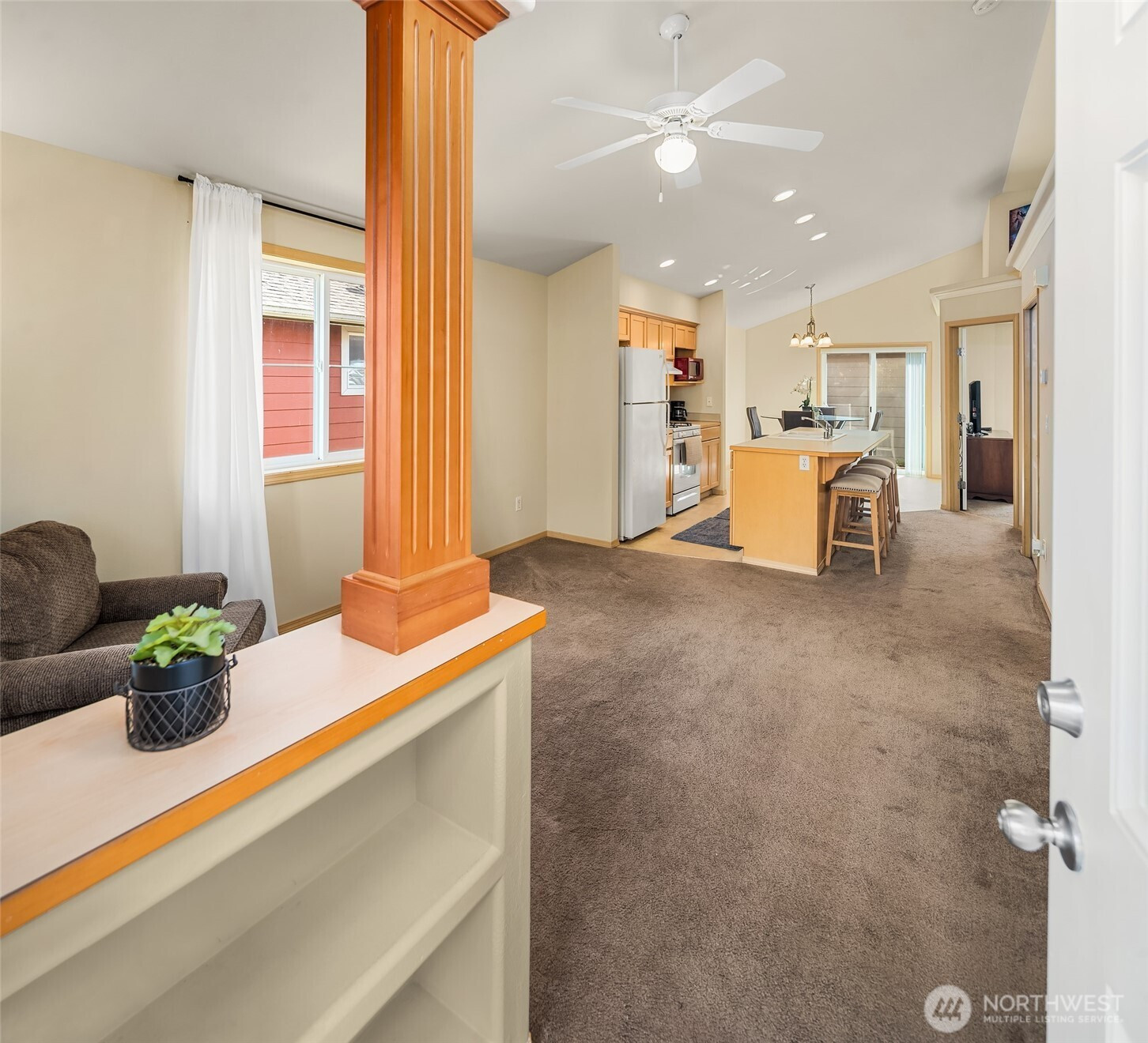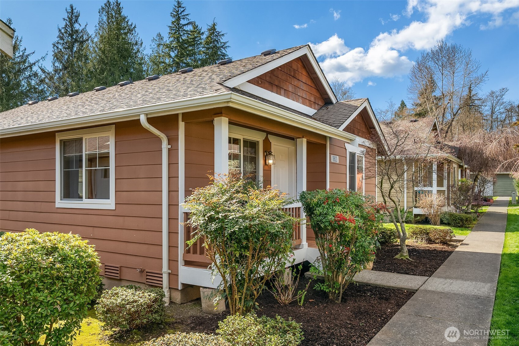 Welcome to this light and cheerful 2-bedroom rambler, beautifully maintained and truly move-in ready! Enjoy easy, low-maintenance living with the association handling landscaping—giving you more time to relax and enjoy your home. The bright kitchen features warm maple cabinetry, a center island with eating bar, and all kitchen appliances included for a seamless move-in. Vaulted ceilings create an airy, spacious feel, complemented by a built-in display ledge for art or collectibles. Stay comfortable year-round with efficient, affordable gas forced-air heat and hot water. The primary bedroom offers private access to a full, bright bath. Step outside to a covered back porch—perfect for morning coffee or evening unwinding. A detached oversized one-car garage (#12C) for added convenience and storage, provides covered parking and off street parking in the driveway. Located in the welcoming community of Sedro-Woolley, with Cascade Mountain views and small-town charm. Just across the street, enjoy 14-acre Olmsted Park, home to Thompson Pond and its annual steelhead derby. Nearby access to the Cascade Trail offers 22.5 miles for walking, biking, or running. Single-family residence (not a condo)! An easy and lovely place to call home...