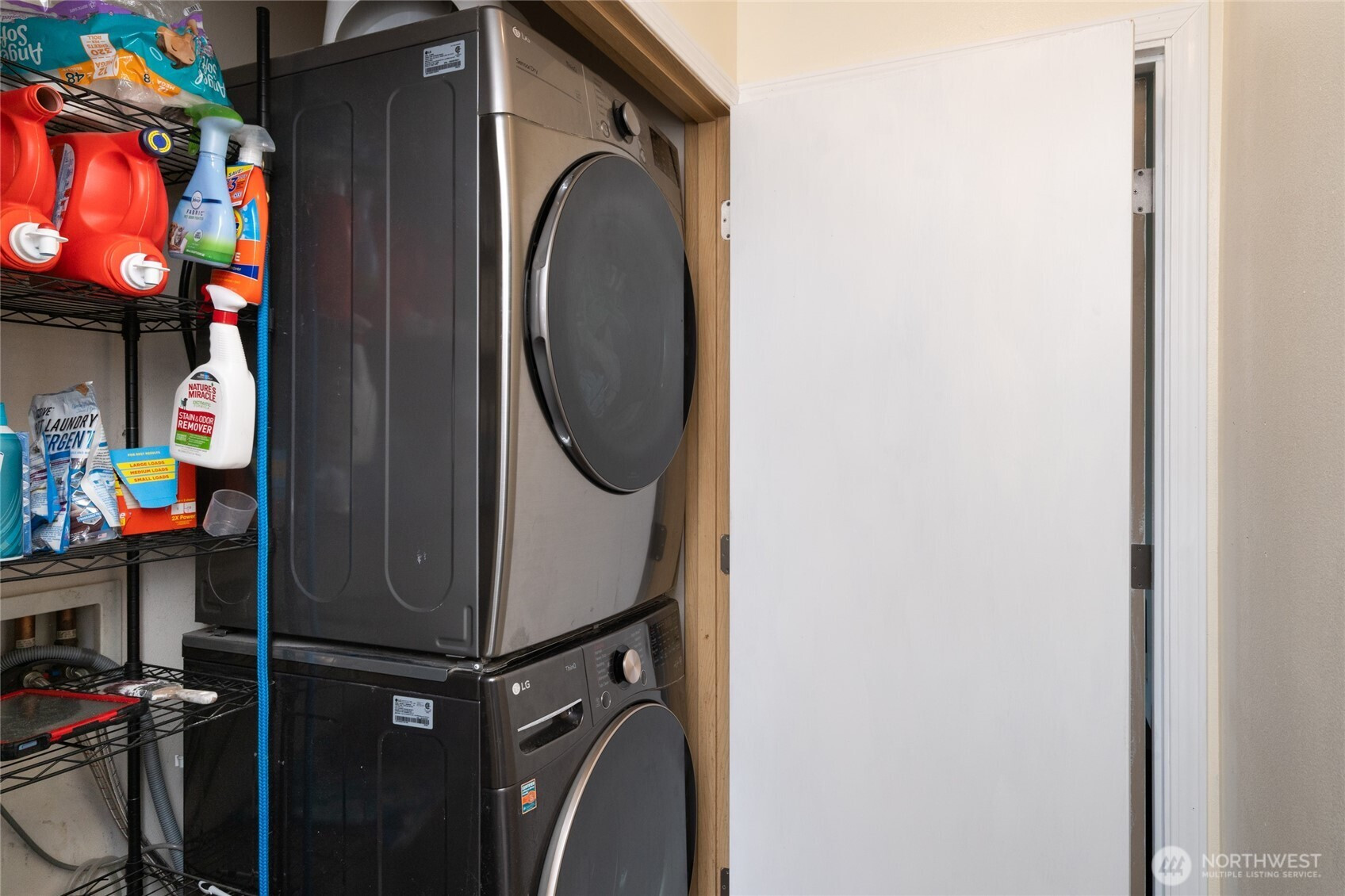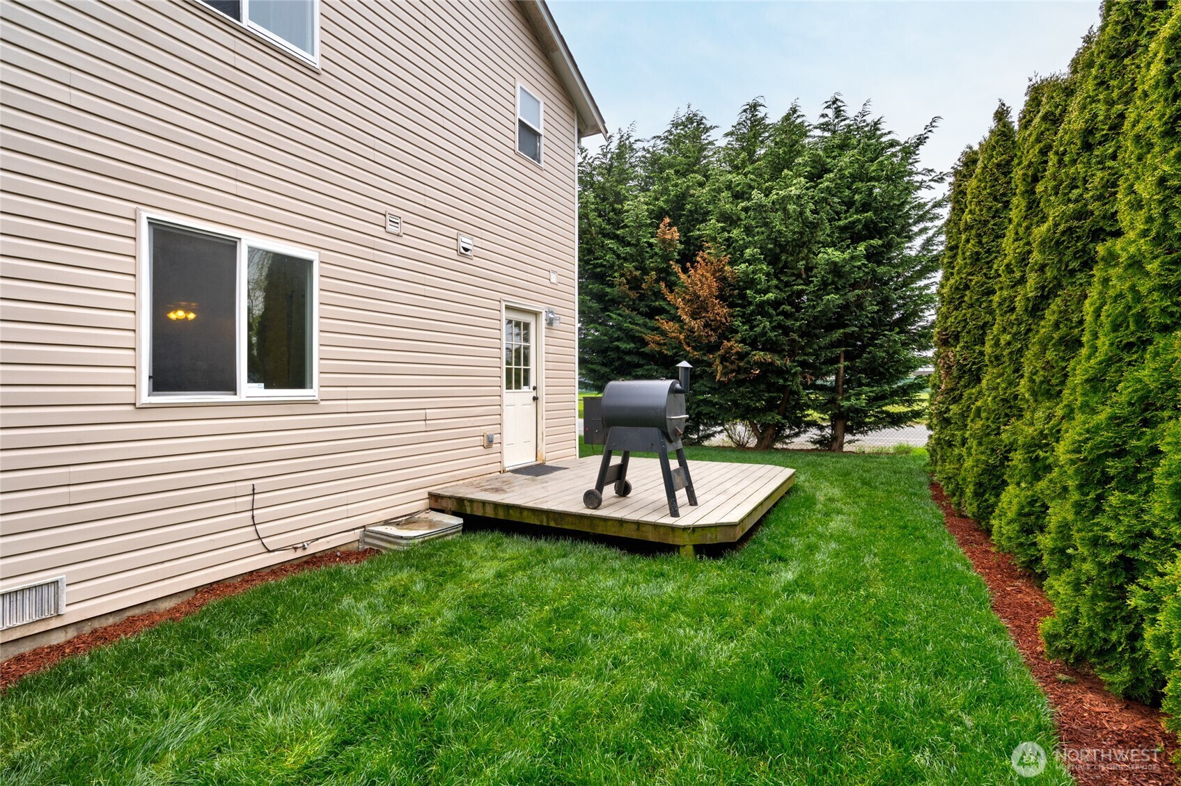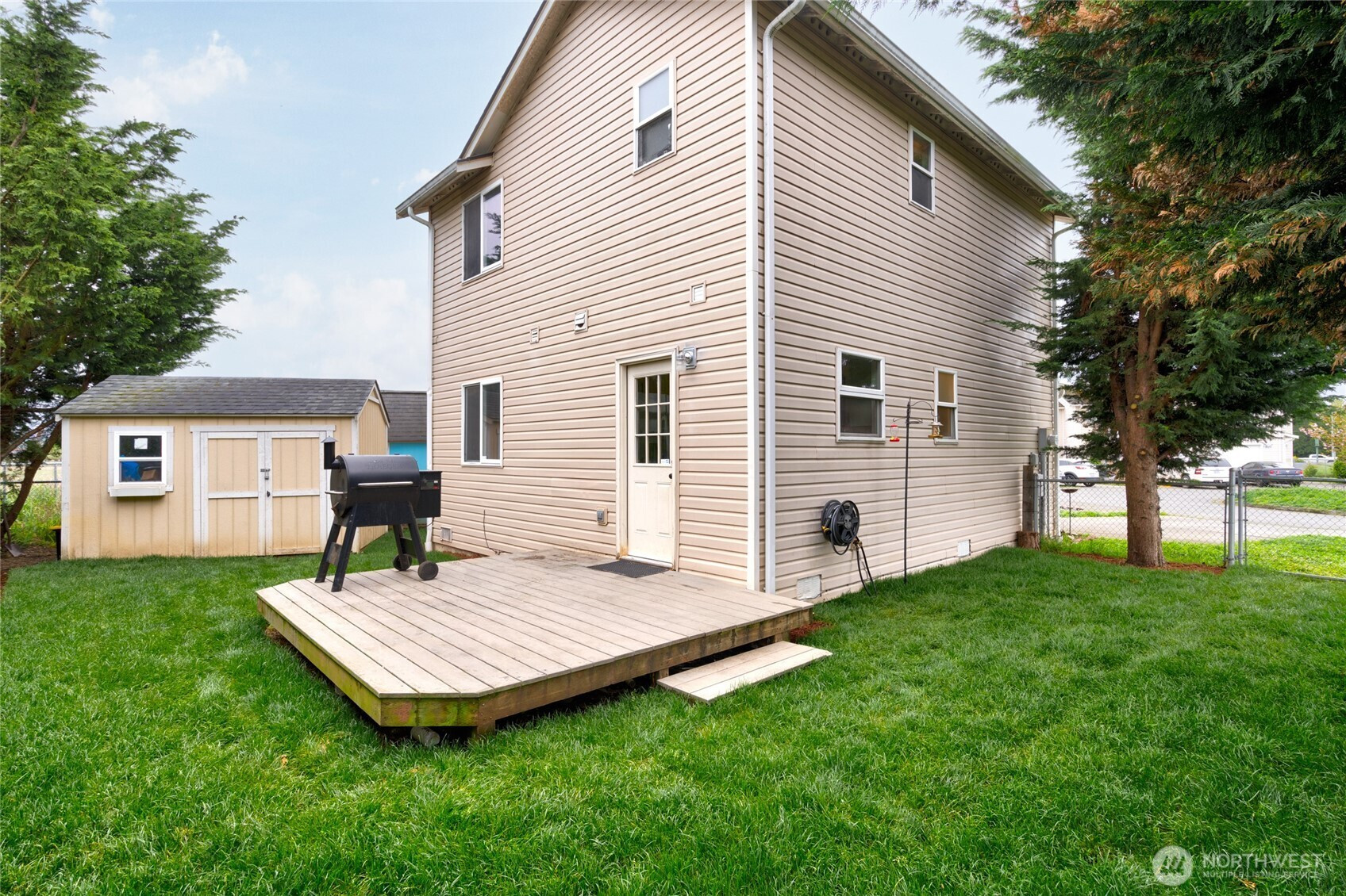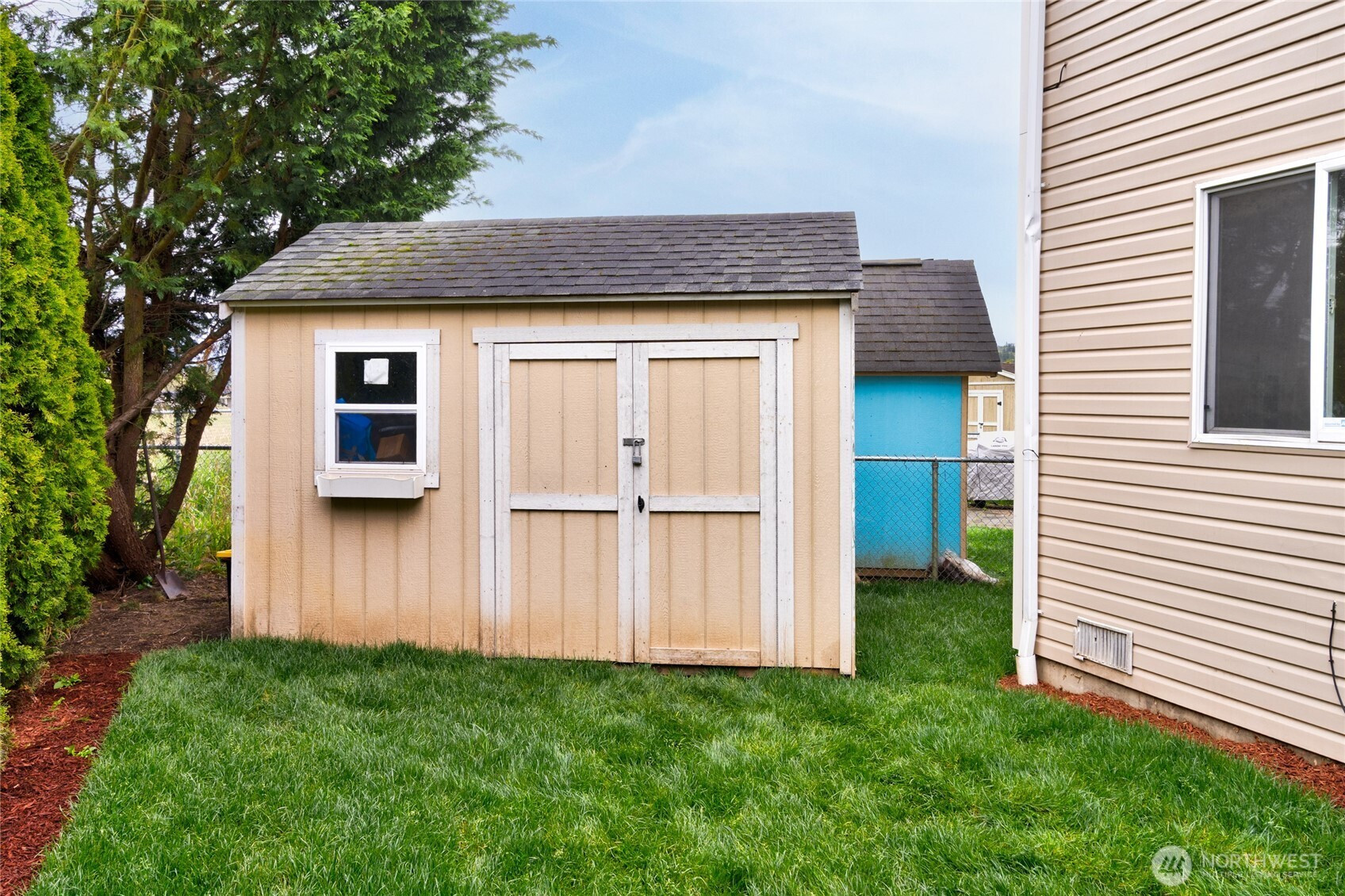 Move-in ready, updated, affordable home located on a quiet cul-de-sac with no HOA. Close to I-5 for commuting and to downtown MV, Skagit Community College and NOT in the flood zone. The recently re-landscaped backyard is fully fenced and features new sod, emerald-green arborvitae trees for great privacy, a large storage shed and sizable TREX deck for entertaining. Upgraded TruDefinition Oakridge Roof installed in 2022. TREX decking front porch opens to upgraded luxury vinyl flooring, custom designed staircase risers and bright finishes that are a statement piece in this home. The energy efficient upgrades include: 90% high efficiency mini split system for heating and AC, heat pump water heater that acts as an additional AC in the summer, LED lighting all throughout and a completely redone crawlspace with new insulation, all significant in helping save you money each month. Kitchen features a beautifully tiled custom backsplash, upgraded sink and new stainless-steel refrigerator. Main level features an additional space that can be turned into an in-home office or primary level bedroom. Downstairs features an upgraded 1/2 bath for guests. Upstairs also features upgraded luxury vinyl flooring throughout. Spacious primary bedroom and an additional bedroom all seamlessly connected to the updated full bath. Enjoy the convenience of having an upper-level stackable SMART washer & dryer giving you additional storage space. Seller is offering a credit towards buyers closing costs!!