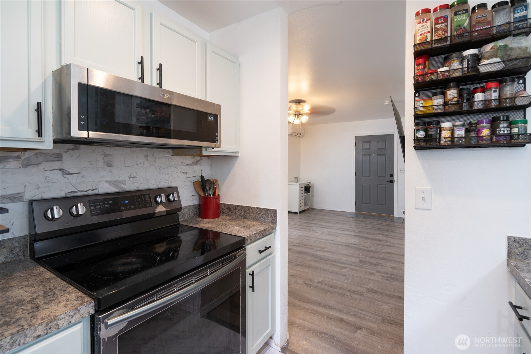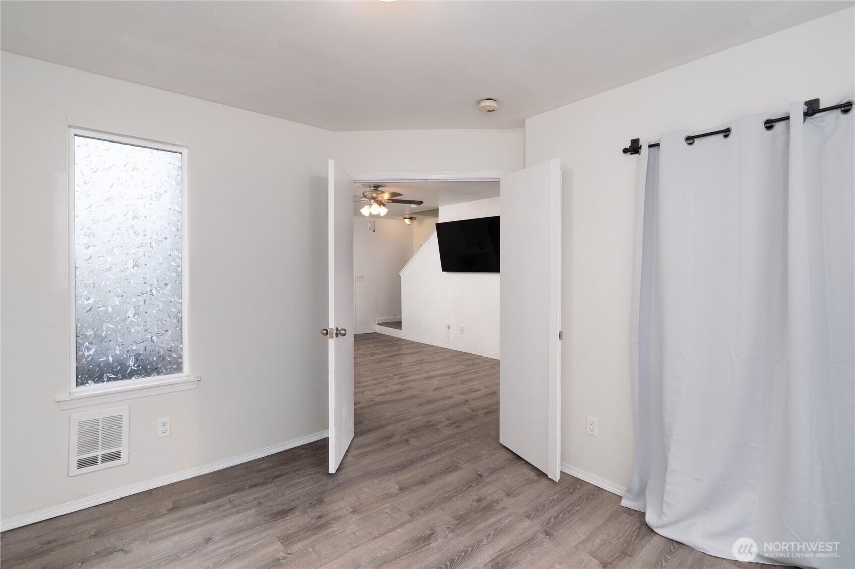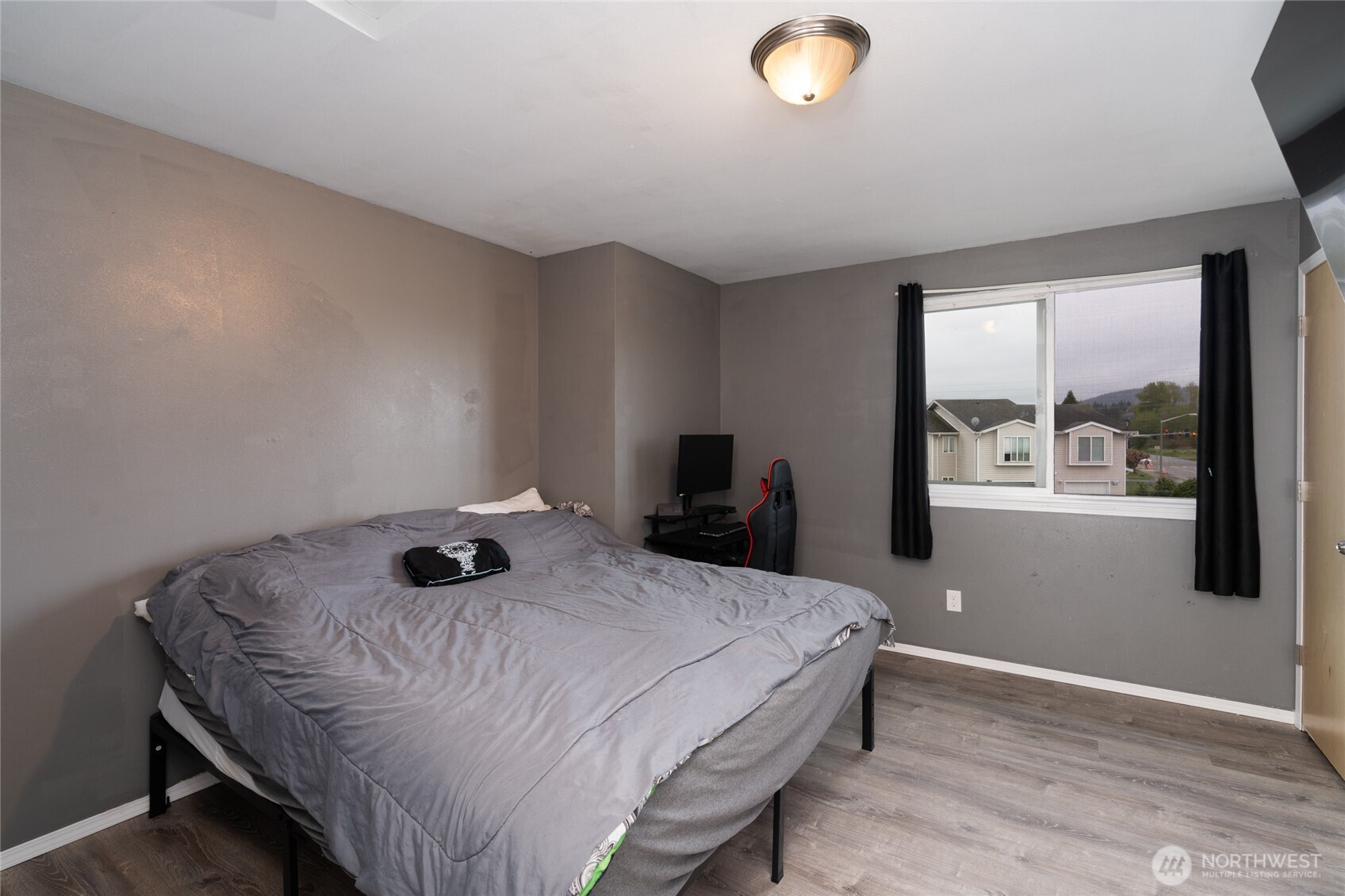 Move-in ready, updated, affordable home located on a quiet cul-de-sac with no HOA. Close to I-5 for commuting and to downtown MV, Skagit Community College and NOT in the flood zone. The recently re-landscaped backyard is fully fenced and features new sod, emerald-green arborvitae trees for great privacy, a large storage shed and sizable TREX deck for entertaining. Upgraded TruDefinition Oakridge Roof installed in 2022. TREX decking front porch opens to upgraded luxury vinyl flooring, custom designed staircase risers and bright finishes that are a statement piece in this home. The energy efficient upgrades include: 90% high efficiency mini split system for heating and AC, heat pump water heater that acts as an additional AC in the summer, LED lighting all throughout and a completely redone crawlspace with new insulation, all significant in helping save you money each month. Kitchen features a beautifully tiled custom backsplash, upgraded sink and new stainless-steel refrigerator. Main level features an additional space that can be turned into an in-home office or primary level bedroom. Downstairs features an upgraded 1/2 bath for guests. Upstairs also features upgraded luxury vinyl flooring throughout. Spacious primary bedroom and an additional bedroom all seamlessly connected to the updated full bath. Enjoy the convenience of having an upper-level stackable SMART washer & dryer giving you additional storage space. Seller is offering a credit towards buyers closing costs!!