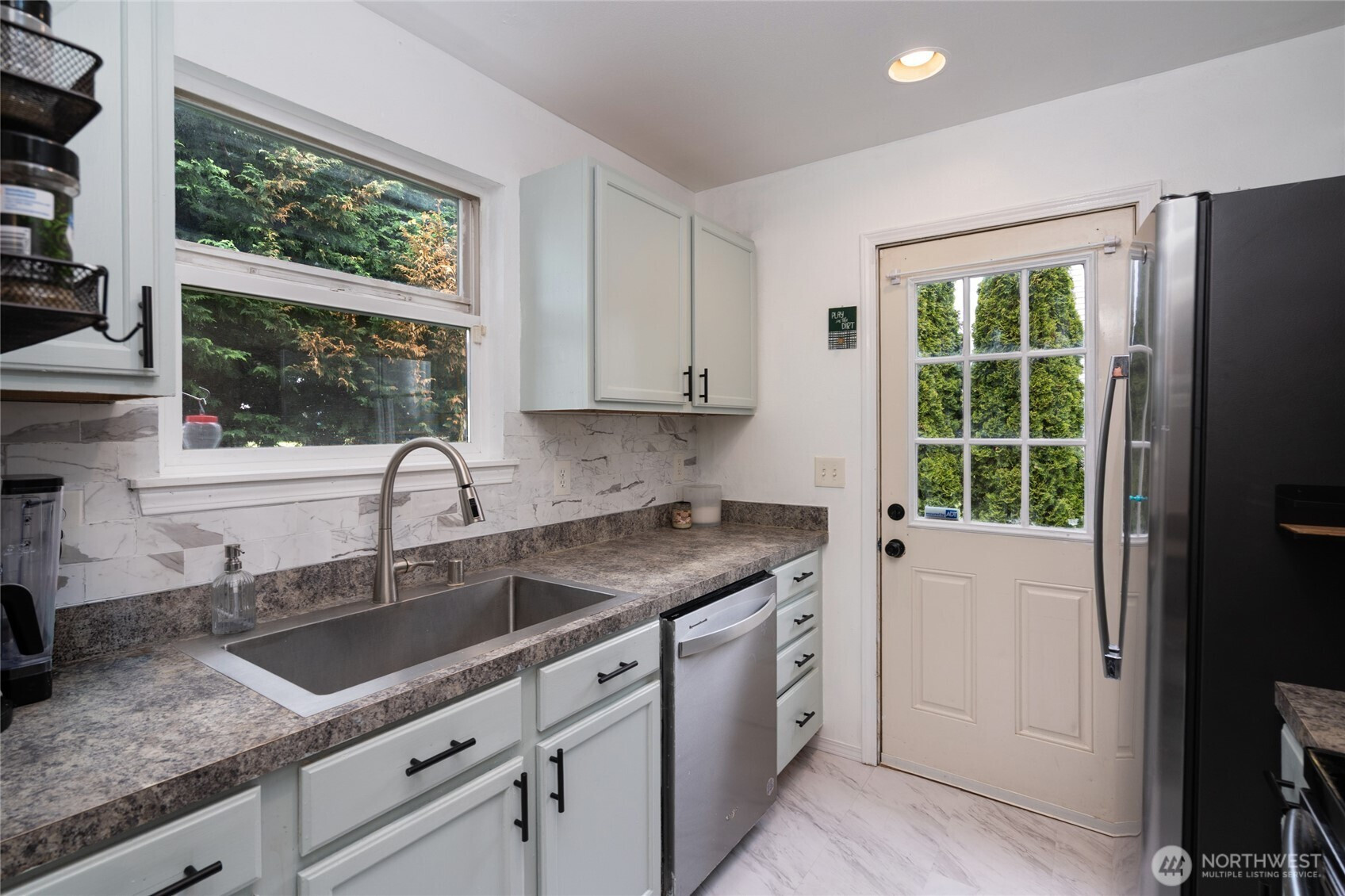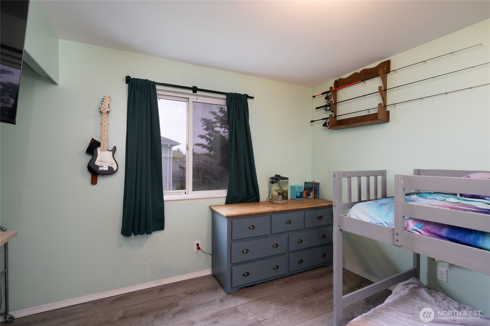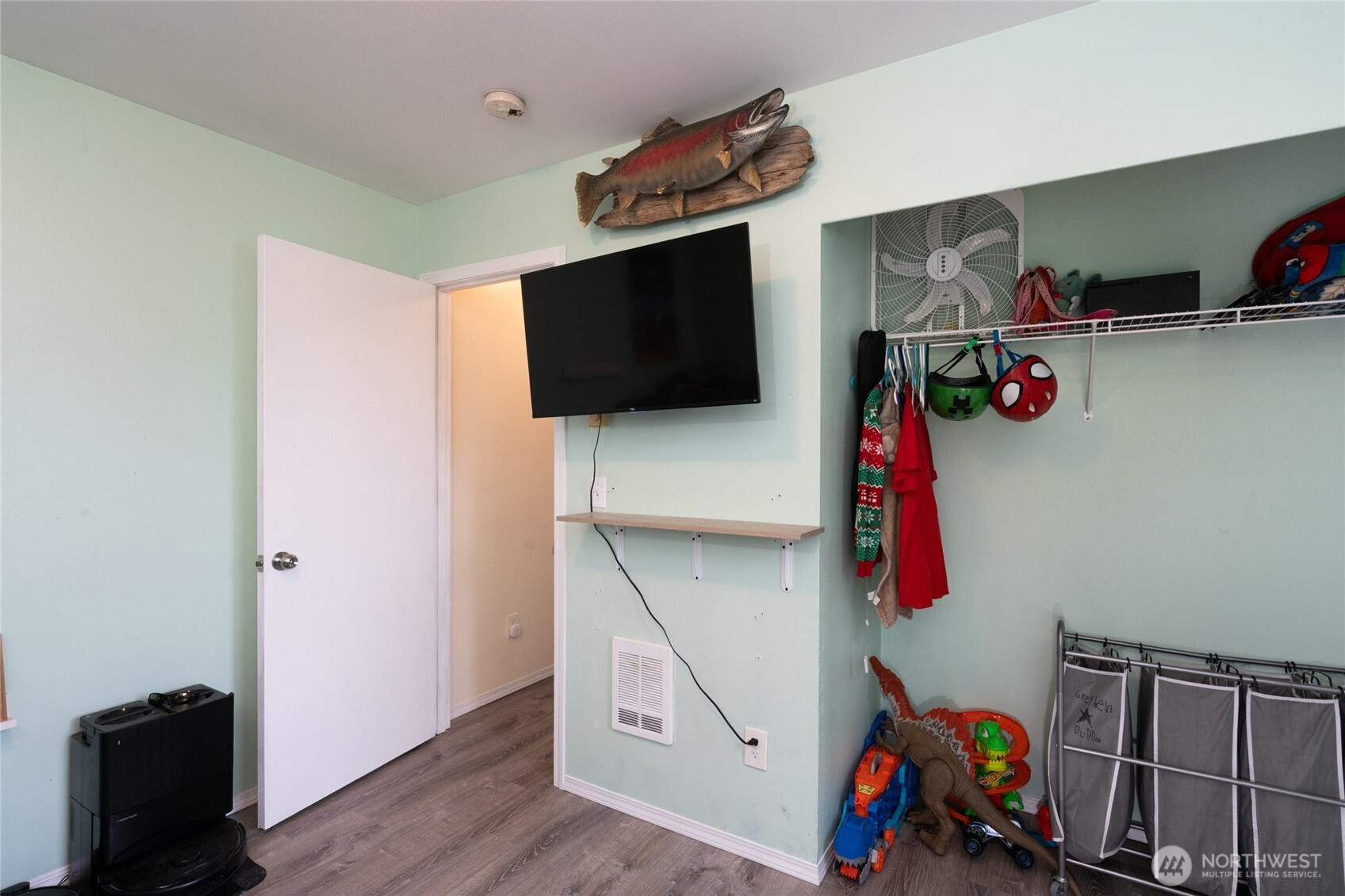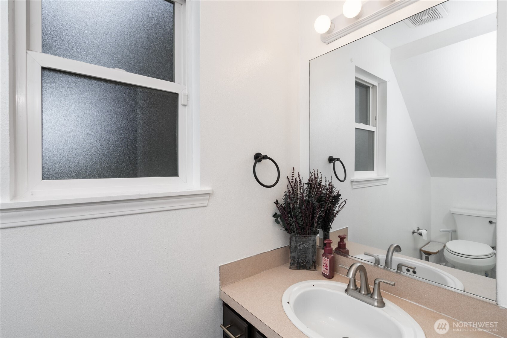 Move-in ready, updated, affordable home located on a quiet cul-de-sac with no HOA. Close to I-5 for commuting and to downtown MV, Skagit Community College and NOT in the flood zone. The recently re-landscaped backyard is fully fenced and features new sod, emerald-green arborvitae trees for great privacy, a large storage shed and sizable TREX deck for entertaining. Upgraded TruDefinition Oakridge Roof installed in 2022. TREX decking front porch opens to upgraded luxury vinyl flooring, custom designed staircase risers and bright finishes that are a statement piece in this home. The energy efficient upgrades include: 90% high efficiency mini split system for heating and AC, heat pump water heater that acts as an additional AC in the summer, LED lighting all throughout and a completely redone crawlspace with new insulation, all significant in helping save you money each month. Kitchen features a beautifully tiled custom backsplash, upgraded sink and new stainless-steel refrigerator. Main level features an additional space that can be turned into an in-home office or primary level bedroom. Downstairs features an upgraded 1/2 bath for guests. Upstairs also features upgraded luxury vinyl flooring throughout. Spacious primary bedroom and an additional bedroom all seamlessly connected to the updated full bath. Enjoy the convenience of having an upper-level stackable SMART washer & dryer giving you additional storage space. Seller is offering a credit towards buyers closing costs!!