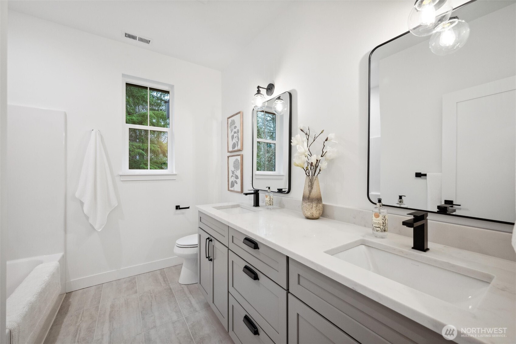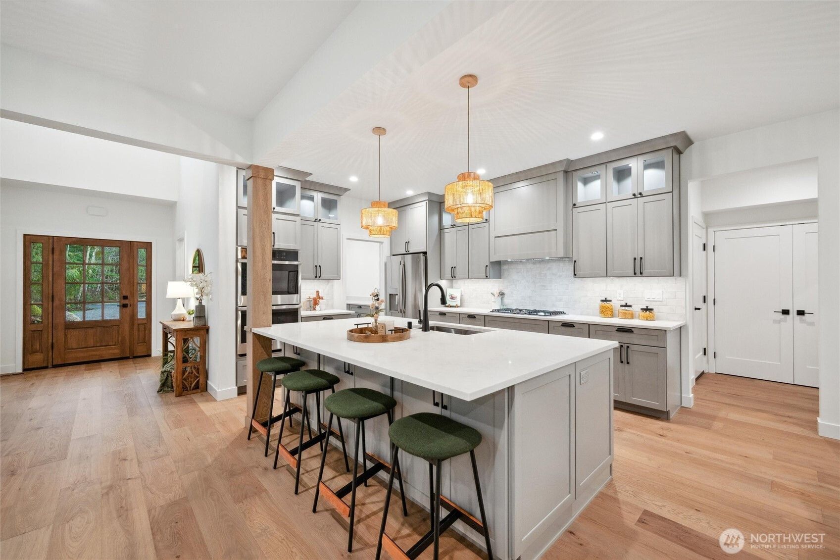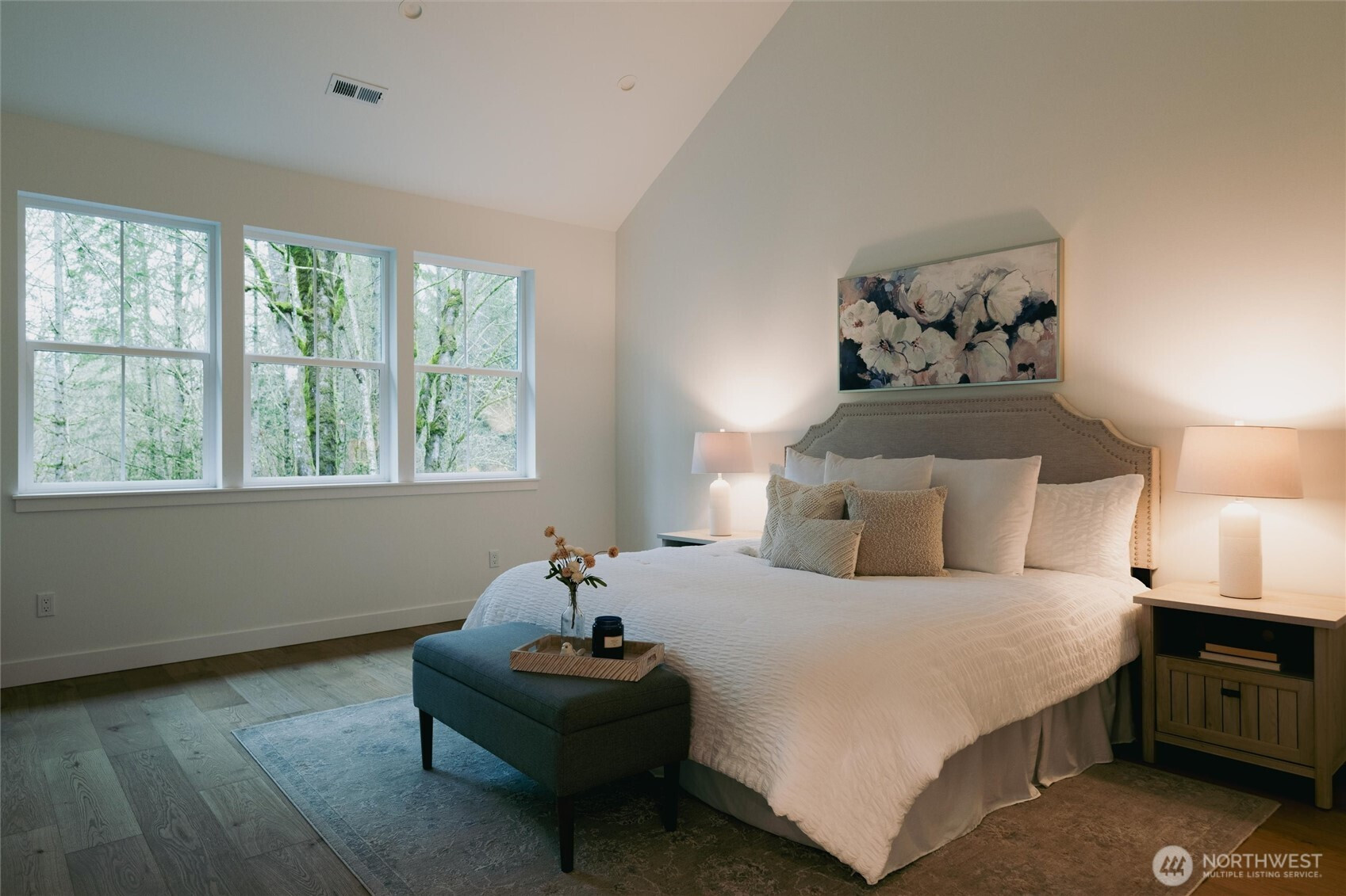 Amazing opportunity for a luxury, private county home in a brand new development. This 2,600+ square foot home lives large with high end finishes set in a cedar glade with native trees. Enjoy views of the surrounding foothills. This home features vaulted ceilings, and spa-quality bathrooms, a huge gourmet kitchen with all SS appliances plus a sizeable butlers pantry with wine fridge, great room, huge master plus 3 bedrooms and an office/den. This modern farmhouse style home has wide plank oak floors, a gigantic covered outdoor patio off the great room and kitchen, and generous living spaces throughout. Short distance to I5 and Bellingham or Burlington!