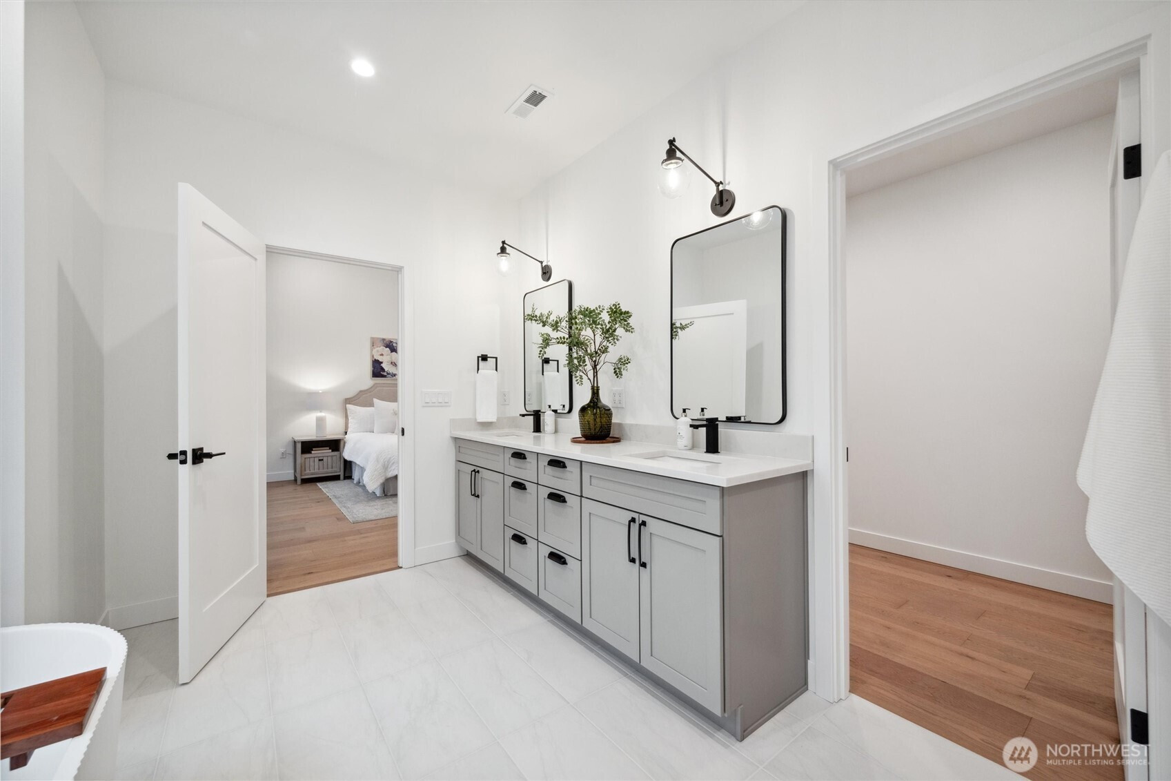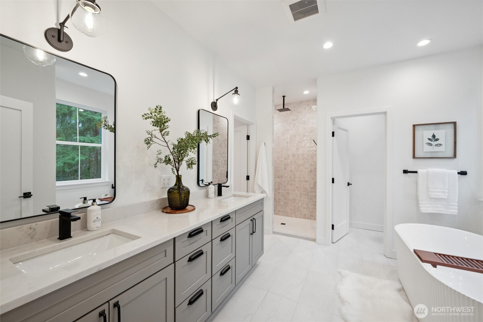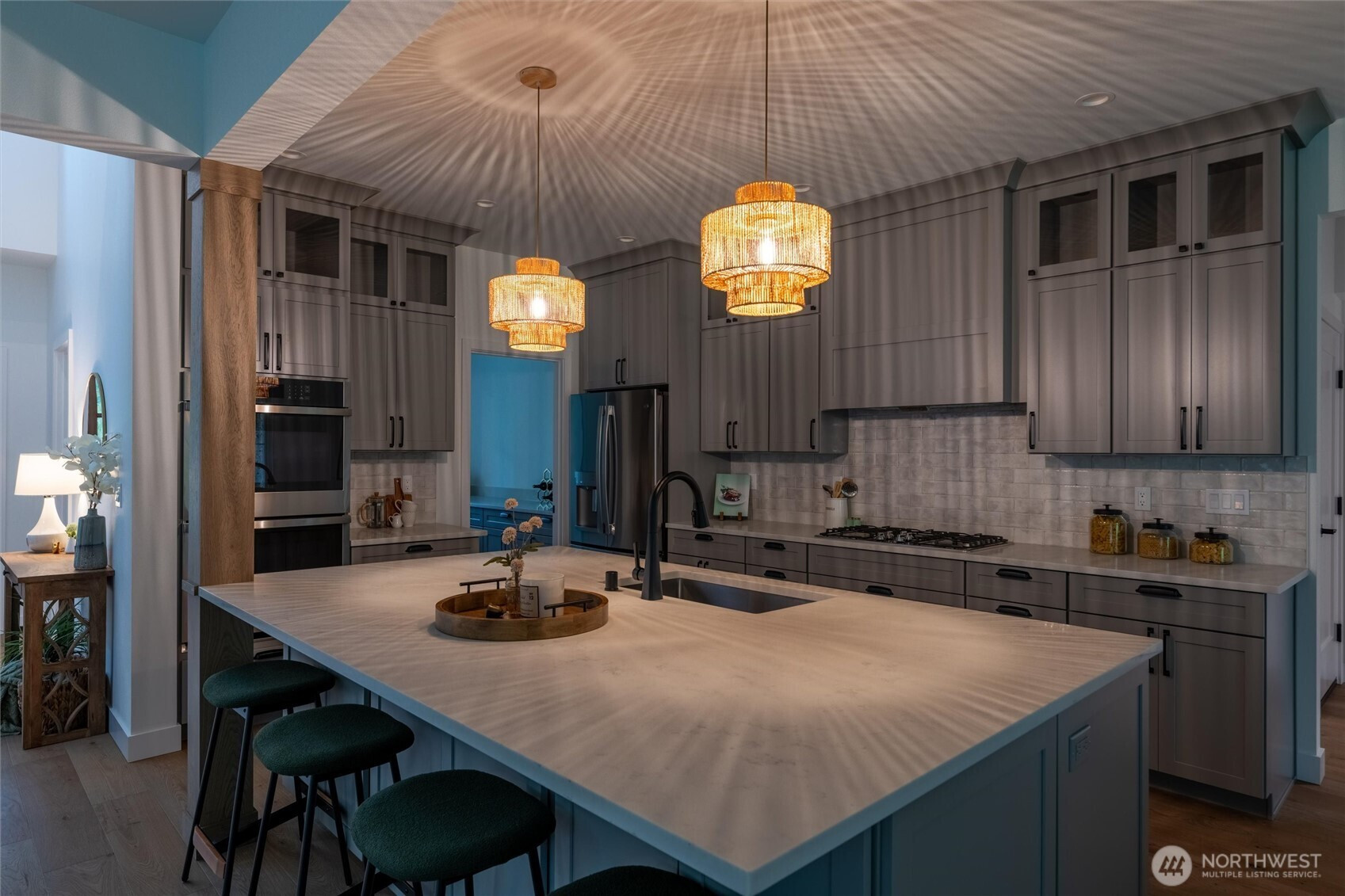 Amazing opportunity for a luxury, private county home in a brand new development. This 2,600+ square foot home lives large with high end finishes set in a cedar glade with native trees. Enjoy views of the surrounding foothills. This home features vaulted ceilings, and spa-quality bathrooms, a huge gourmet kitchen with all SS appliances plus a sizeable butlers pantry with wine fridge, great room, huge master plus 3 bedrooms and an office/den. This modern farmhouse style home has wide plank oak floors, a gigantic covered outdoor patio off the great room and kitchen, and generous living spaces throughout. Short distance to I5 and Bellingham or Burlington!