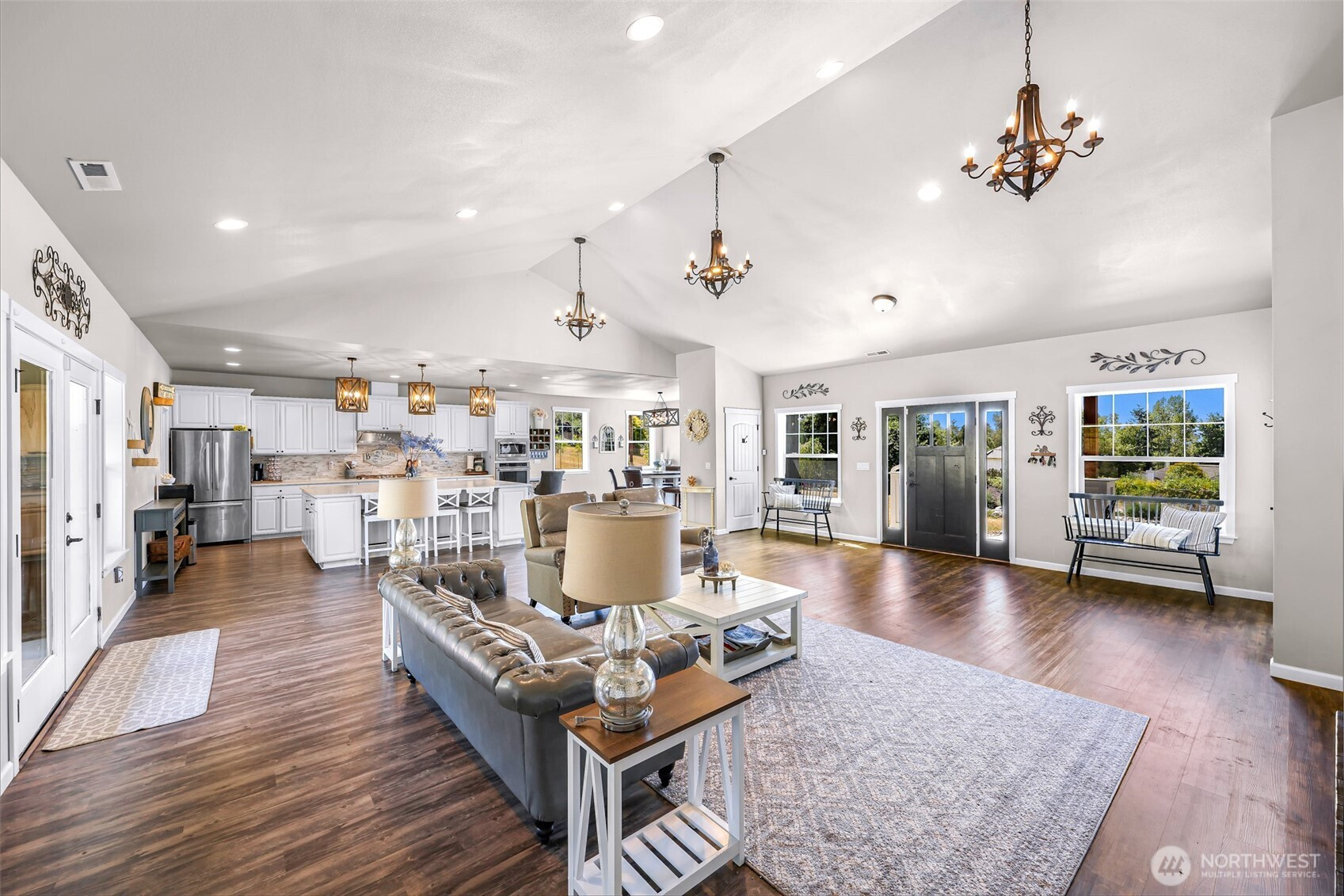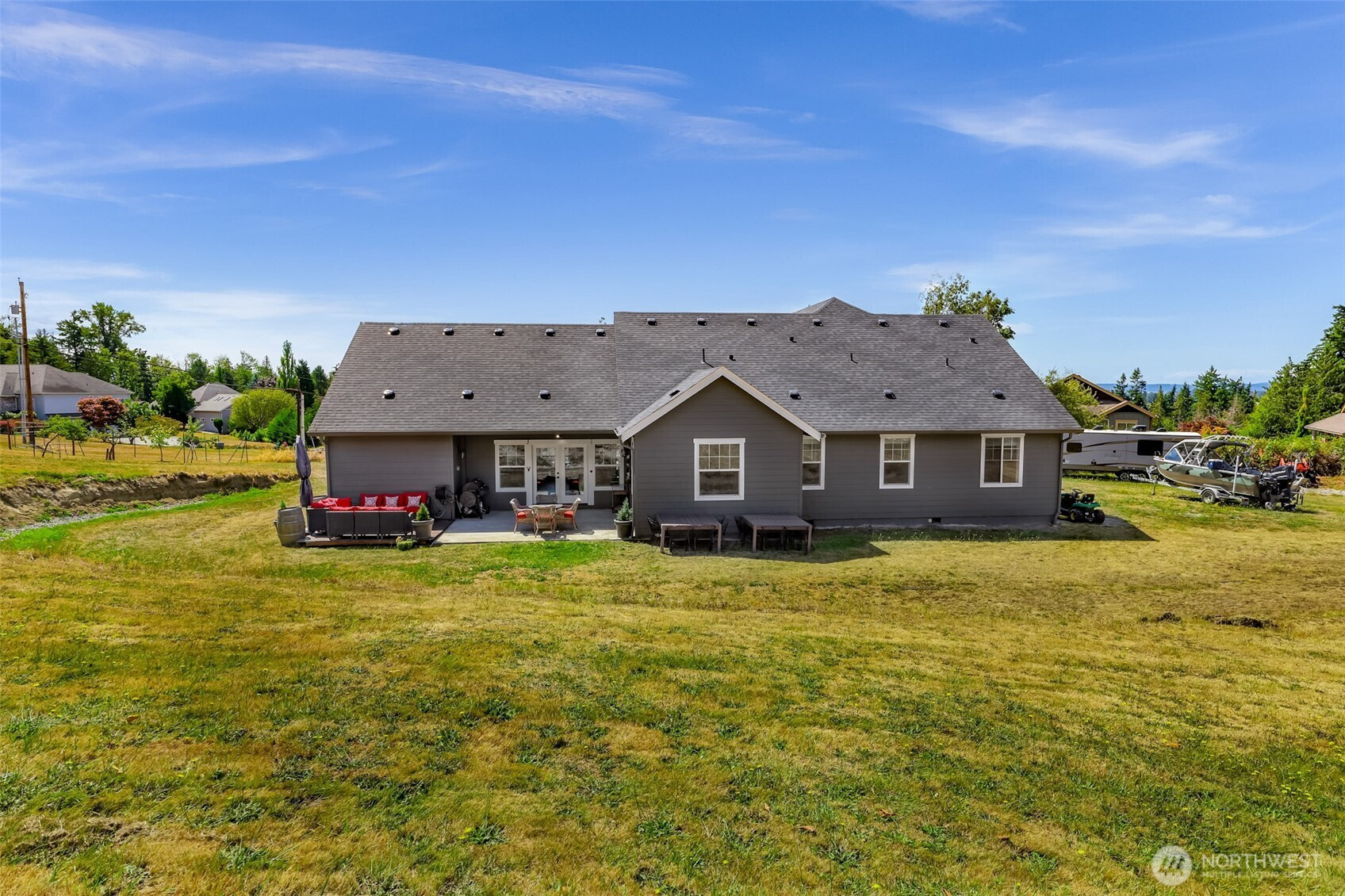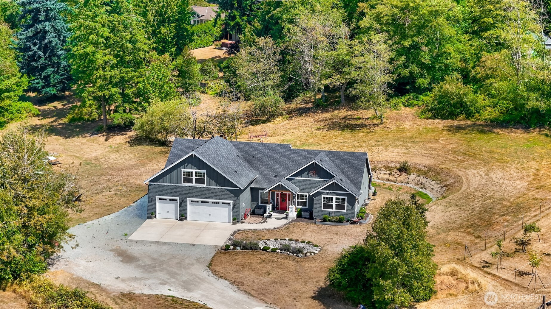 Homes like this rarely come available in Skyridge. Wake up to valley & mountain views, peaceful surroundings & room to breathe in this stunning 2019 custom rambler nestled on just over 5 acres. A bright & welcoming great room anchors the home w/vaulted ceilings, rich vinyl plank flooring & beautiful statement lighting. The open layout seamlessly connects the living, dining & kitchen areas, creating the perfect space for everyday living or entertaining. The kitchen is designed for gathering w/a large island w/bar seating, quartz countertops, gas range, double ovens & a generous walk-in pantry. French doors open to a private back patio, creating an effortless indoor-outdoor lifestyle. The thoughtfully designed floorplan includes a versatile den or office just off the kitchen w/its own ¾ bath, ideal for office, guests or multi-use living. The spacious primary suite features a private ¾ en-suite, while 2 additional bedrooms share a full bath w/double vanity. Above the 3-car garage, a large bonus room w/closet offers the flexibility of a 4th bedroom, office or media space. Laundry rm w/bonus shower for cleanup after outdoor projects, pets, or gardening. Outside, enjoy room to roam w/RV parking, garden shed, landscaped grounds & multiple areas to relax, play & take in the scenery. Fully fenced livestock enclosure & pasture space. Located on the west side of Little Mountain enjoy numerous hiking trails while being just 5 min to town & 2 min to I-5 for commuting.