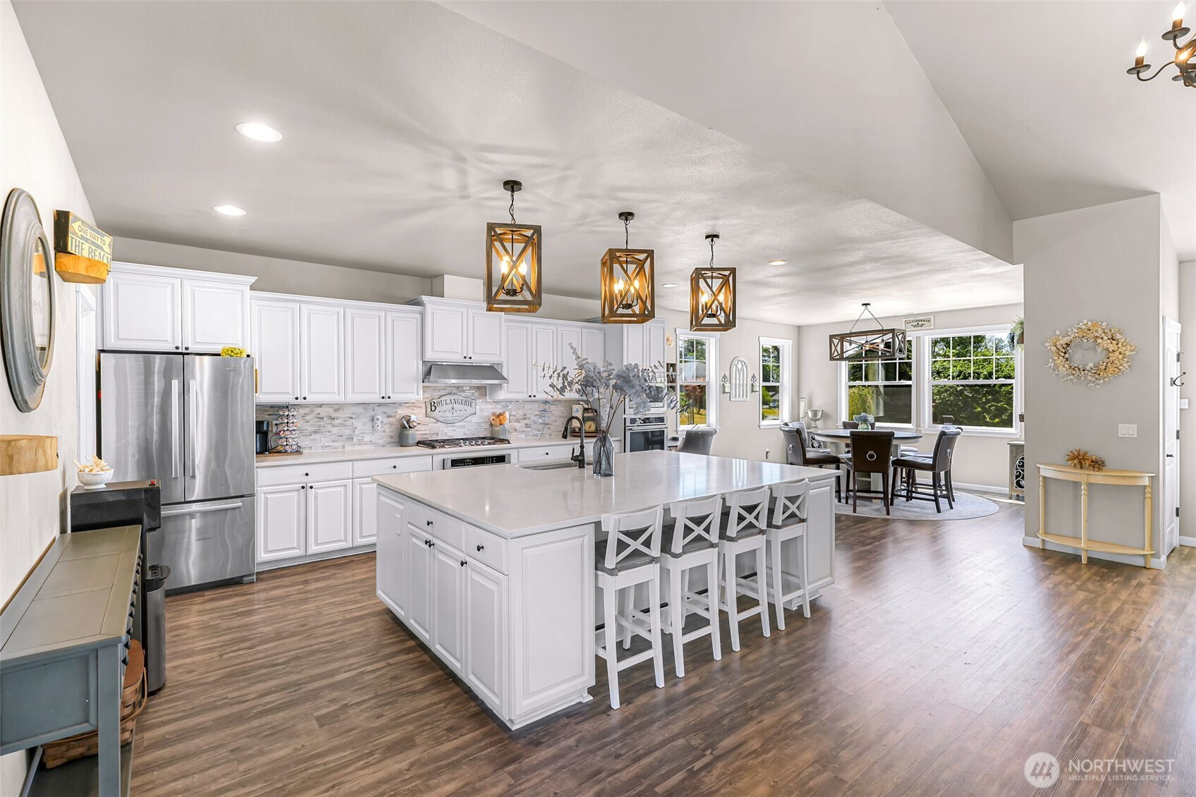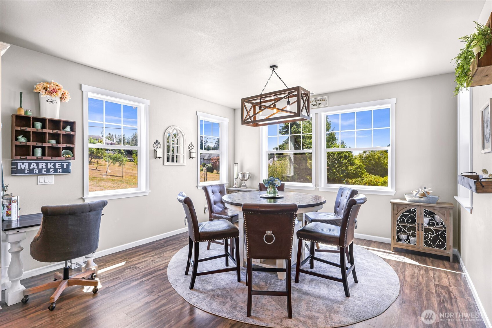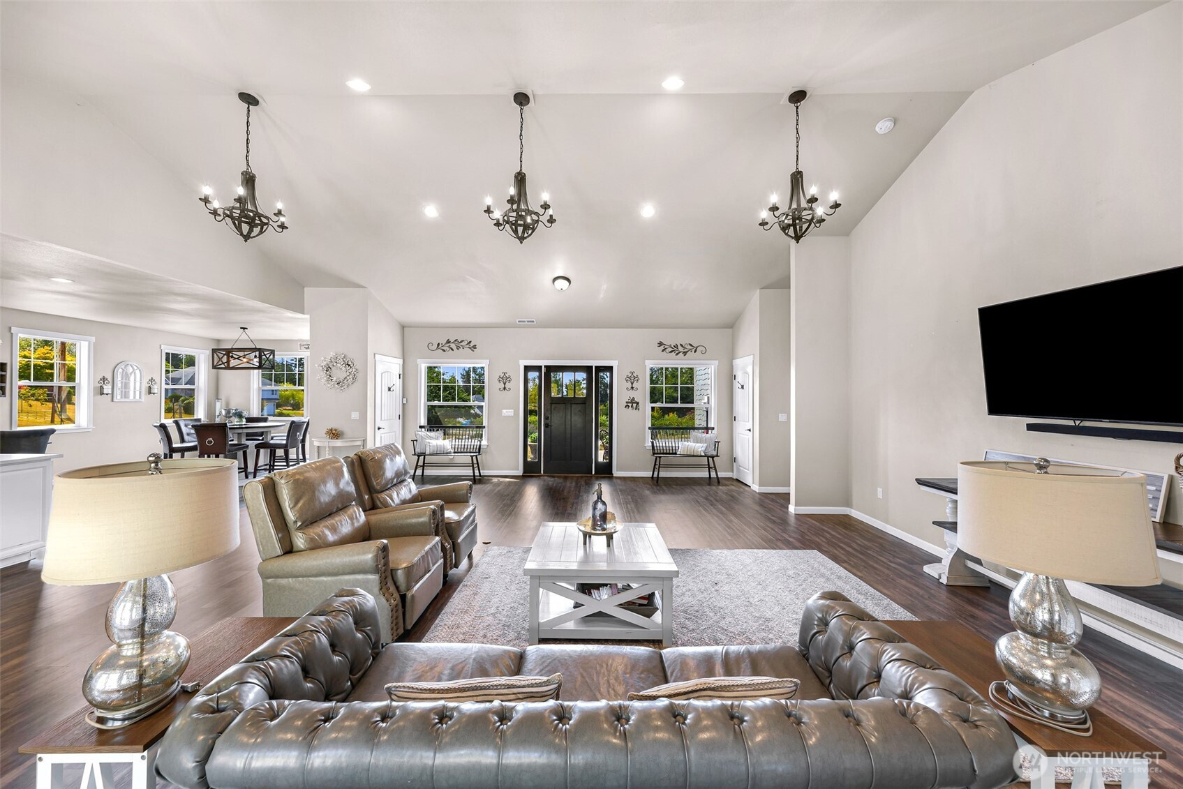 Homes like this rarely come available in Skyridge. Wake up to valley & mountain views, peaceful surroundings & room to breathe in this stunning 2019 custom rambler nestled on just over 5 acres. A bright & welcoming great room anchors the home w/vaulted ceilings, rich vinyl plank flooring & beautiful statement lighting. The open layout seamlessly connects the living, dining & kitchen areas, creating the perfect space for everyday living or entertaining. The kitchen is designed for gathering w/a large island w/bar seating, quartz countertops, gas range, double ovens & a generous walk-in pantry. French doors open to a private back patio, creating an effortless indoor-outdoor lifestyle. The thoughtfully designed floorplan includes a versatile den or office just off the kitchen w/its own ¾ bath, ideal for office, guests or multi-use living. The spacious primary suite features a private ¾ en-suite, while 2 additional bedrooms share a full bath w/double vanity. Above the 3-car garage, a large bonus room w/closet offers the flexibility of a 4th bedroom, office or media space. Laundry rm w/bonus shower for cleanup after outdoor projects, pets, or gardening. Outside, enjoy room to roam w/RV parking, garden shed, landscaped grounds & multiple areas to relax, play & take in the scenery. Fully fenced livestock enclosure & pasture space. Located on the west side of Little Mountain enjoy numerous hiking trails while being just 5 min to town & 2 min to I-5 for commuting.
