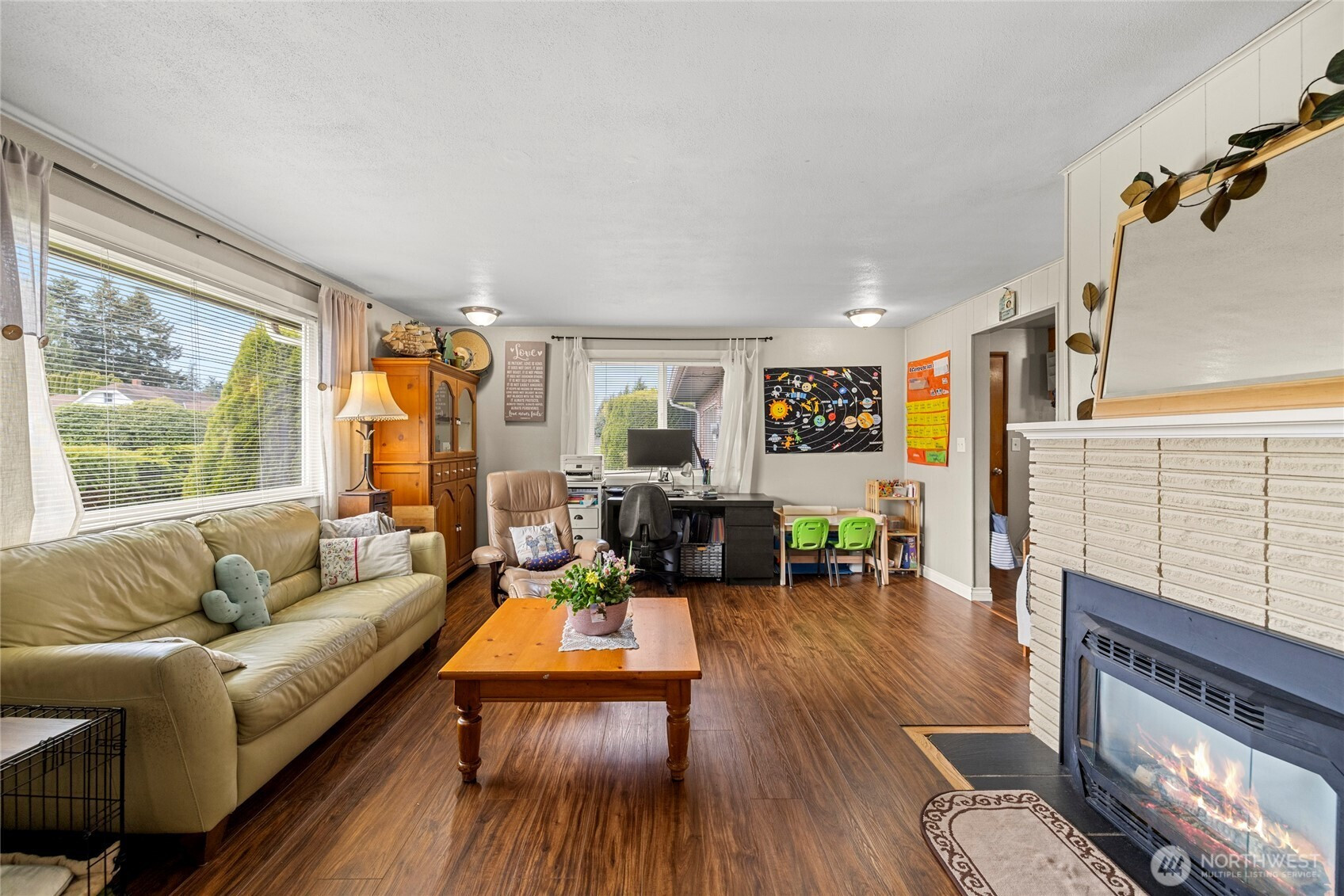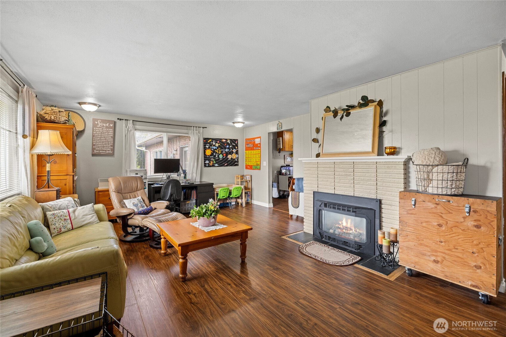 This 2 bdrm / 1 bath home is situated on a corner lot just outside the Burlington City limits. The gas fireplace insert easily heats the home. Single car garage with a carport built for a RV. Large fenced back yard with private deck for your quiet afternoon relaxing.