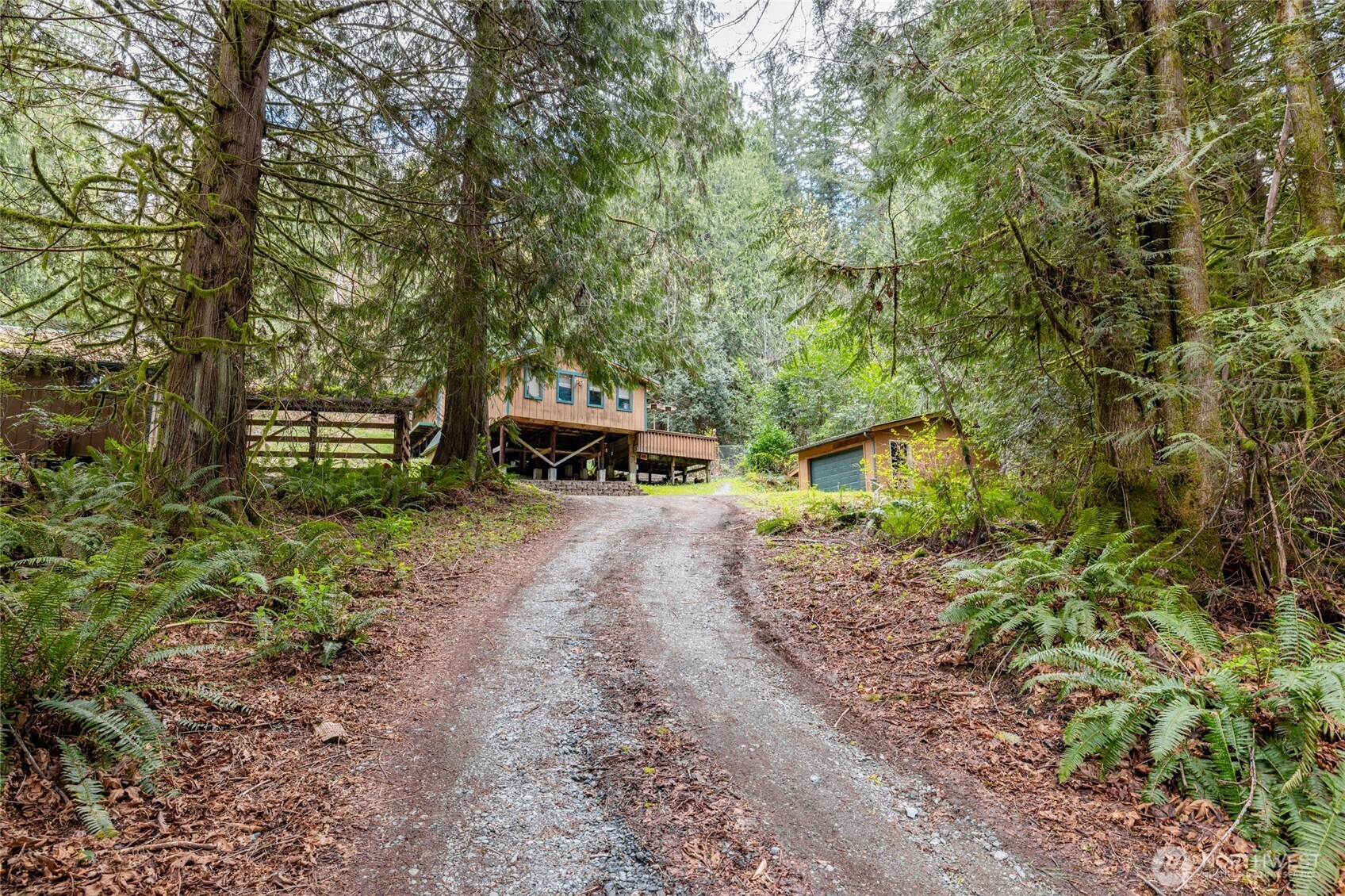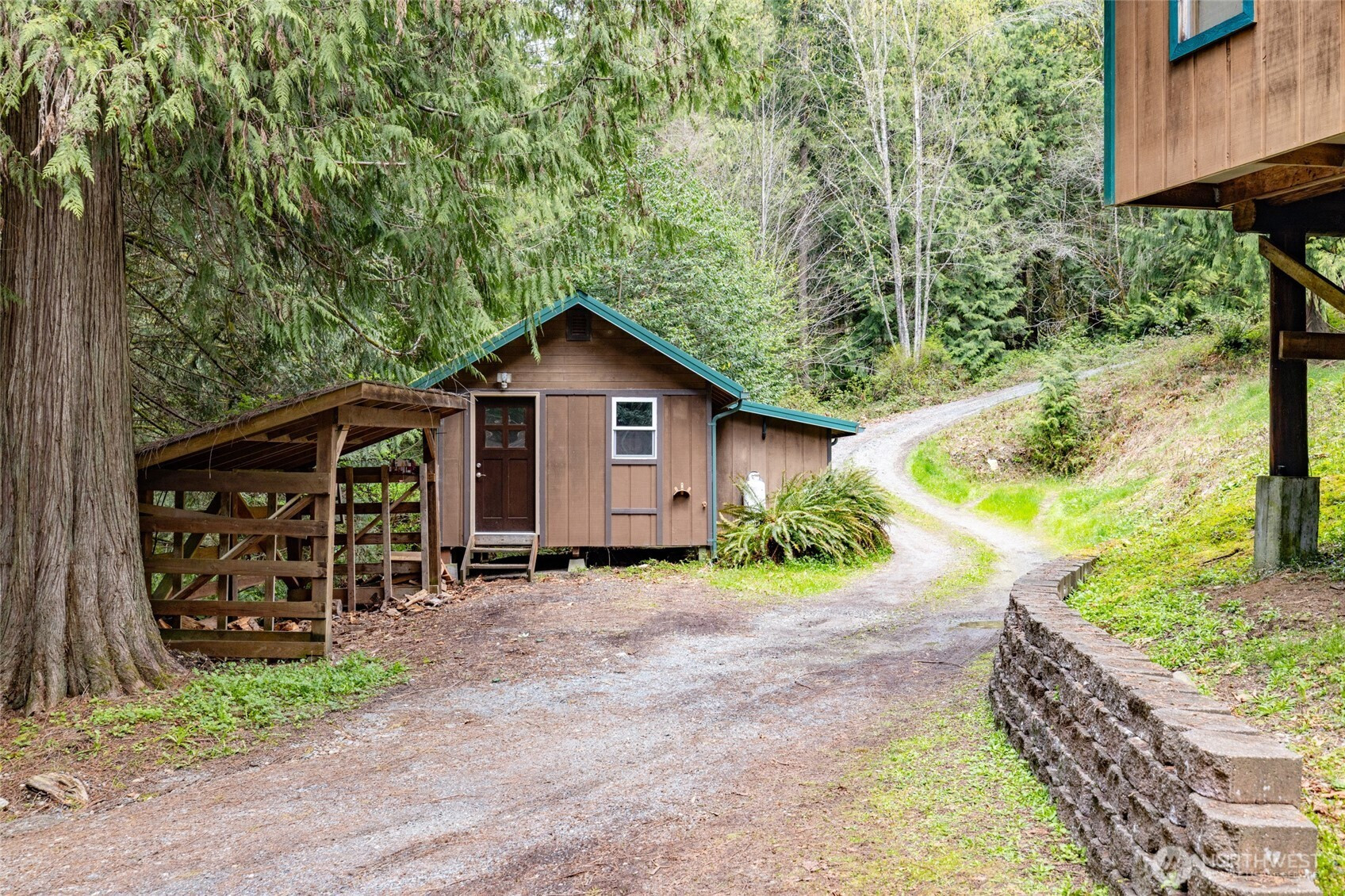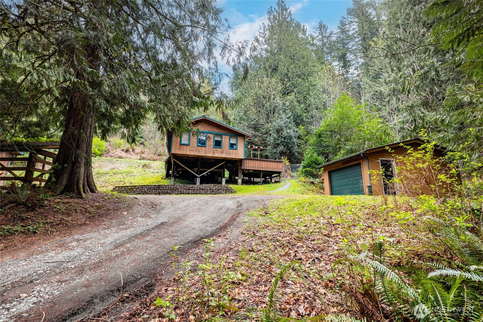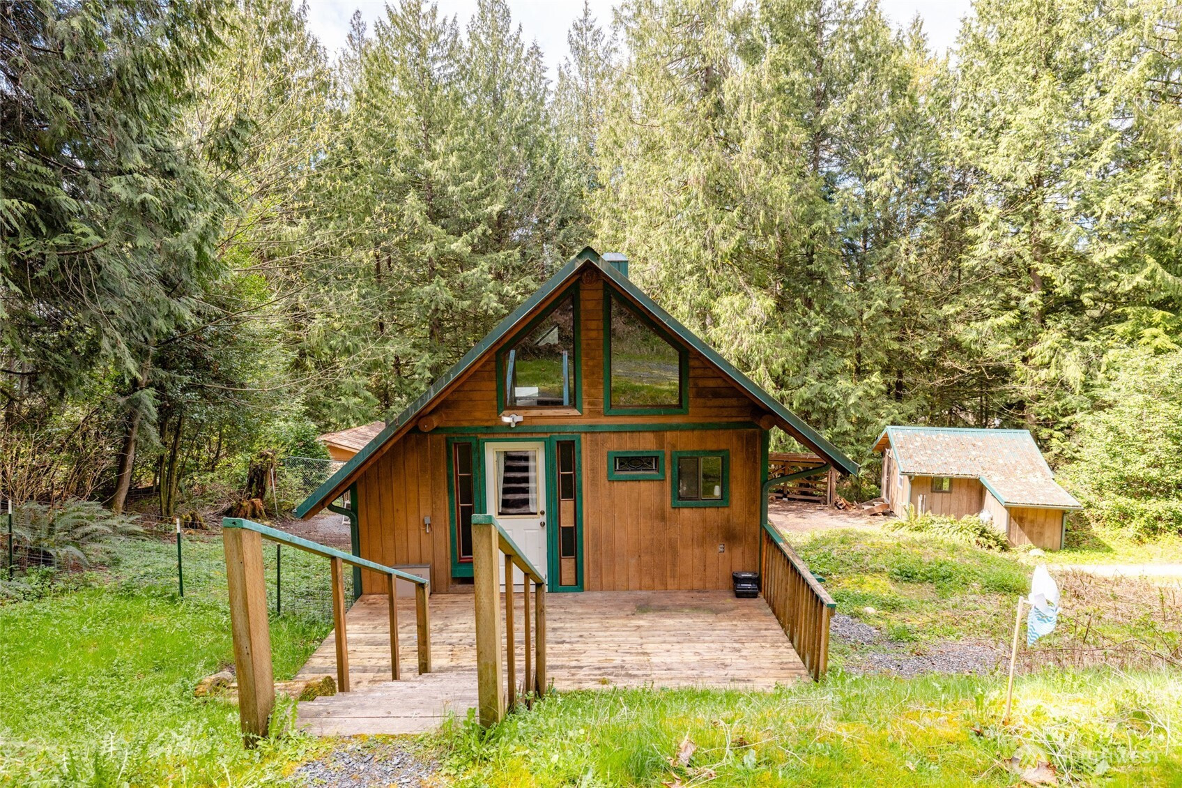 Rustic home in the woods on 2.74 acres. One large bedroom, small closet with 2nd sleeping area in a loft space. Country kitchen with pot belly stove and natural wood cabinets. Adorable bathroom with claw foot tub. Small sunroom with abundant southern light. Cozy living area with wood heat. Very rustic with a cabin feel. 16 x 14 south facing deck. Detached single car garage/ work shop. Detached hobby/storage area with 3/4 bath and potential for an ADU. Property is private, surrounded by woods and terraced. Very peaceful place to call home.