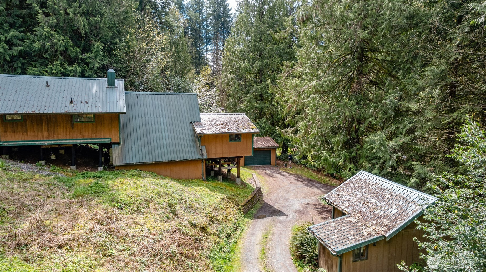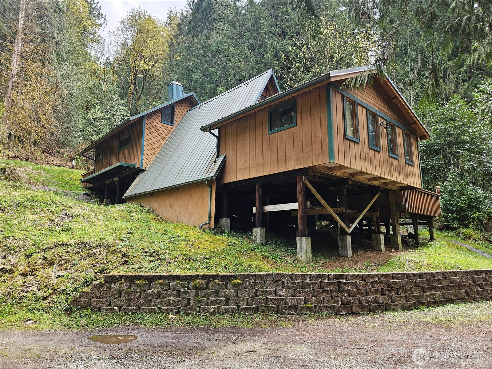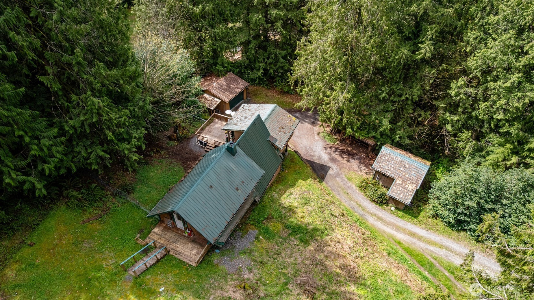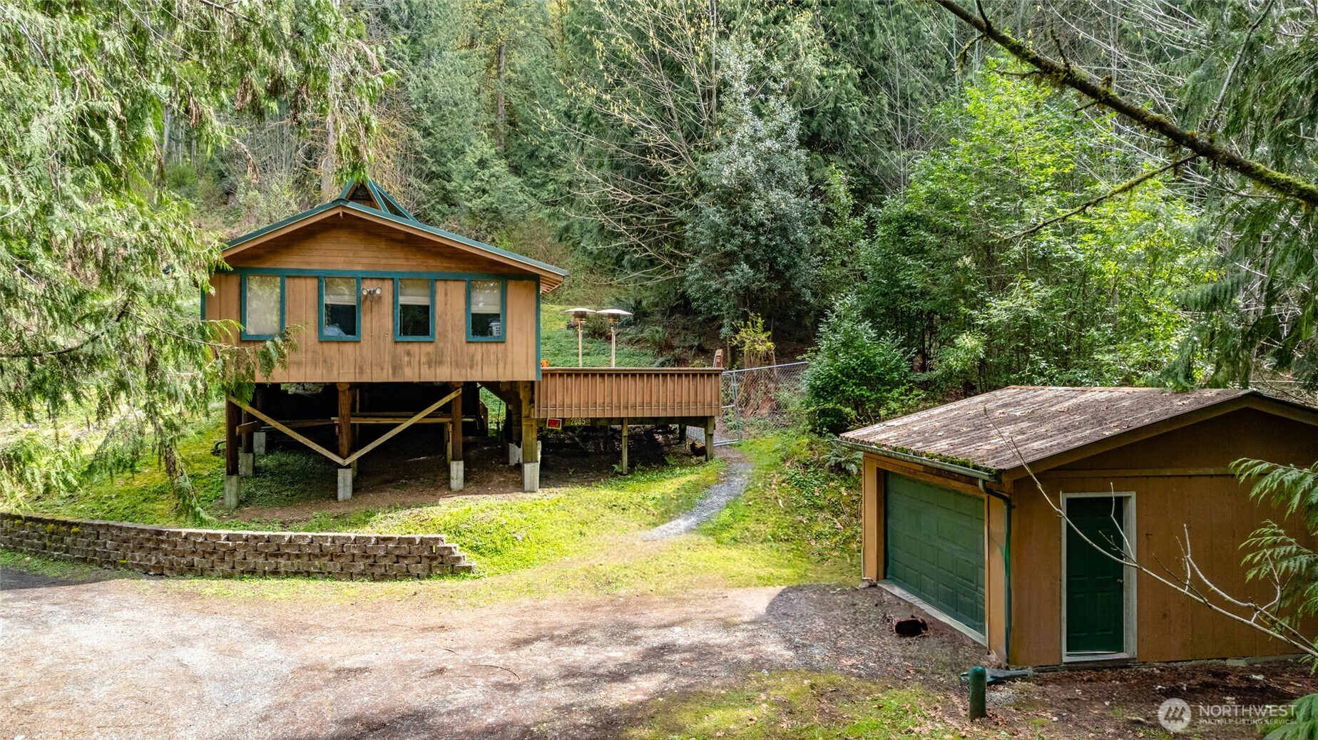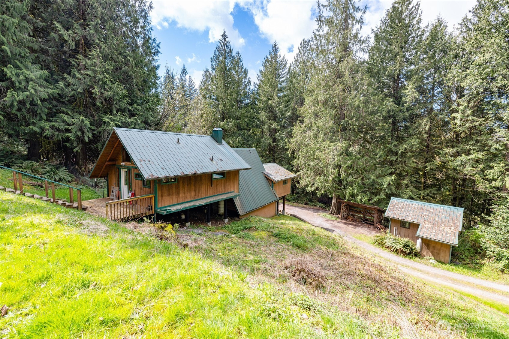 Rustic home in the woods on 2.74 acres. One large bedroom, small closet with 2nd sleeping area in a loft space. Country kitchen with pot belly stove and natural wood cabinets. Adorable bathroom with claw foot tub. Small sunroom with abundant southern light. Cozy living area with wood heat. Very rustic with a cabin feel. 16 x 14 south facing deck. Detached single car garage/ work shop. Detached hobby/storage area with 3/4 bath and potential for an ADU. Property is private, surrounded by woods and terraced. Very peaceful place to call home.