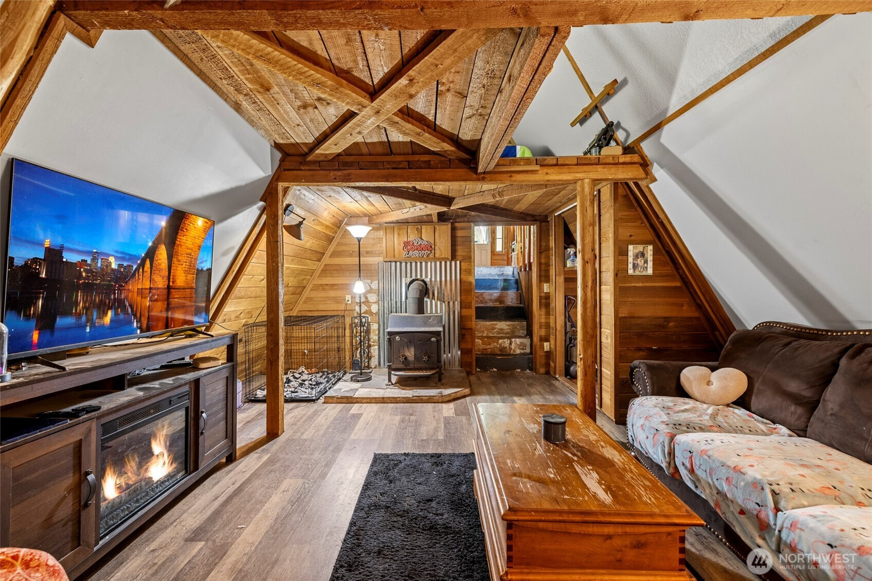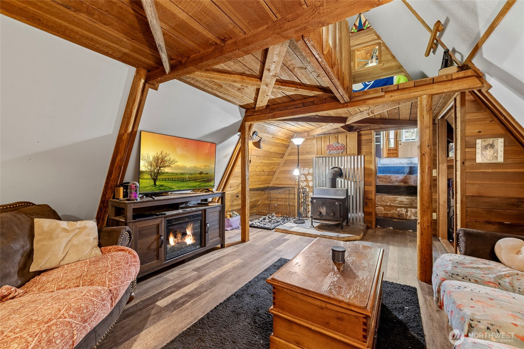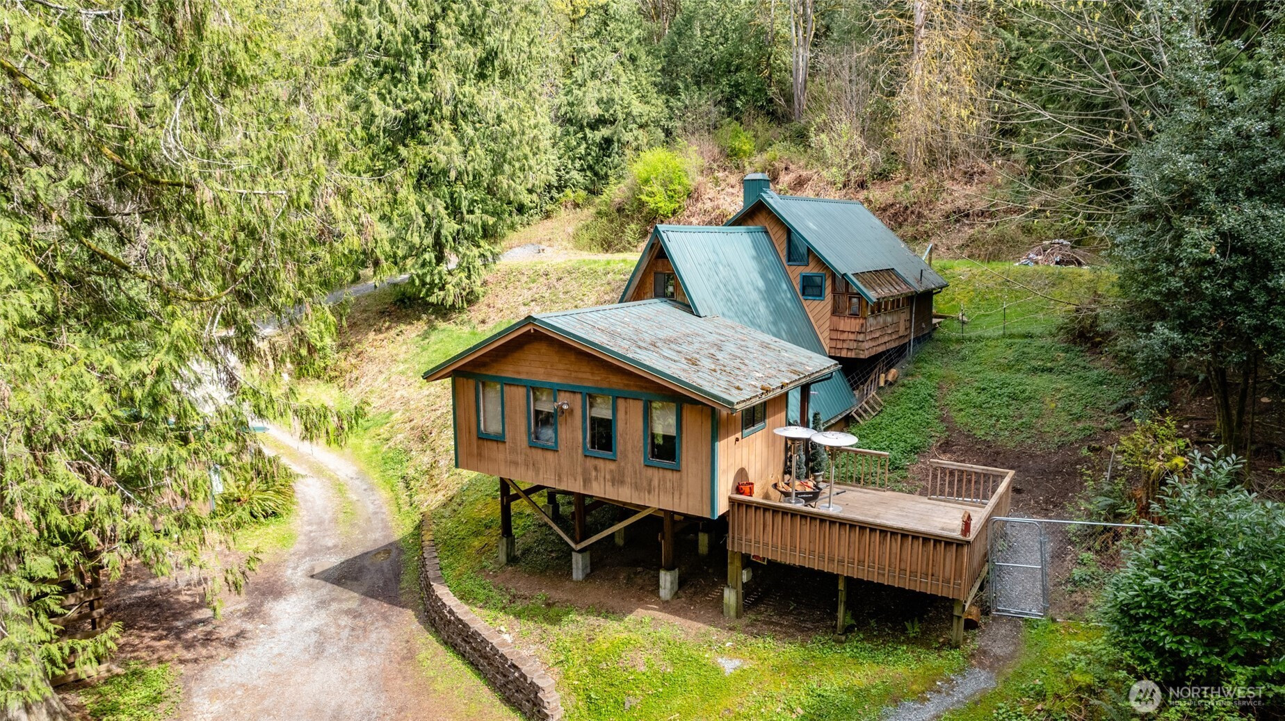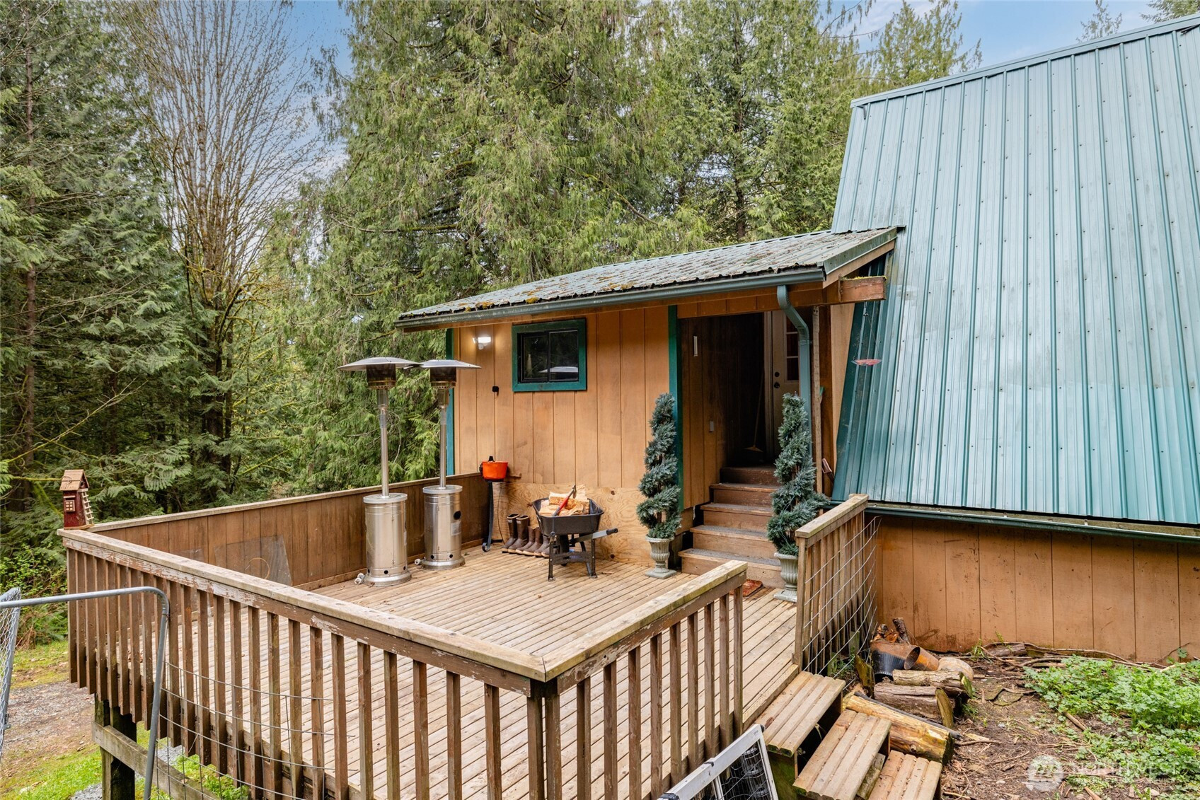Rustic home in the woods on 2.74 acres. One large bedroom, small closet with 2nd sleeping area in a loft space. Country kitchen with pot belly stove and natural wood cabinets. Adorable bathroom with claw foot tub. Small sunroom with abundant southern light. Cozy living area with wood heat. Very rustic with a cabin feel. 16 x 14 south facing deck. Detached single car garage/ work shop. Detached hobby/storage area with 3/4 bath and potential for an ADU. Property is private, surrounded by woods and terraced. Very peaceful place to call home.
