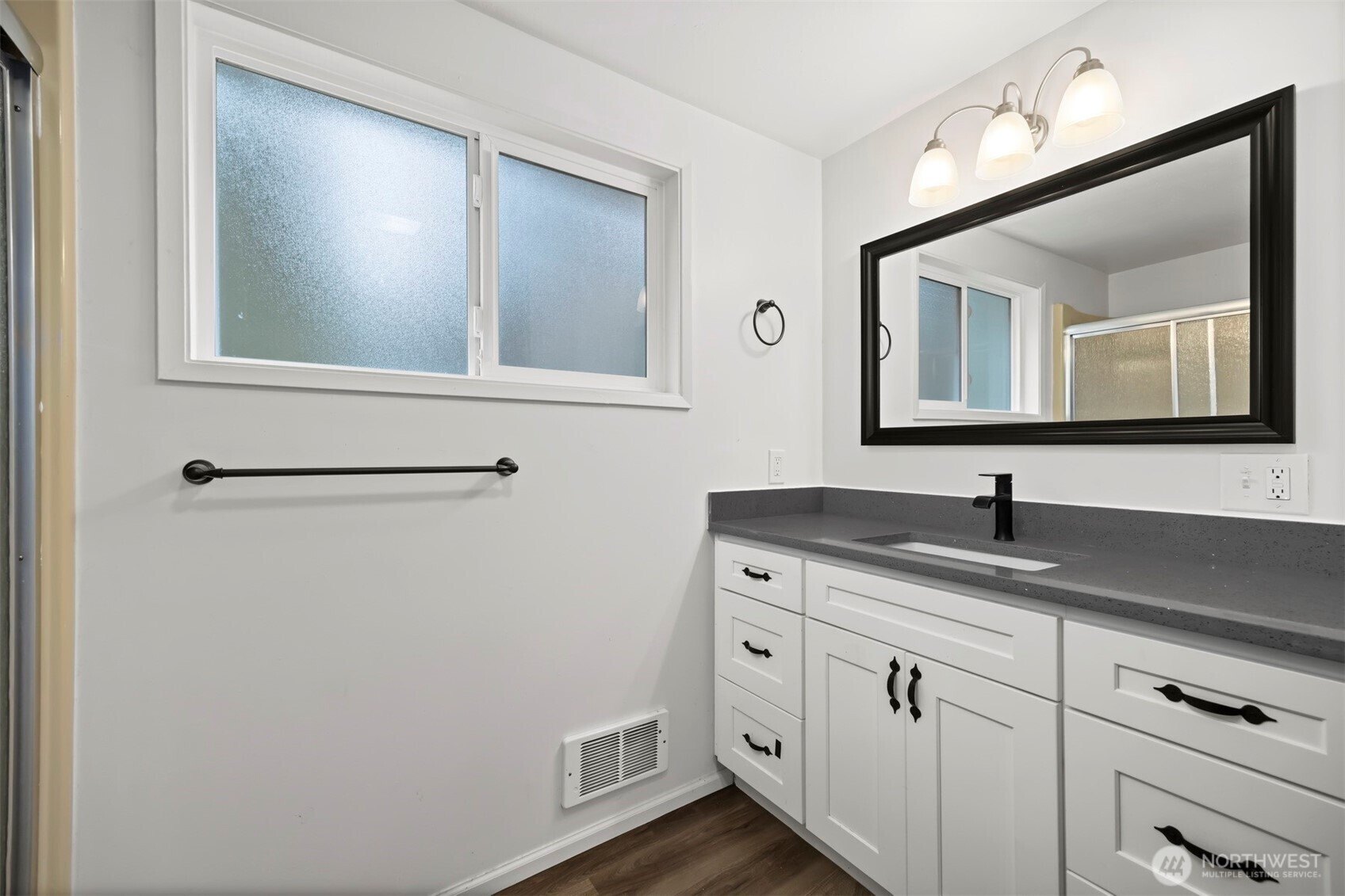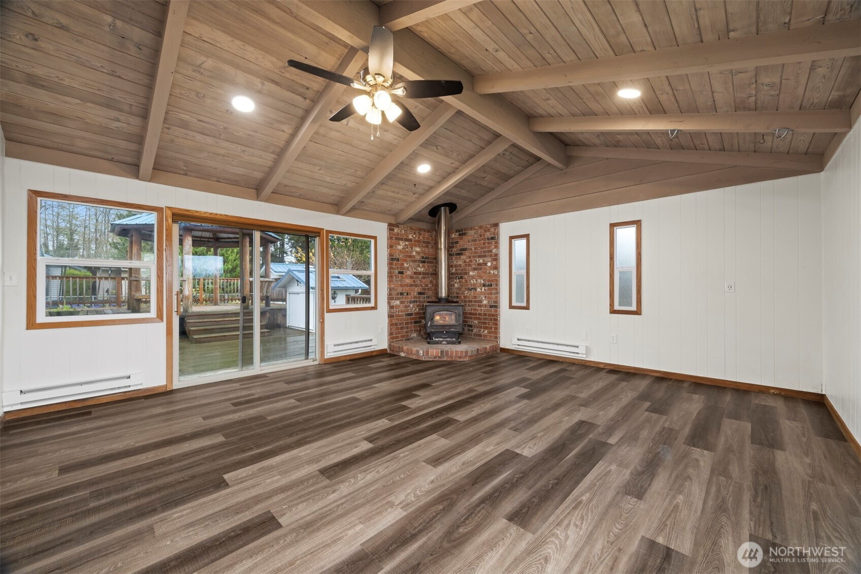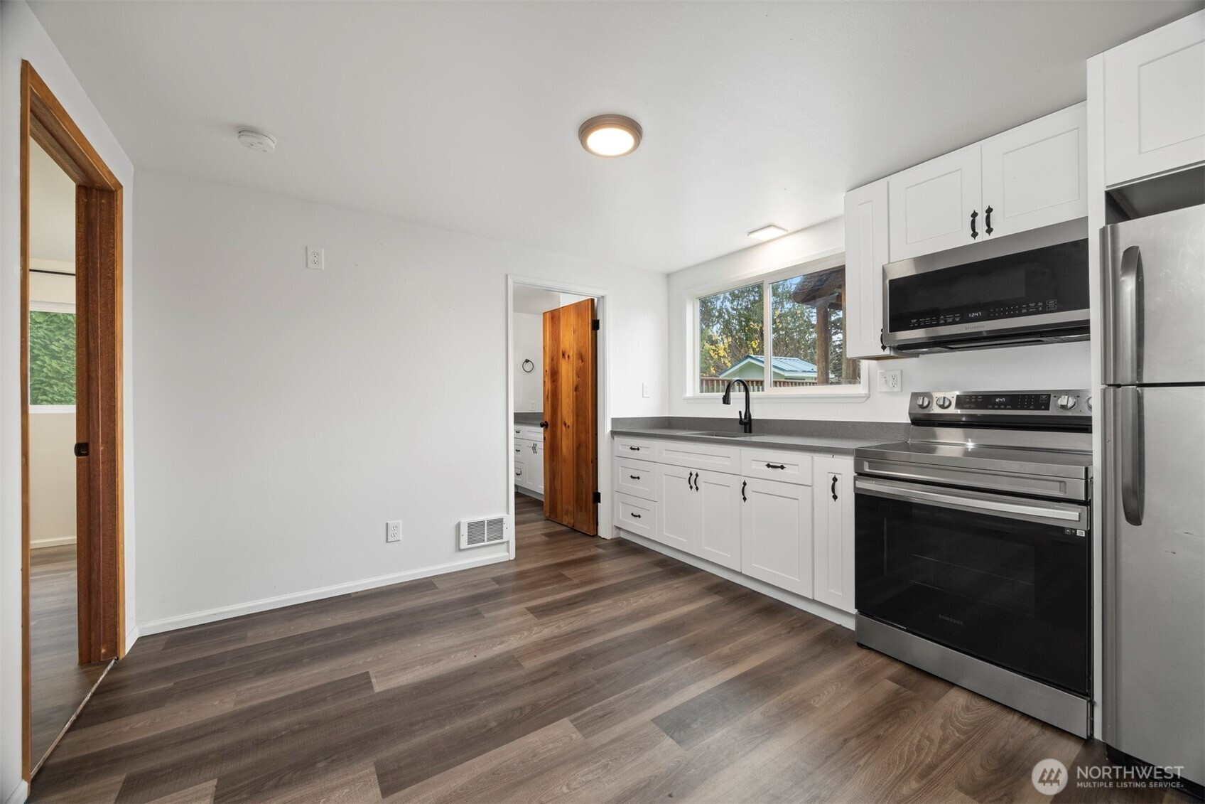 Welcome home to this beautifully updated tri-level residence on a spacious ¾-acre lot in West Sedro-Woolley! Enjoy fruit trees, berry patches, and plenty of room to roam. The bright kitchen features new stainless-steel appliances, quartz countertops, LVP flooring. Vaulted wood ceilings and a charming brick library add warmth and character. Upstairs, discover newer carpet, updated door hardware, and a fully refreshed main bath with a new tub, dual vanities, soft-close cabinetry, and modern fixtures. The primary bedroom offers lovely views, built-in storage, and direct access to the main bath. Attached ADU apt with its own kitchen and bath. Could be rental income or multi- generational living.