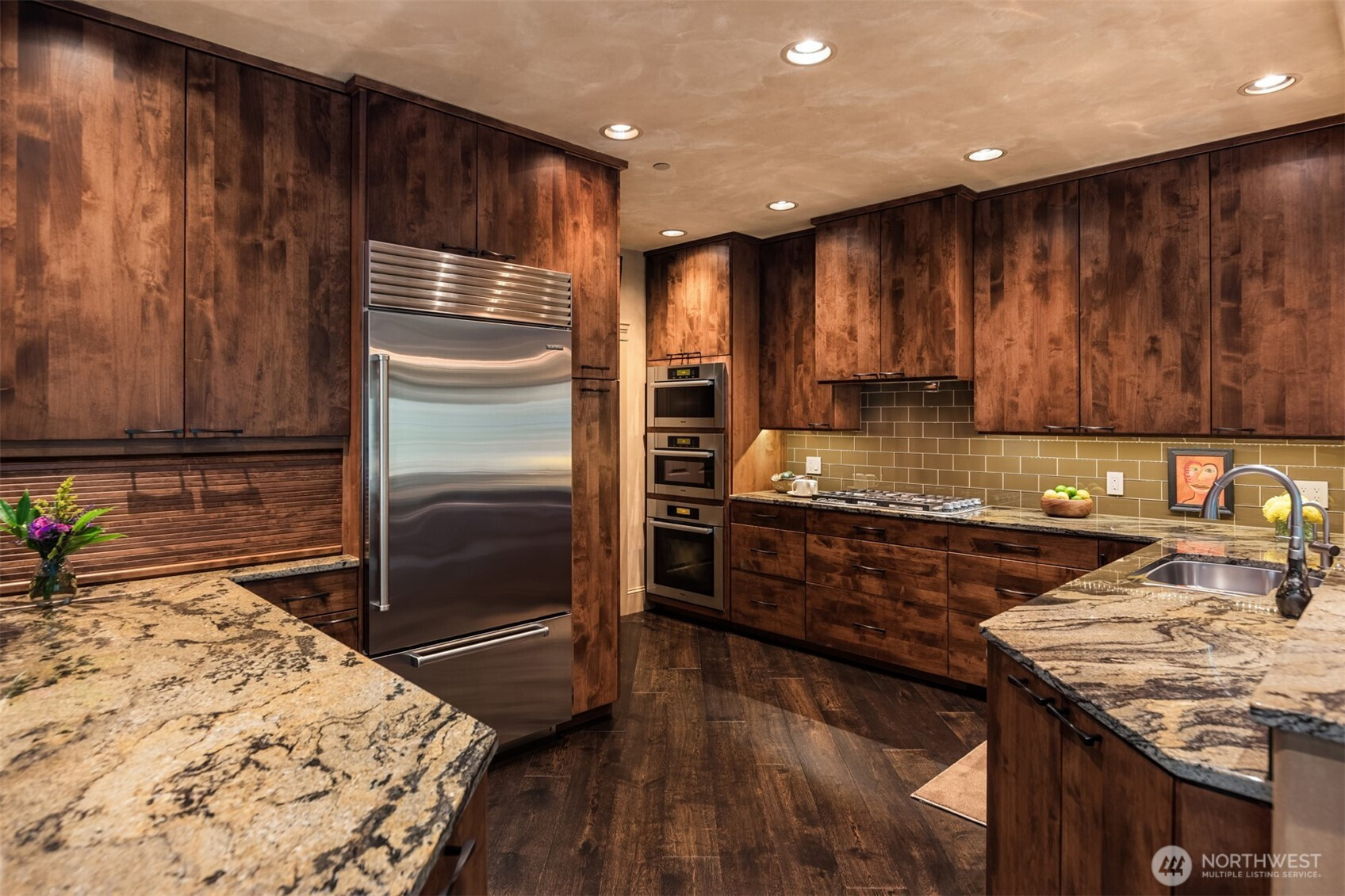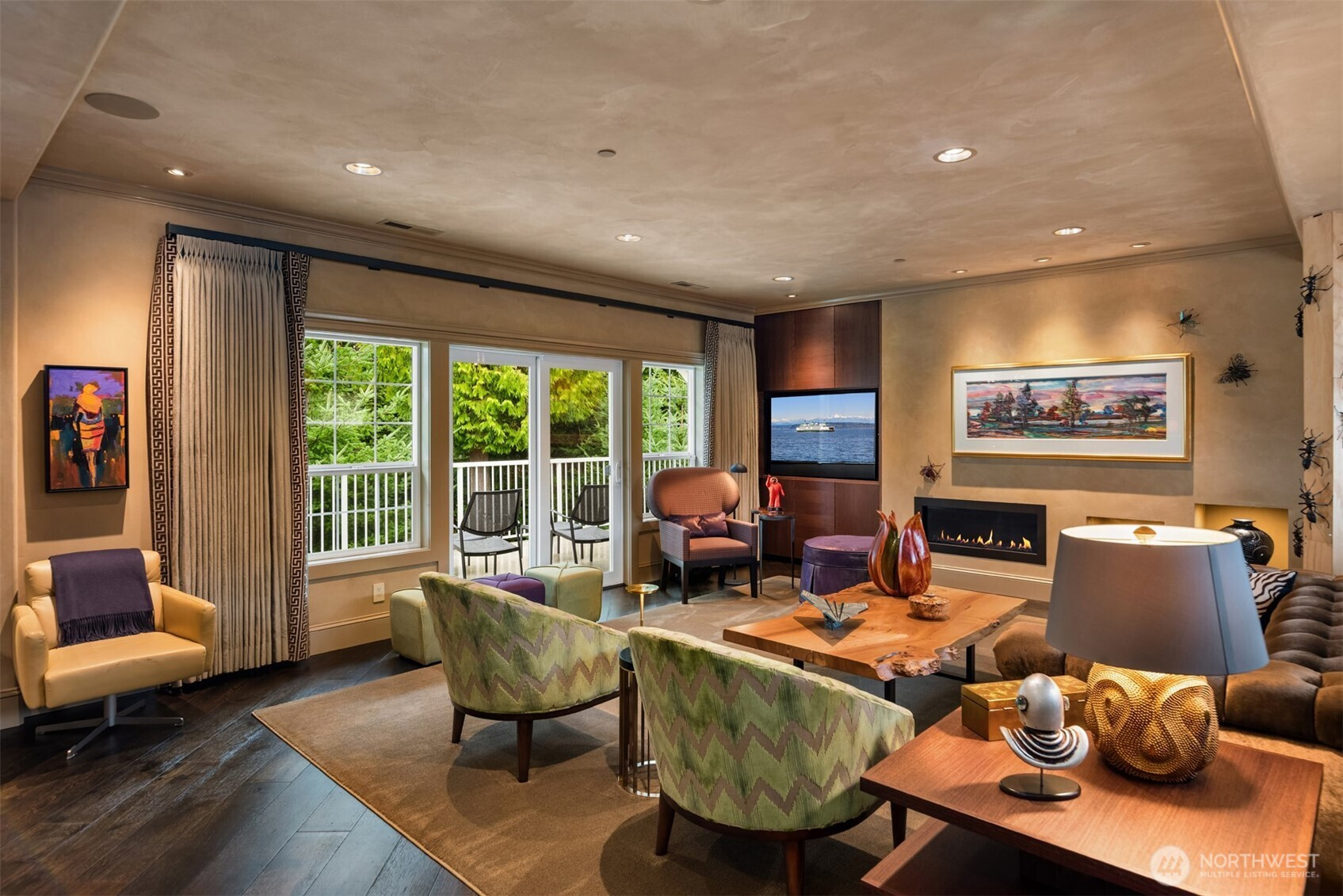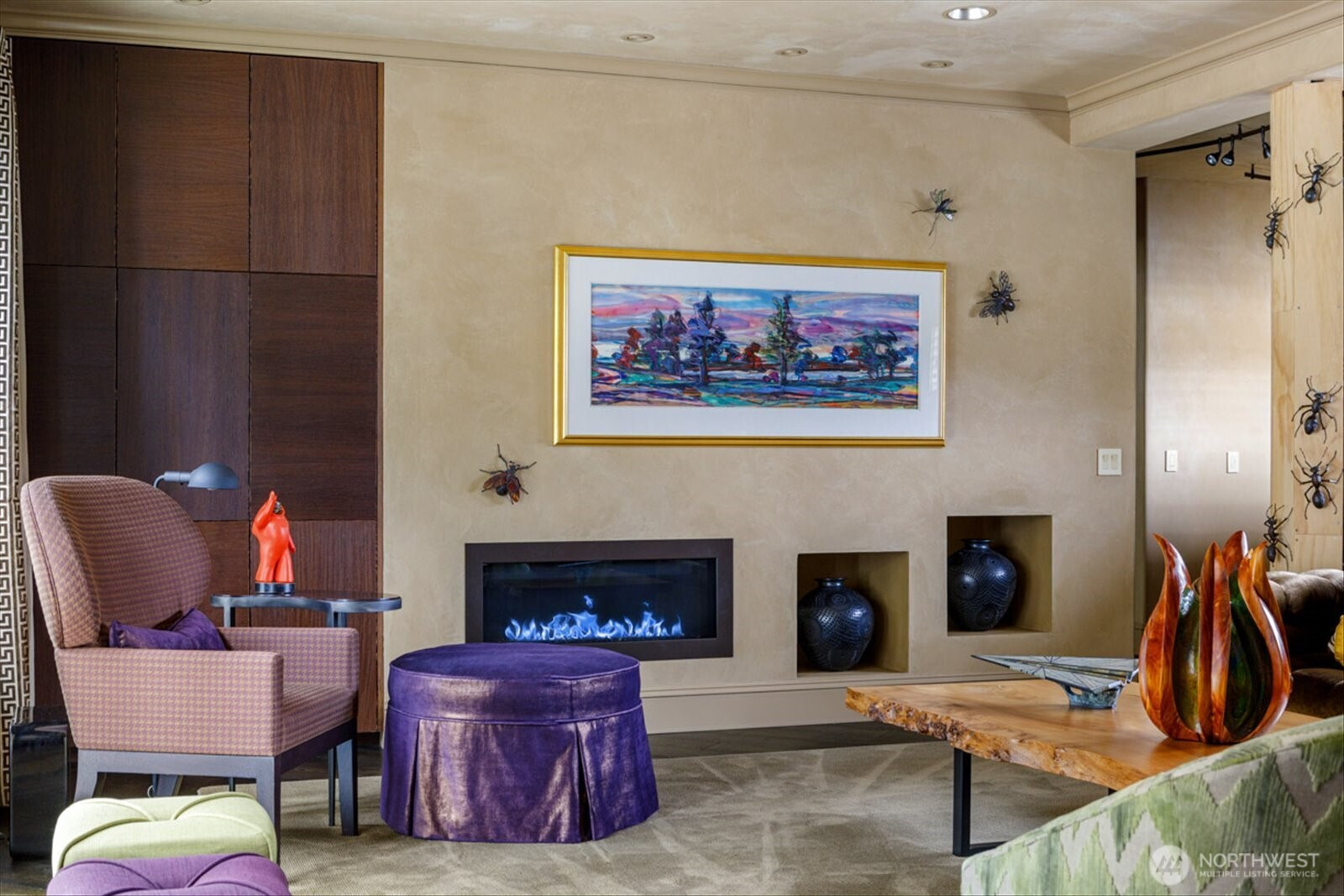 Experience unparalleled luxury! This lock-and-leave condo showcases high-end finishes throughout. Completely redesigned down to the studs, this 3-bedroom home is sure to impress. A striking 80-foot mural by renowned artist Jennifer Bowen infuses artistic elegance into the space. Nestled against a protected forest, the home features 1 bedroom plus a den and media room, offering both privacy and tranquility. The interior is adorned with marble, metals, handmade glass, fine textiles, and expansive walls of custom DeWils cabinetry and lighting. Two generous decks create seamless indoor-outdoor living, perfect for entertaining. Outdoor enthusiasts will enjoy a 5 min walk to Skyline Marina, Washington Park, and nearby beaches. Ideal Location!