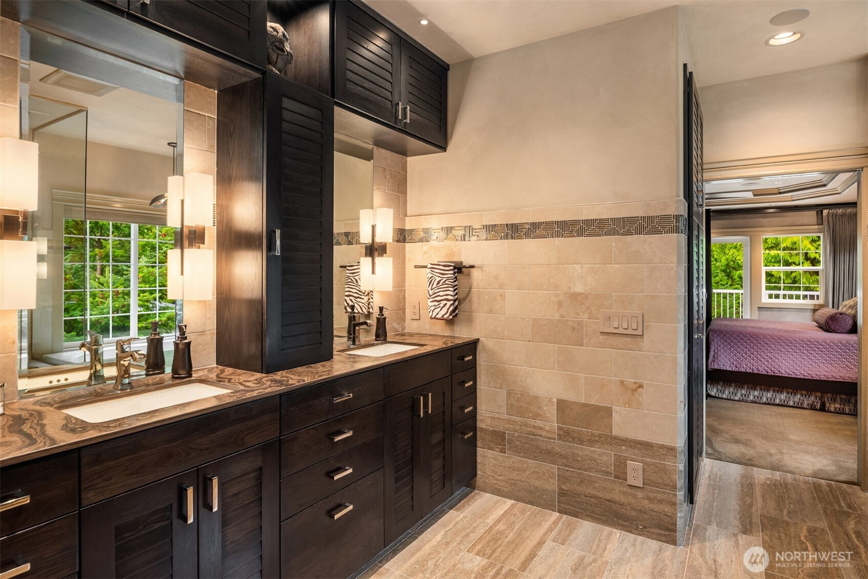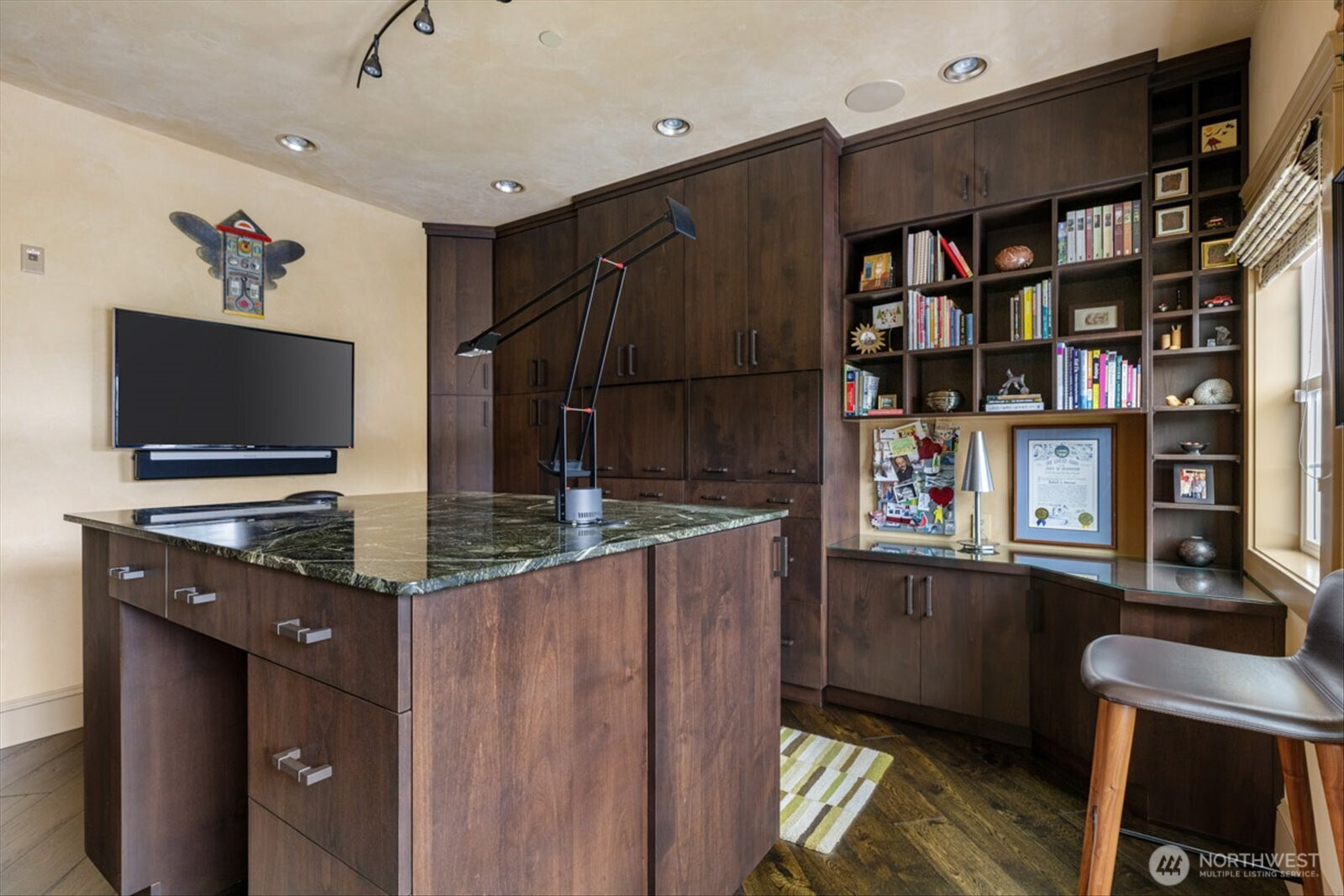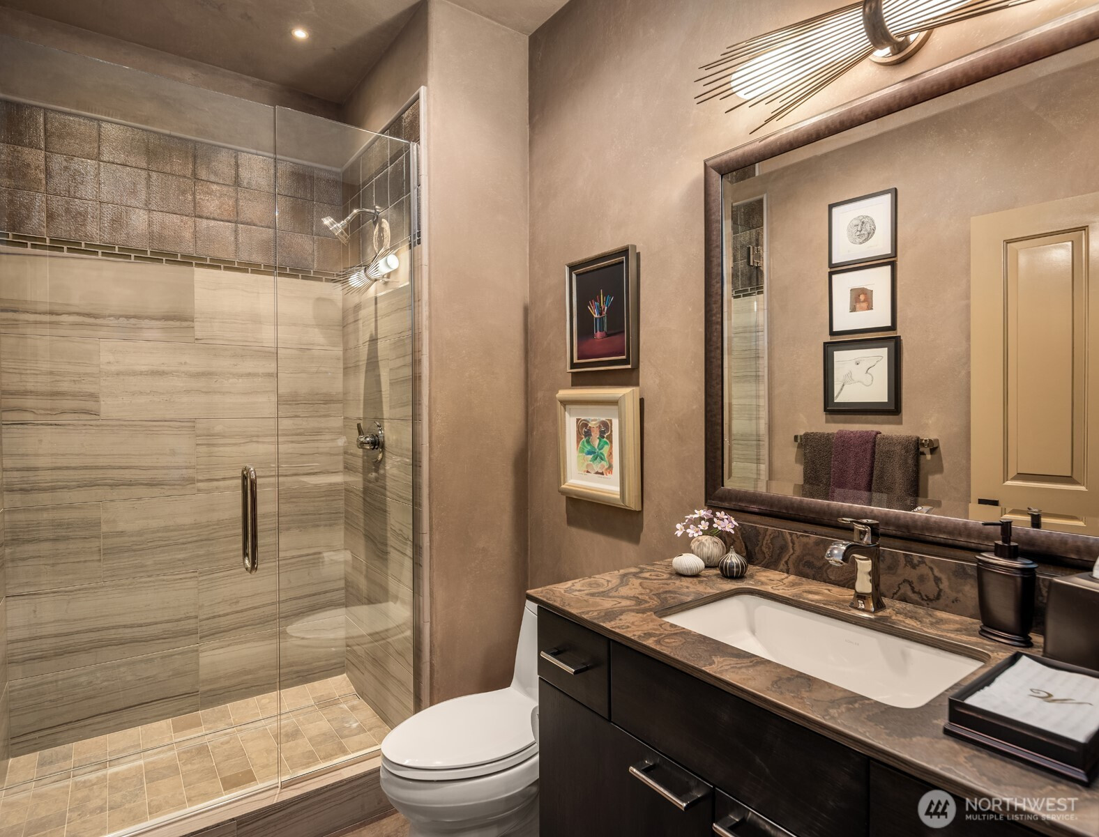 Experience unparalleled luxury! This lock-and-leave condo showcases high-end finishes throughout. Completely redesigned down to the studs, this 3-bedroom home is sure to impress. A striking 80-foot mural by renowned artist Jennifer Bowen infuses artistic elegance into the space. Nestled against a protected forest, the home features 1 bedroom plus a den and media room, offering both privacy and tranquility. The interior is adorned with marble, metals, handmade glass, fine textiles, and expansive walls of custom DeWils cabinetry and lighting. Two generous decks create seamless indoor-outdoor living, perfect for entertaining. Outdoor enthusiasts will enjoy a 5 min walk to Skyline Marina, Washington Park, and nearby beaches. Ideal Location!