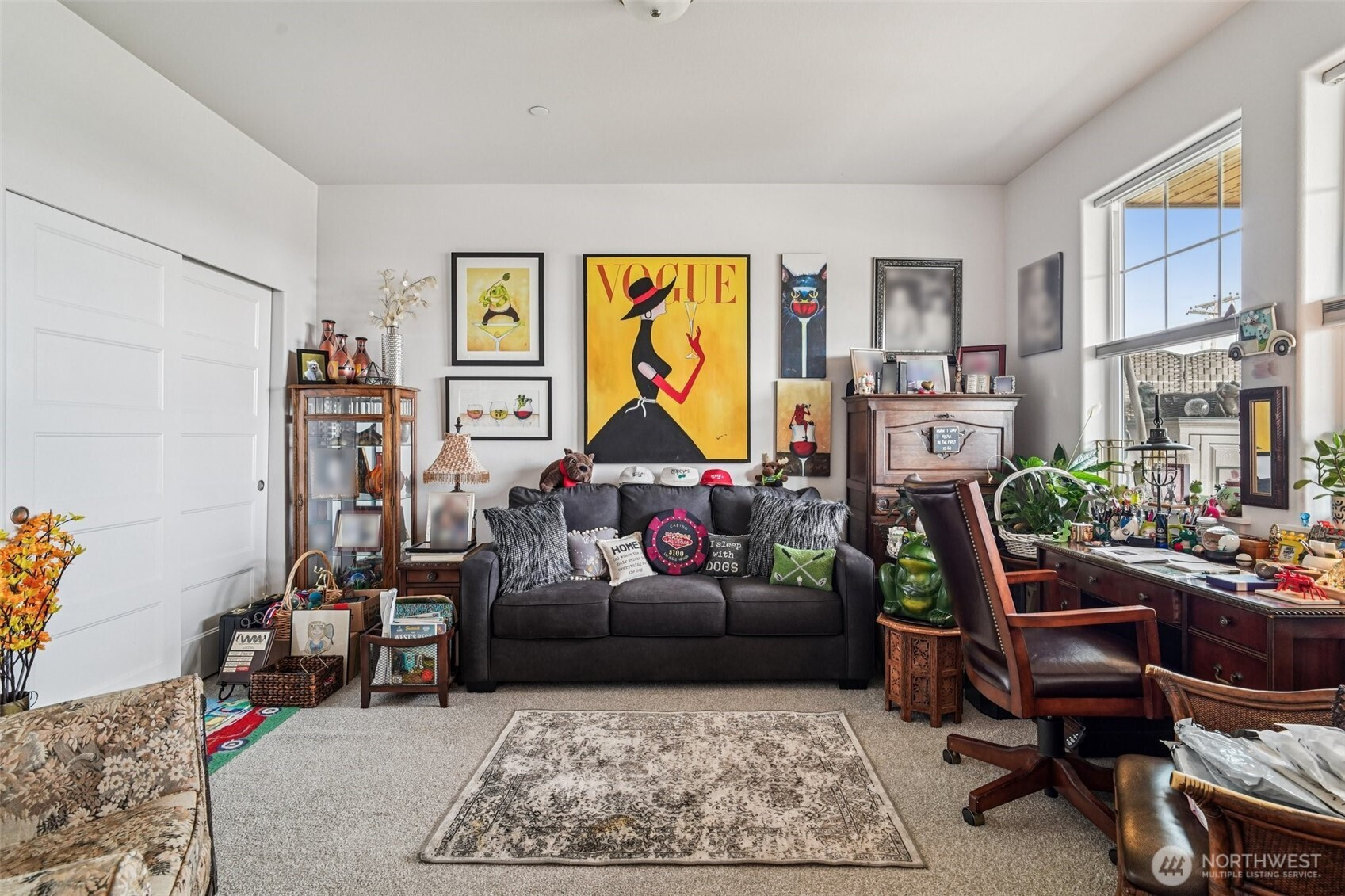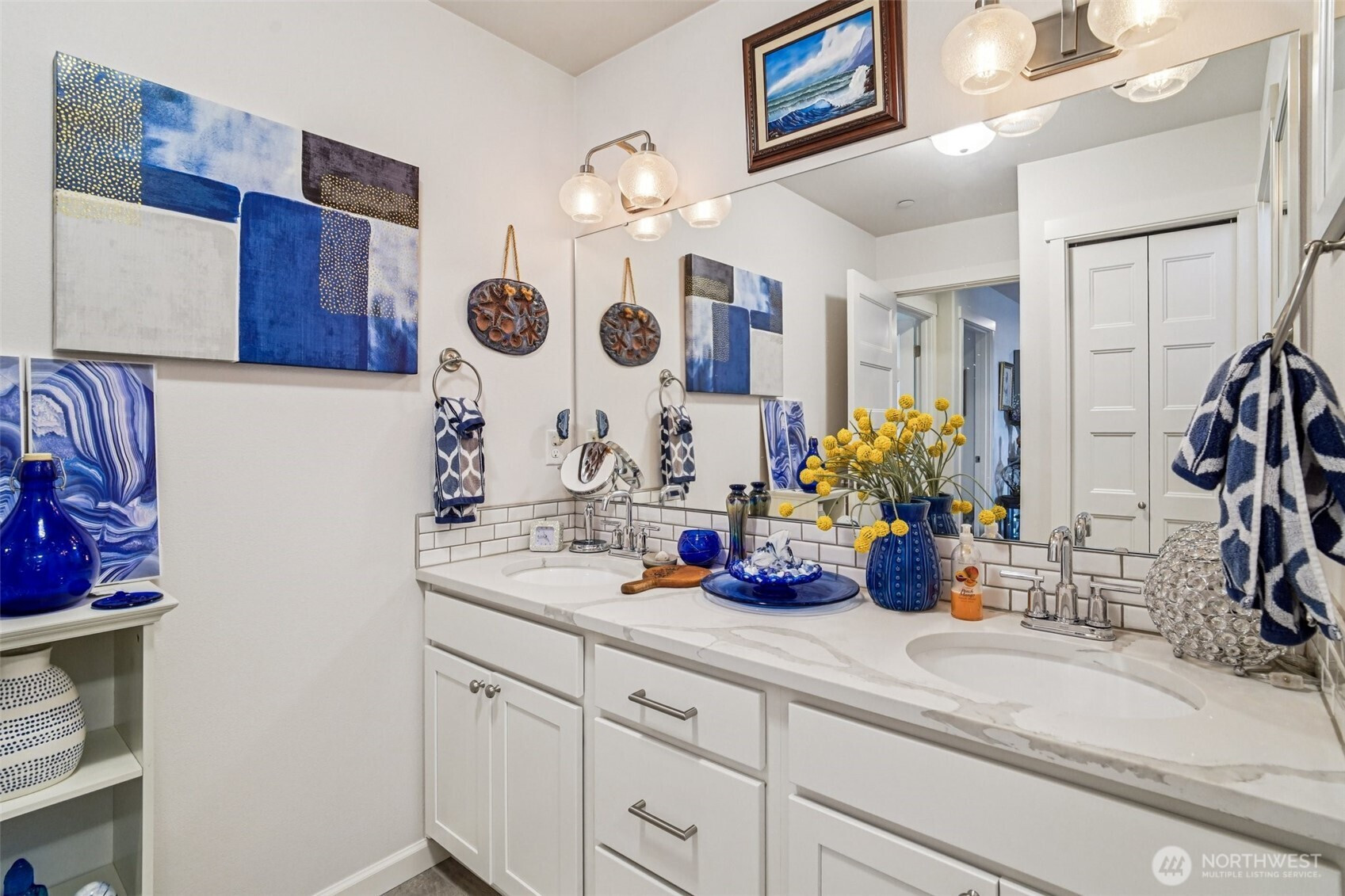 Beautifully crafted, this home blends modern comfort w/relaxed PNW charm. 6 bedrooms and 2.75 bathrooms, the two-story layout is ideal for anyone seeking extra space. The main floor features an open-concept living area filled with natural light, perfect for everyday living and entertaining. A bonus room and full bath provide flexibility for a guest suite, office, or hobby space. Upstairs, the private primary suite w/ en-suite bath is joined by three additional bedrooms, a second full bath, and laundry area. Hardwood floors and premium finishes add elegance, while the covered patio sets the stage for BBQs or quiet evenings outdoors. Enjoy serene water views, a two-car garage—all just minutes from schools, parks, and amenities.