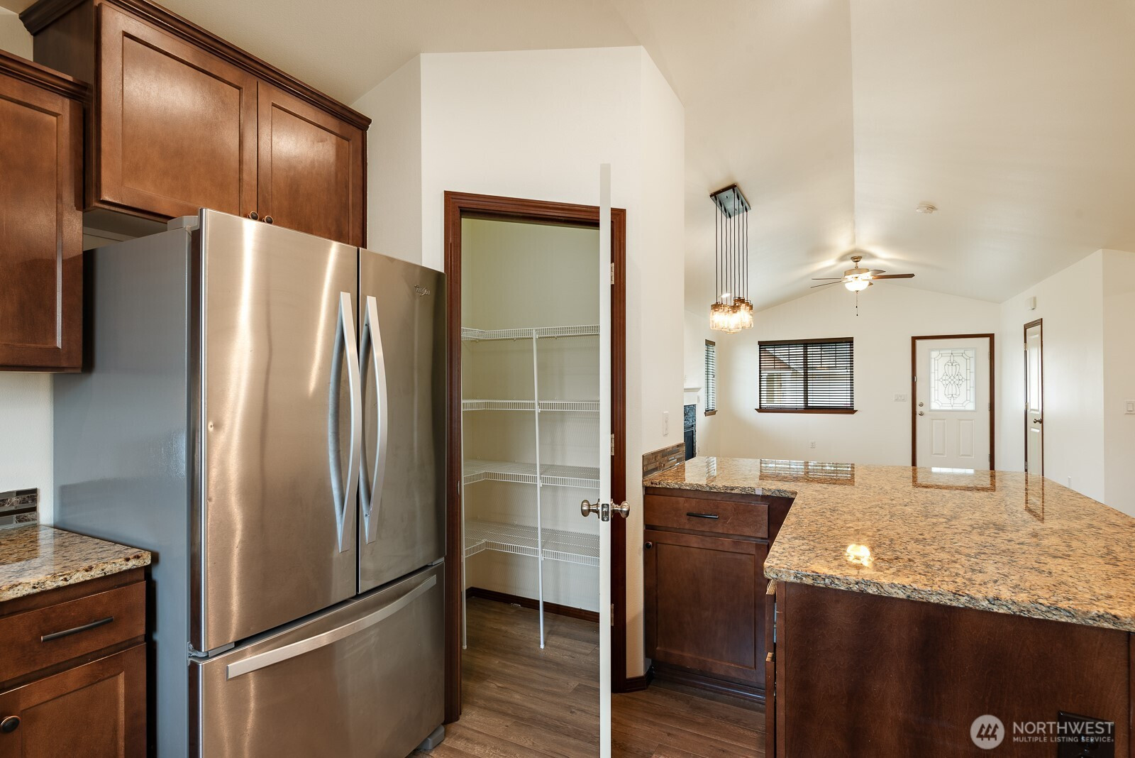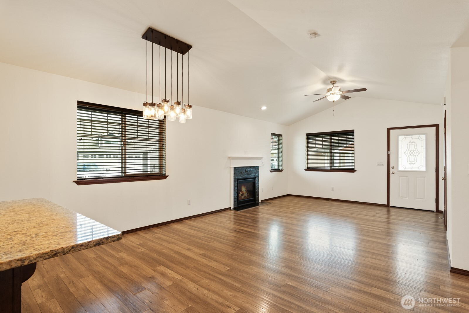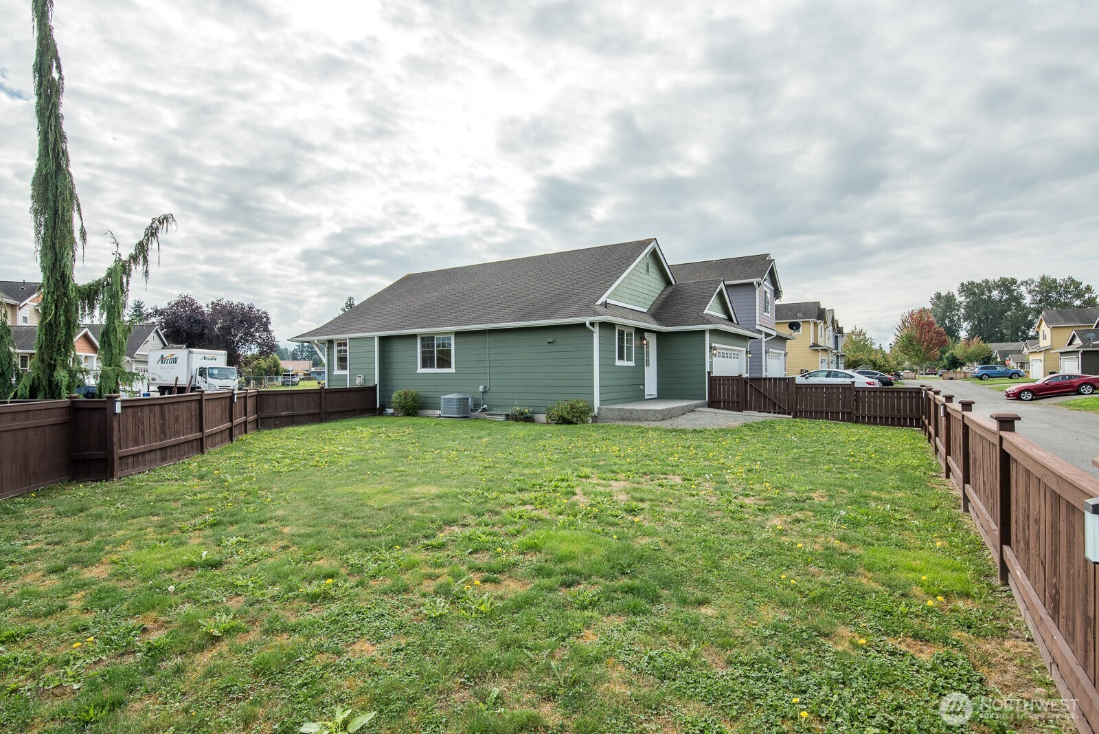 Welcome to this inviting rambler set on a large lot with one of the biggest fenced yards in the neighborhood—perfect for play, gardening, and gatherings. The open floorplan connects the living room with its cozy fireplace, dining area, and an impressive kitchen featuring a spacious eat-at counter, granite surfaces, and a walk-in pantry. The primary suite offers a private retreat with a generous walk-in closet and full bath. Two additional bedrooms, another full bath, and a laundry room add ease of living. Plus enjoy year-around comfort with air conditioning. A two-car garage completes the home. With nearby parks, town, and community amenities just moments away, this home feels practically brand new and ready for you.