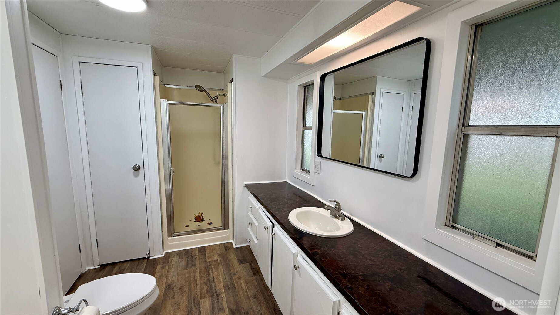 Fully renovated and move-in ready, this 2-bedroom, 1-bath manufactured home offers 924 sq ft of updated living in Park Village Manufactured Home Community in Mount Vernon. Improvements include a new roof, new double-pane windows throughout, fresh interior and exterior paint, new laminate flooring in the main living areas, and new carpet in the bedrooms. The kitchen has been refreshed with new stainless steel appliances, countertops, and sink, while natural gas appliances and a new gas water heater help keep utility costs efficient. The crawl space has been re-insulated with a new vapor barrier, because comfort matters even where you don’t hang out. Covered parking on both sides of the home provides space for up to three vehicles, plus a 20x11 workshop with electricity for projects, hobbies, or well-organized procrastination. A large covered deck offers easy outdoor living. The lot is nicely positioned with only one neighboring home and greenbelt on two sides. Park Village is a gated 55+ community featuring a clubhouse, green spaces, and separate gated RV/boat storage.