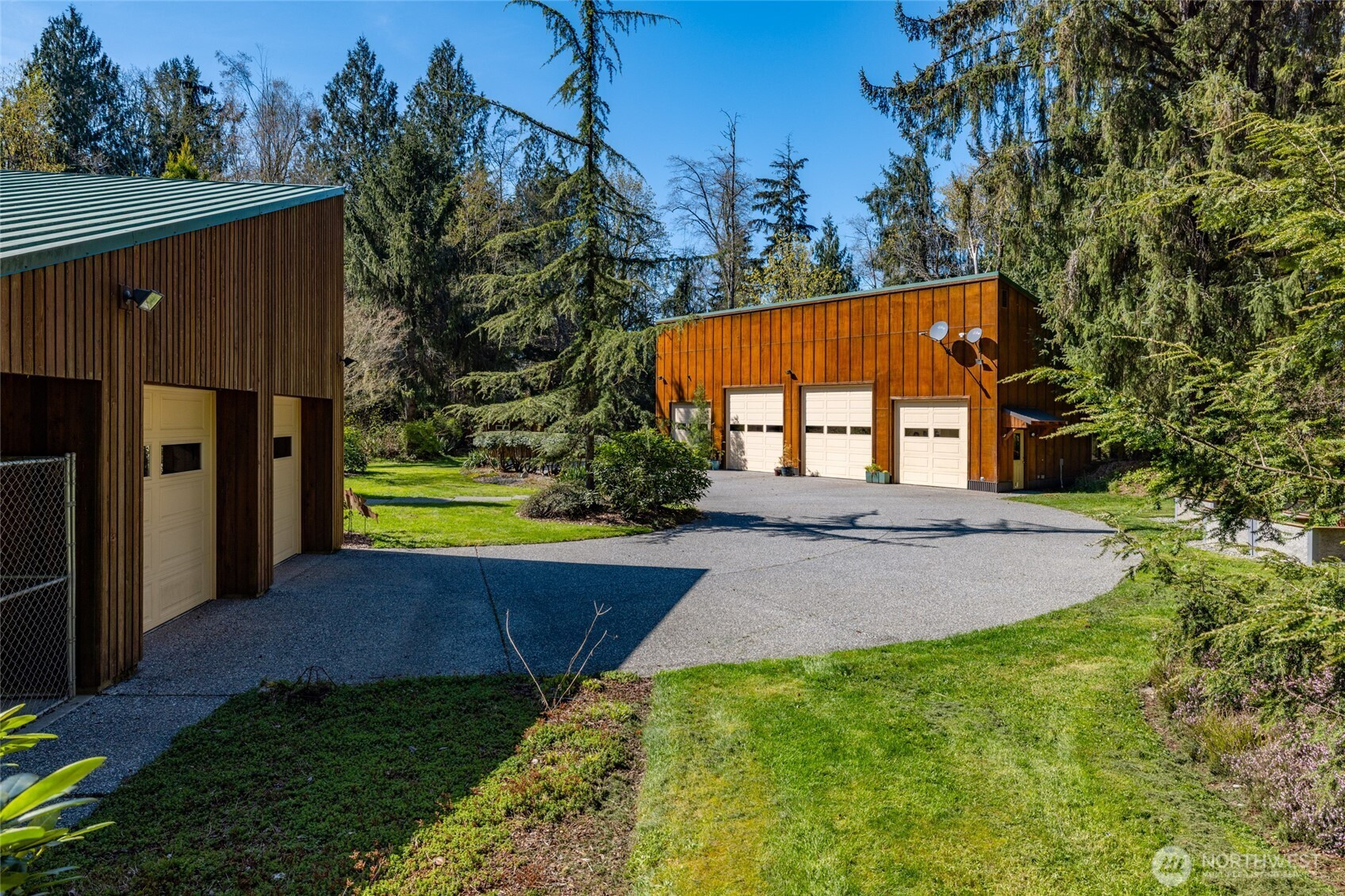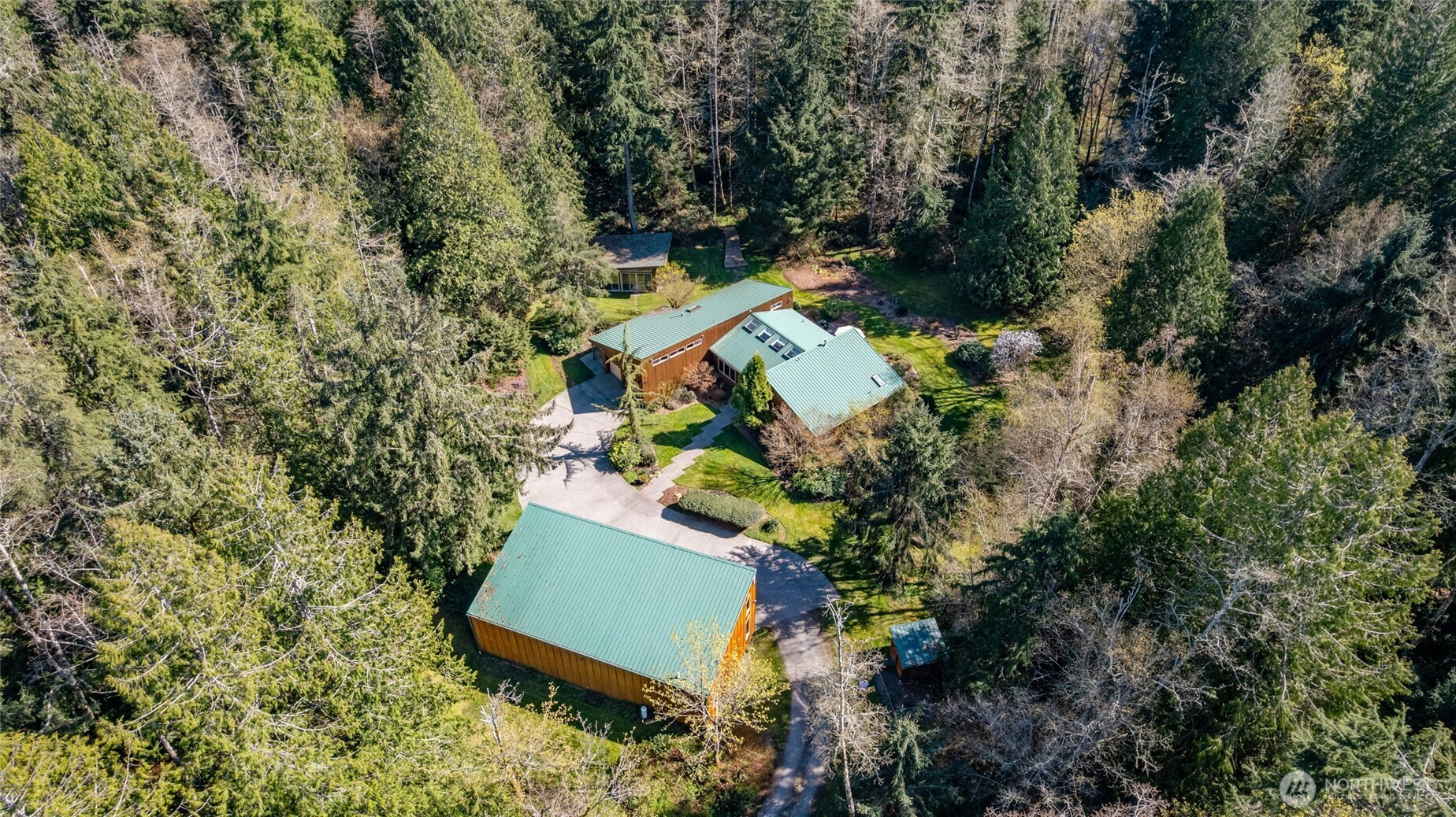 Minutes from town yet set in total privacy, this legacy property offers a serene retreat of quiet luxury, surrounded by 32+ acres of natural beauty. A gated, private drive winds through a peaceful pasture before rising to the homesite, where a contemporary 2,556 sq ft custom one-level home awaits, crafted w/warm woods, abundant natural light, & refined natural-stone accents. The thoughtful design features an open great-room layout w/built-ins, fireplace, radiant heat, mini-splits, a metal roof, & expansive use of skylights & windows to frame year-round light & ever-changing forest & wildlife views. The well-appointed kitchen has granite counters, a Thermador range, Dacor wall oven, microwave, Miele coffee maker, & island seating. Two spacious primary suites each offer private offices (Ziply fiber), sitting areas, walk-in closets, & premium en suites. A third bedroom provides flexible use as guest room, den, or craft area, & sits adjacent to a tiled ¾ bath. The large laundry room offers ample storage, a utility sink, & built-in ironing center. Attached 2-car garage. Exceptional outbuildings include 30×60 shop w/220 power, full bath, & four overhead doors, a 20×30 pool house w/swim spa, hot tub, shower, & on-demand hot water. Additional features include hard-wired automatic generator, kennel, RV clean out. Step outside & explore miles of trails, creeks, & even adjoining state natural-resource lands that border the property on the east, all accessible from the back yard.