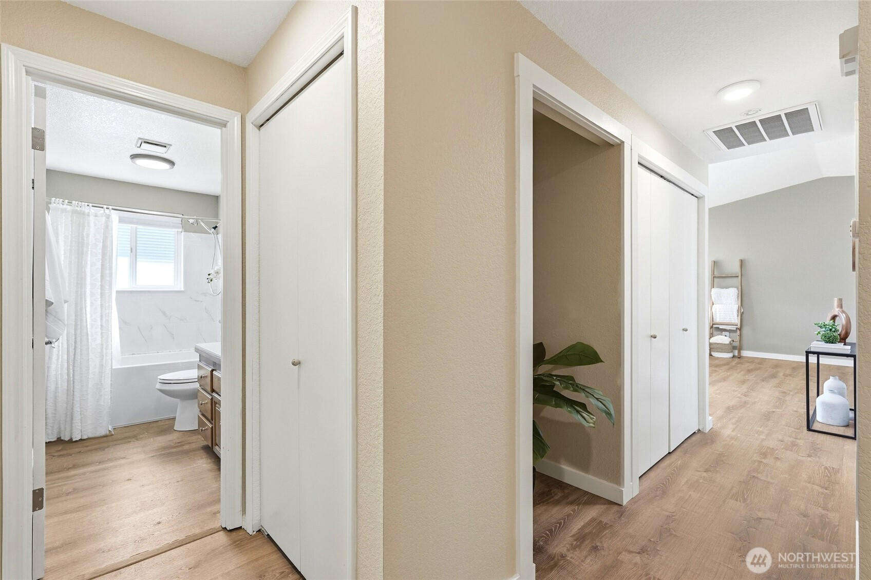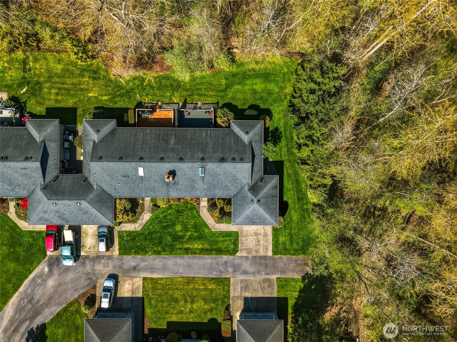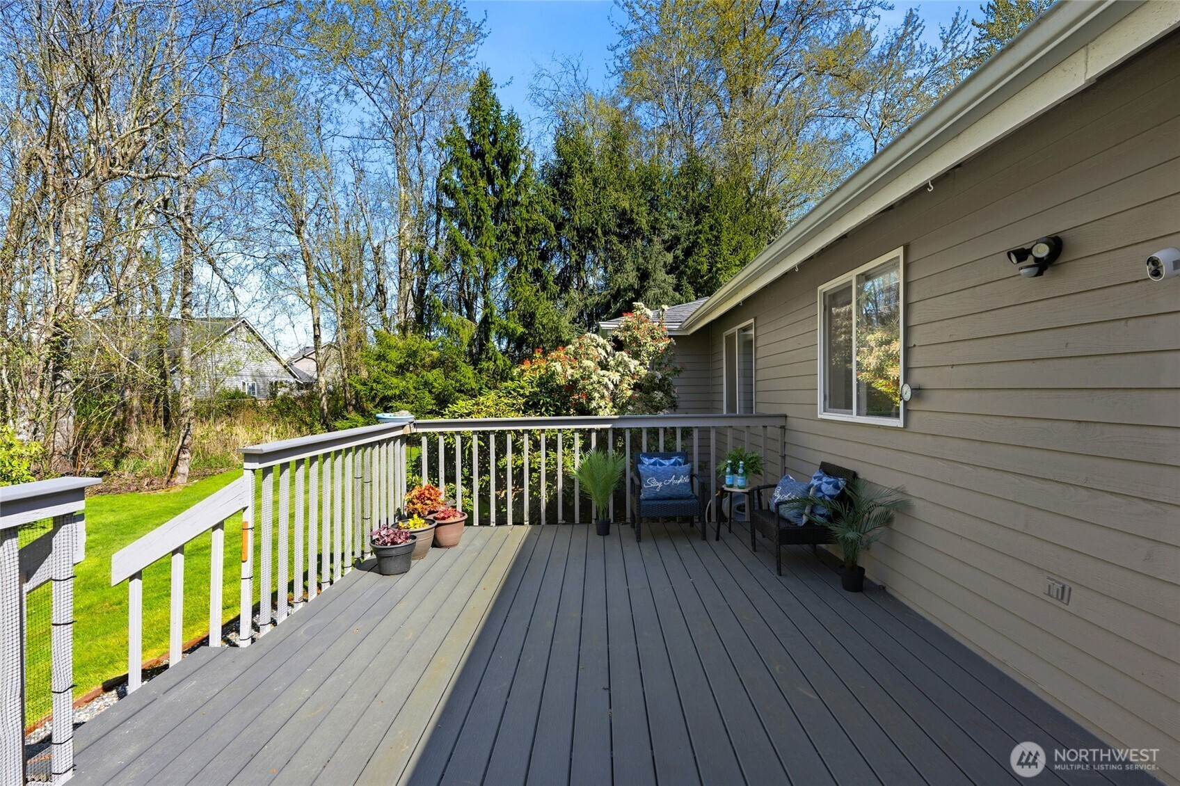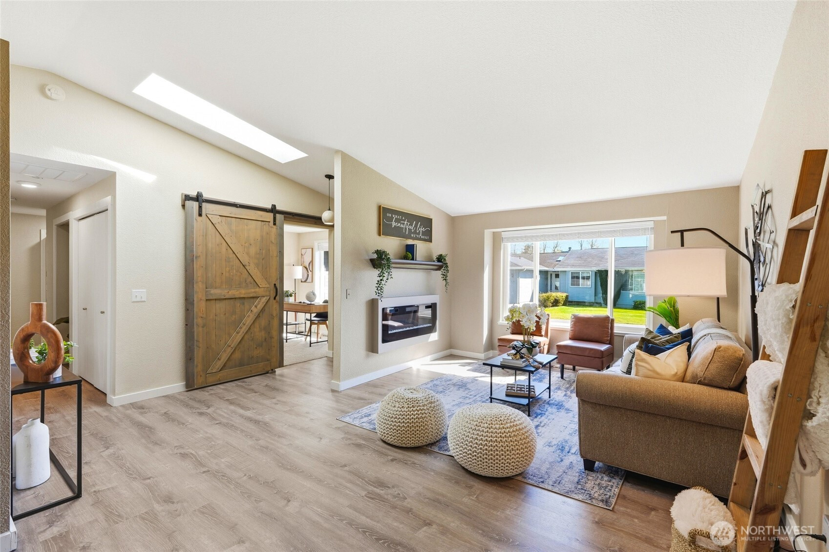 UPDATED and move-in ready, this beautifully maintained END-UNIT home truly has it all! Featuring A/C, updated flooring, fresh interior paint, beautifully renovated bathrooms, and a skylight that fills the home with natural light, this home offers comfort and style with convenient ONE-STORY LIVING. Enjoy three bedrooms, soaring vaulted ceilings, and a bright, open layout designed for everyday living. The primary suite offers a LARGE WALK-IN CLOSET and an updated ensuite bathroom with new flooring, light fixtures, sink, shower with wand, and a bidet. You’ll love the abundance of storage throughout, including multiple hallway closets, a LARGE PANTRY, and garage cabinetry for added organization. Step outside to your PRIVATE BACK DECK surrounded by peaceful woods, where you may even spot deer while enjoying your morning coffee. The TWO-CAR GARAGE and full driveway provide ample parking, and the quiet neighborhood is known for its friendly neighbors and welcoming atmosphere. ALL APPLIANCES STAY, making for an easy transition into your new home. Conveniently located just minutes from College Way shopping, dining, and everyday amenities. The WELL-MANAGED HOA includes water, sewer, garbage, Xfinity/cable TV, general landscaping, and exterior maintenance, along with fantastic community amenities including a playground, picnic area, clubhouse, HEATED INDOOR POOL, and exercise room. COME TOUR THIS ASAP!