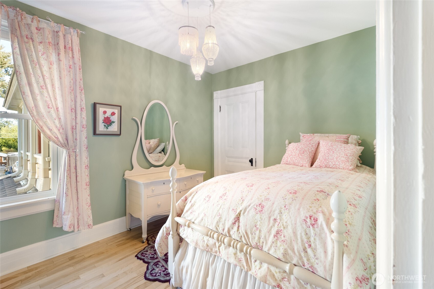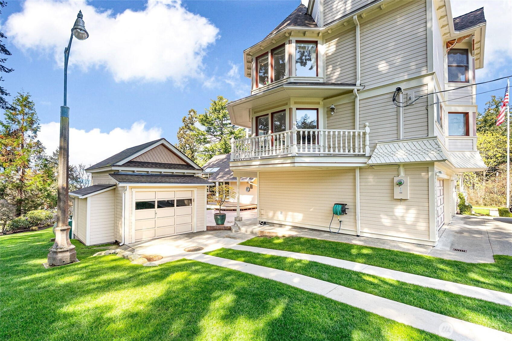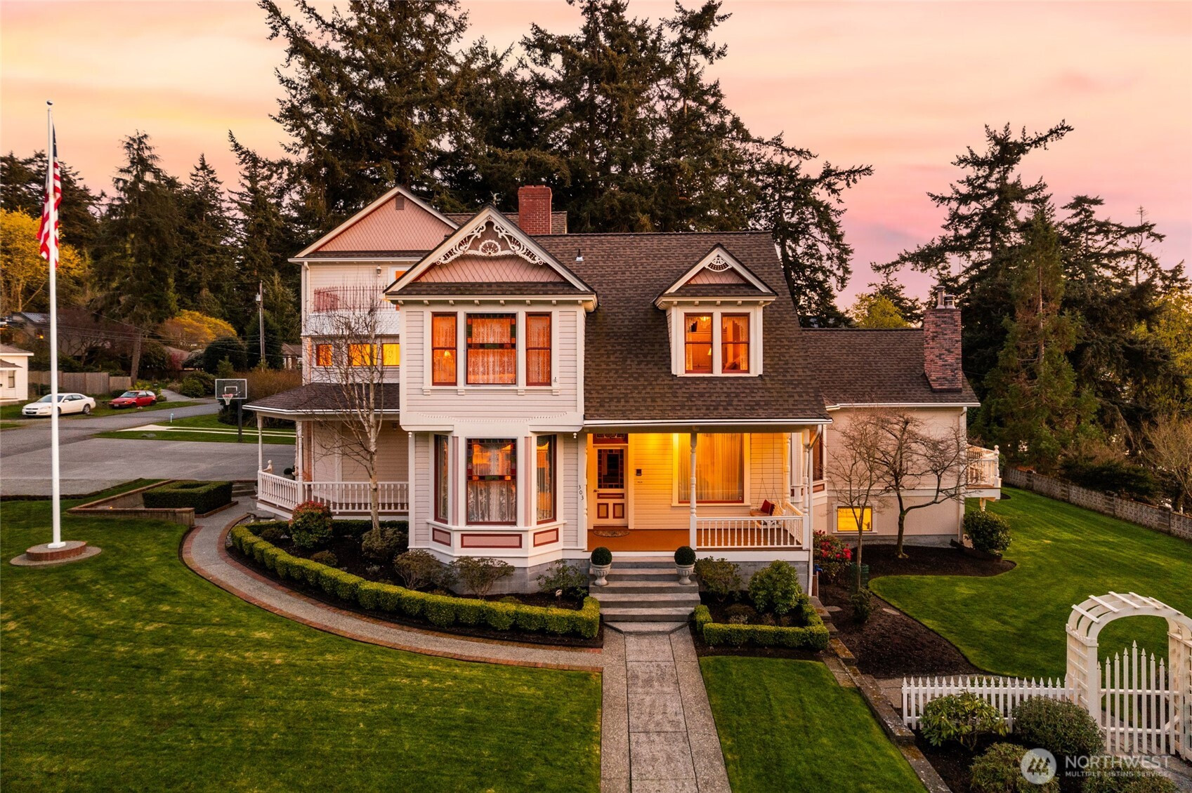 A rare opportunity to own a beloved piece of Anacortes history. This meticulously maintained Victorian home offers exceptional multi-generational living in the heart of Cap Sante. Bordering city parkland on a 0.28acre lot that lives far larger, this 6-bed, 4-bath, 5,961 sqft property captures commanding San Juan Island views to the west and peekaboo glimpses of Padilla Bay to the east. The main home welcomes you with a covered front porch, original decorative gable trim, and a parlor with brick fireplace, built-in shelving, and a built in window seat. The kitchen opens to a vaulted, skylit living room, an expansion completed in the 1970s, ideal for entertaining with seamless flow out to the deck. Upstairs are two bedrooms and a generous primary bedroom, plus an oversized bathroom with a double vanity, clawfoot tub and walk-in shower. The finished basement adds a rec room, office, bedroom, and updated bathroom. A hidden entrance on the second level connects to the 1,077sqft apartment, added in the 1990s and designed for aging in place, offering true independence with its own entrance, three-story elevator, spacious primary suite with a marble en-suite bathroom, full kitchen with a walk in pantry, an office, a rooftop deck on the northeast side of the house, and a glass-enclosed sunroom to soak in the views comfortably, 365 days a year. Recent updates to the home: roof (2022), septic (2022), boiler system (2023), and GFCI Protected electrical panel (2023).