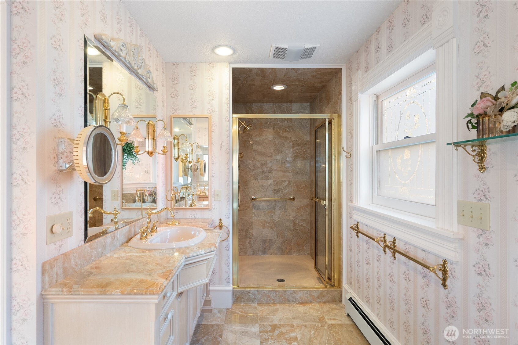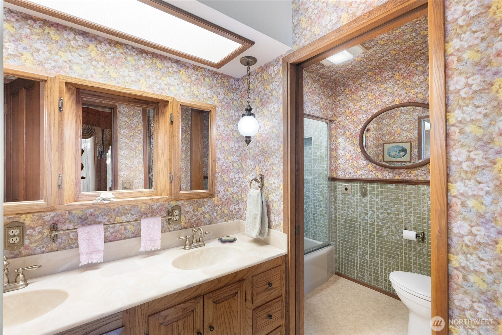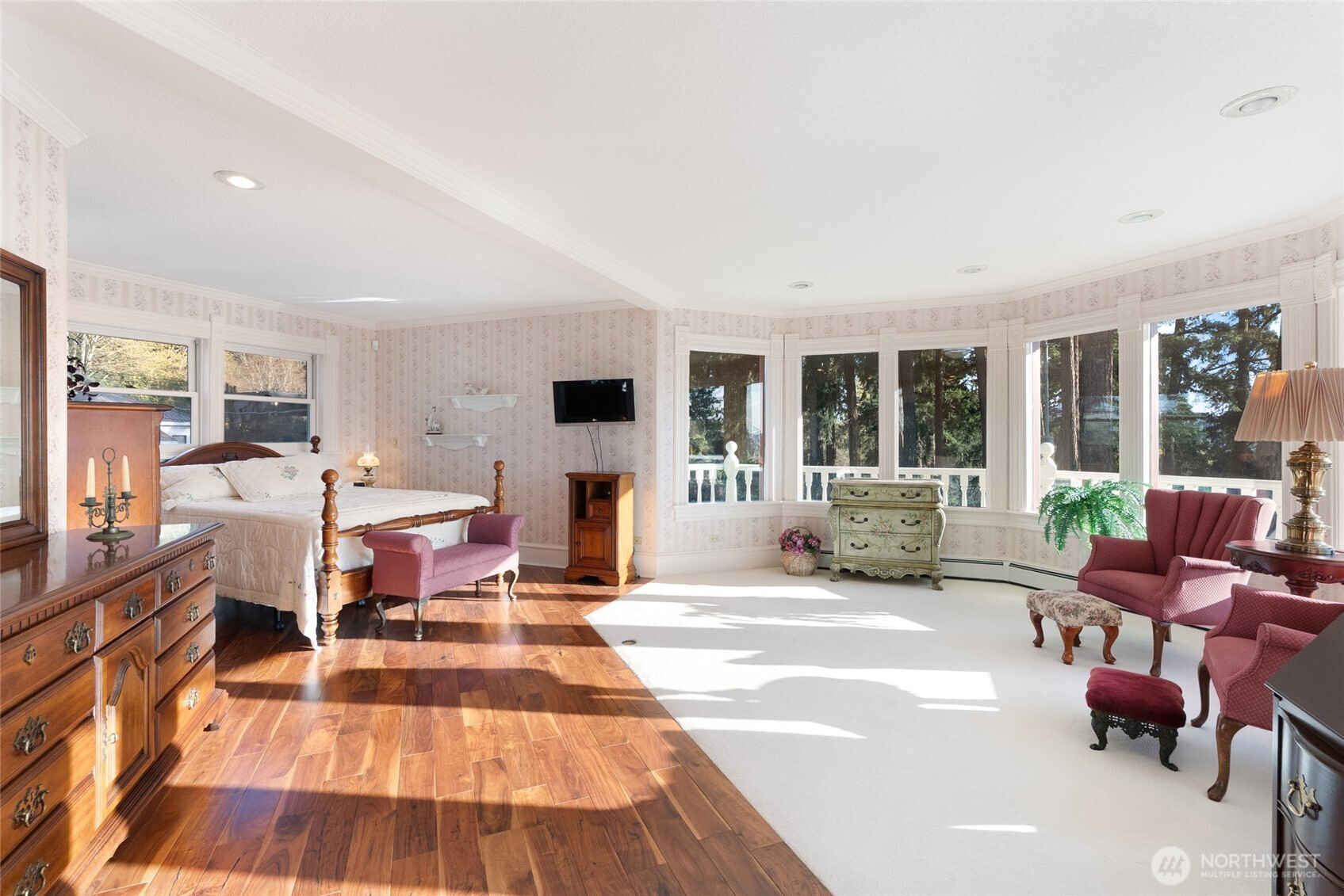 A rare opportunity to own a beloved piece of Anacortes history. This meticulously maintained Victorian home offers exceptional multi-generational living in the heart of Cap Sante. Bordering city parkland on a 0.28acre lot that lives far larger, this 6-bed, 4-bath, 5,961 sqft property captures commanding San Juan Island views to the west and peekaboo glimpses of Padilla Bay to the east. The main home welcomes you with a covered front porch, original decorative gable trim, and a parlor with brick fireplace, built-in shelving, and a built in window seat. The kitchen opens to a vaulted, skylit living room, an expansion completed in the 1970s, ideal for entertaining with seamless flow out to the deck. Upstairs are two bedrooms and a generous primary bedroom, plus an oversized bathroom with a double vanity, clawfoot tub and walk-in shower. The finished basement adds a rec room, office, bedroom, and updated bathroom. A hidden entrance on the second level connects to the 1,077sqft apartment, added in the 1990s and designed for aging in place, offering true independence with its own entrance, three-story elevator, spacious primary suite with a marble en-suite bathroom, full kitchen with a walk in pantry, an office, a rooftop deck on the northeast side of the house, and a glass-enclosed sunroom to soak in the views comfortably, 365 days a year. Recent updates to the home: roof (2022), septic (2022), boiler system (2023), and GFCI Protected electrical panel (2023).