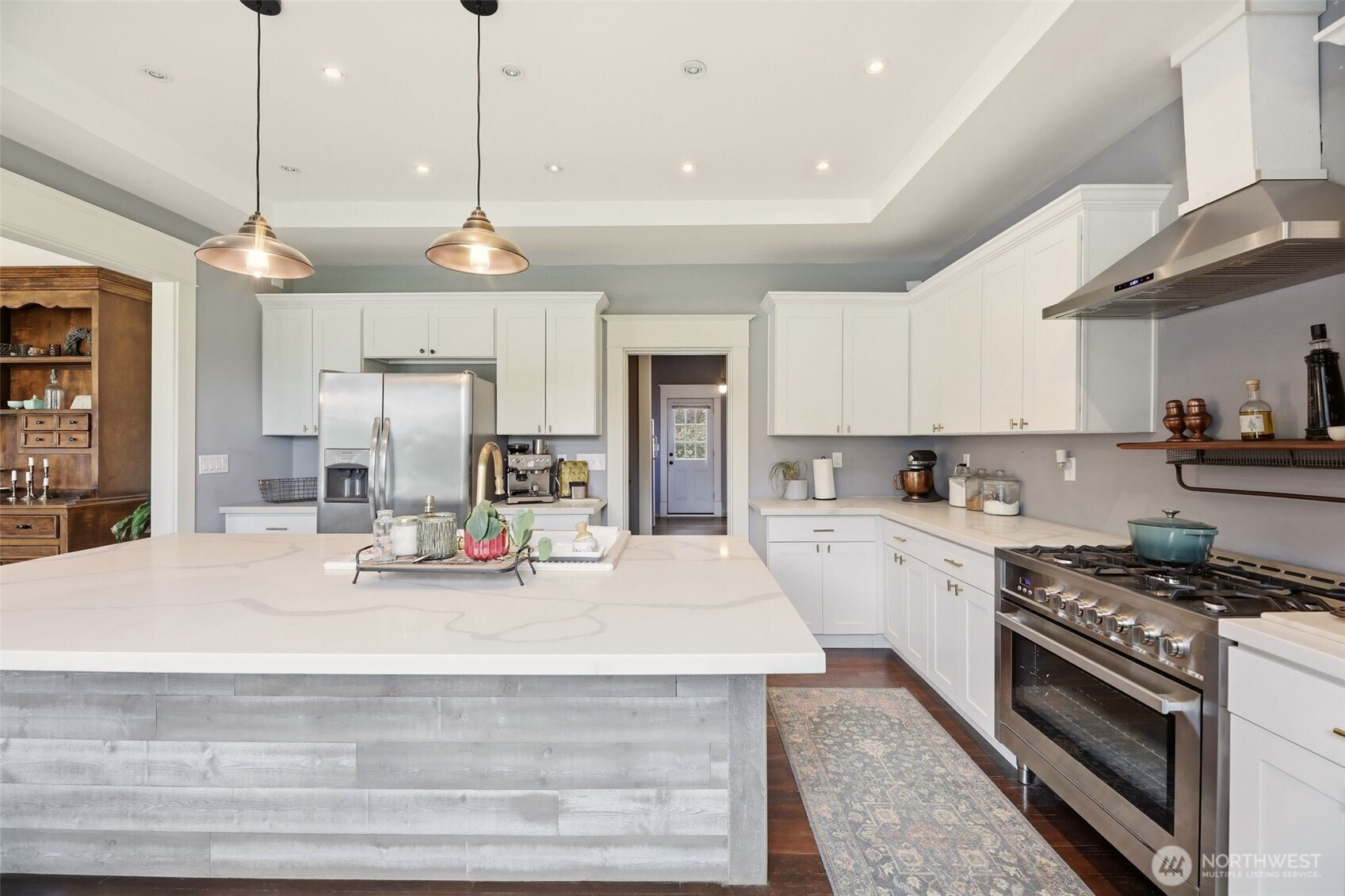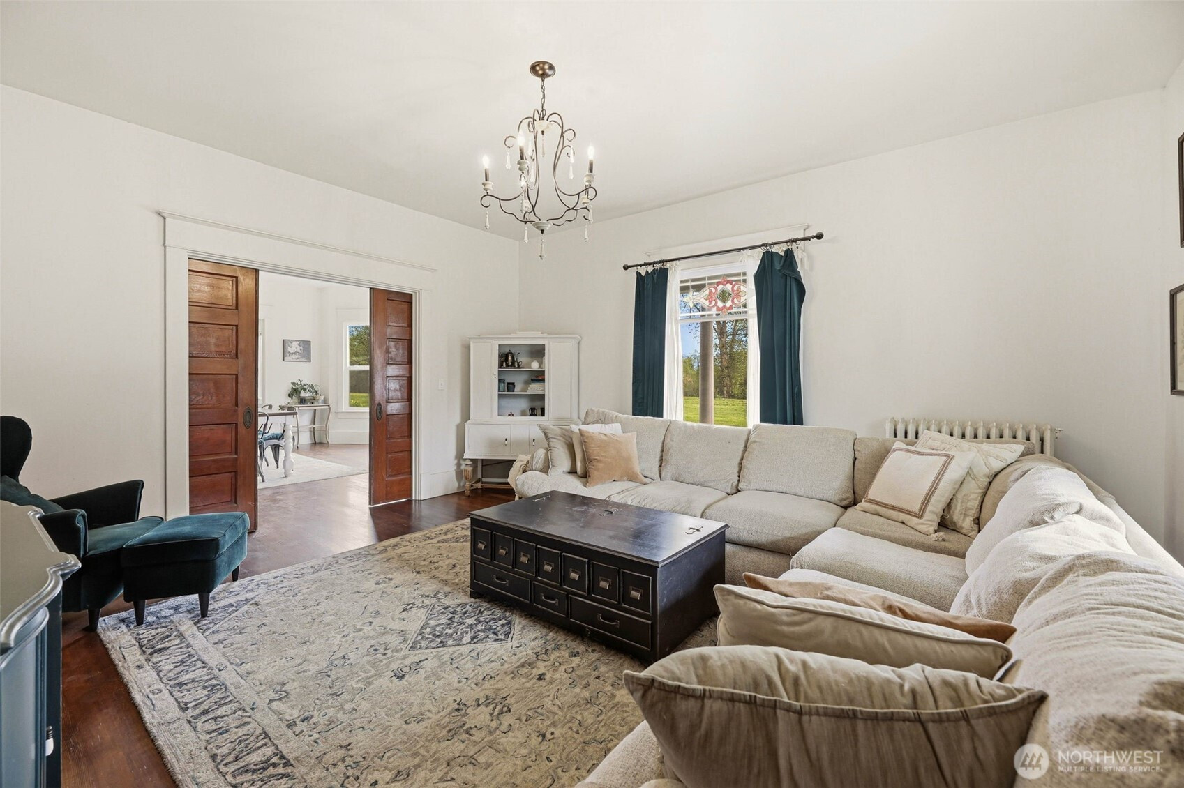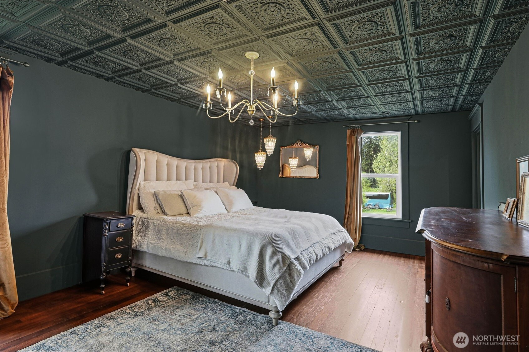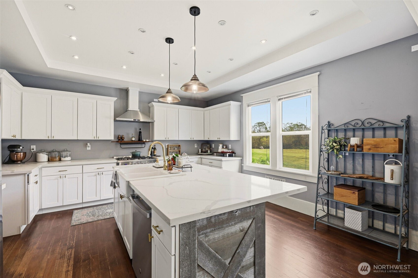 Timeless charm meets country living on 4.2 beautiful acres in the heart of Hamilton. Built in 1908, this stunning 4,323 sq ft farmhouse blends historic character with thoughtful updates and breathtaking 360° mountain and territorial views. Inside you’ll find original fir wood floors, pocket doors leading into the living room, and gorgeous stained glass windows that highlight the home’s rich history. The spacious kitchen features white quartz countertops, white shaker cabinets, a large apron sink, an oversized stove, a barnwood wrapped island, and an original butler’s pantry. Fresh interior and exterior paint and a durable black metal roof add modern appeal while preserving the home’s timeless feel. With 6 bedrooms, two are primary suites—including a main suite with an impressive walk-in closet, an office, and a finished attic space, —there is room for everyone to spread out. Outside, enjoy a classic wraparound porch, an established vegetable garden you can dine in on warm summer nights, a chicken coop, partial fencing, and a barn. The property includes three parcels totaling 4.2 acres with two shops (16x24 detached garage and 24x48 shop), offering endless possibilities for hobbyists, agriculture, or recreation. An unused shared city easement between parcels enhances the sense of privacy and open space. Located near the scenic Skagit River, this property has never experienced water getting inside the home—offering peace of mind along with unmatched beauty.