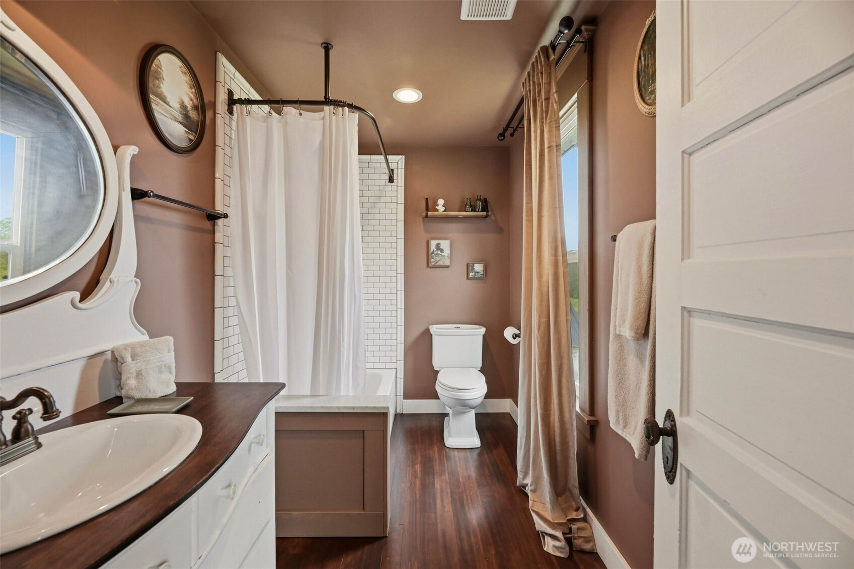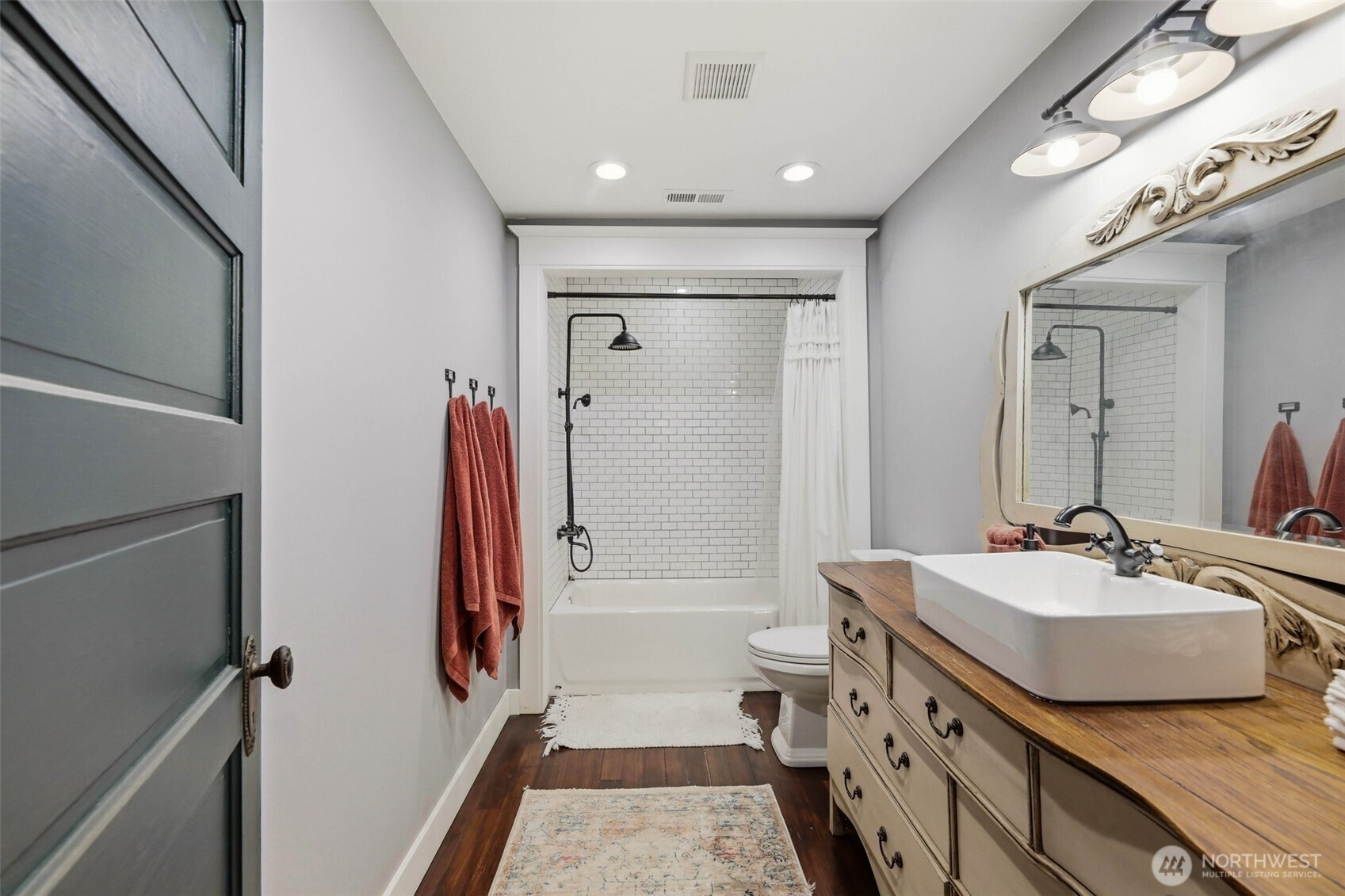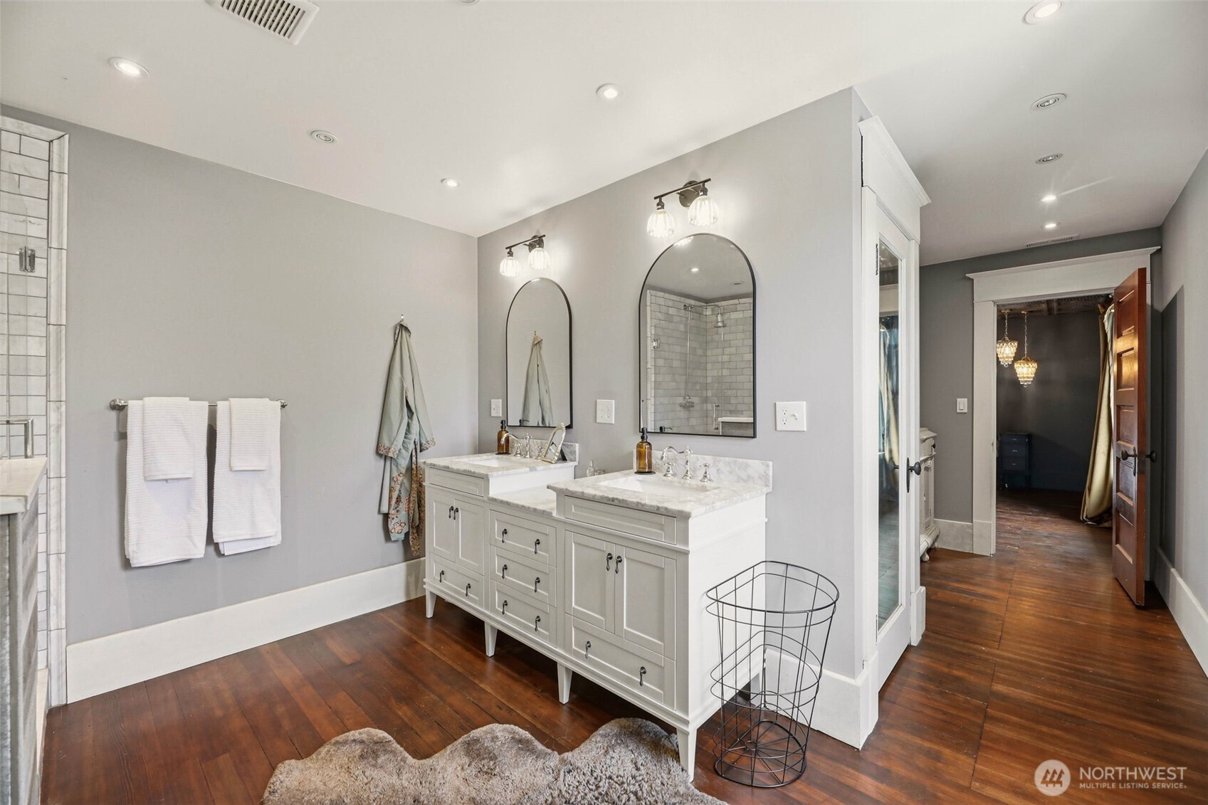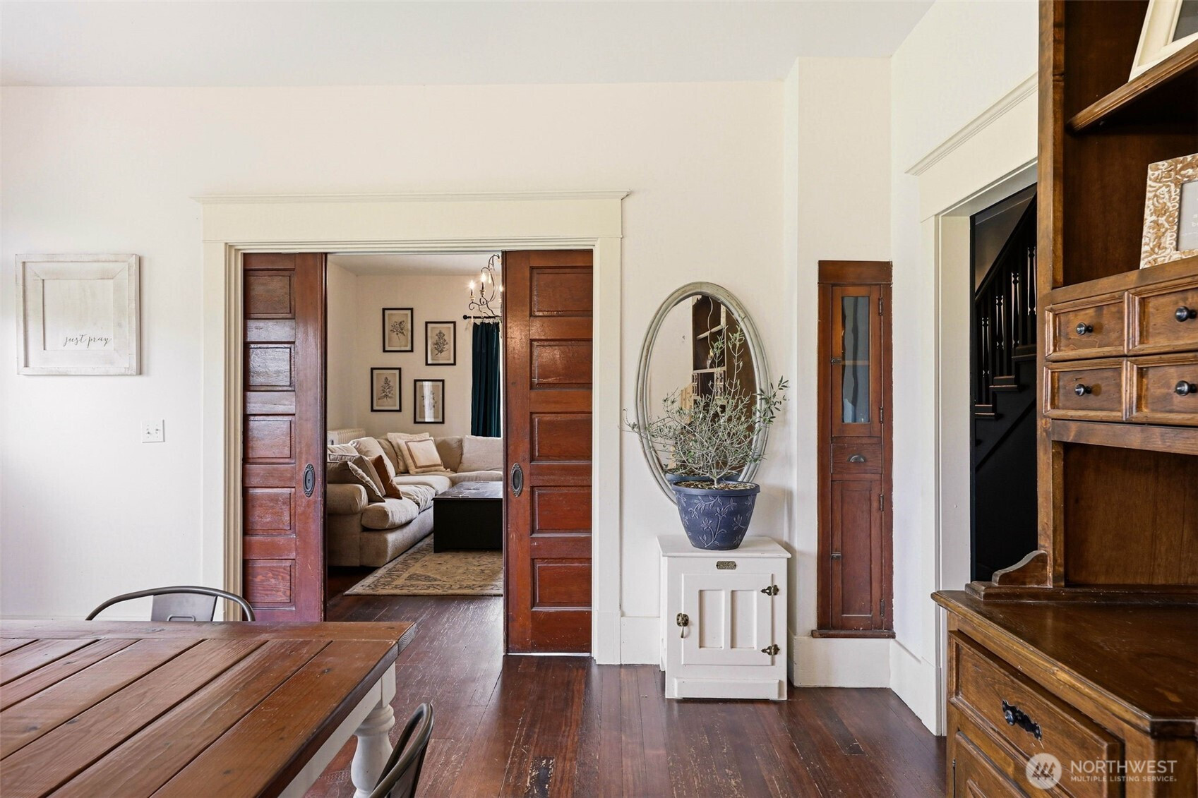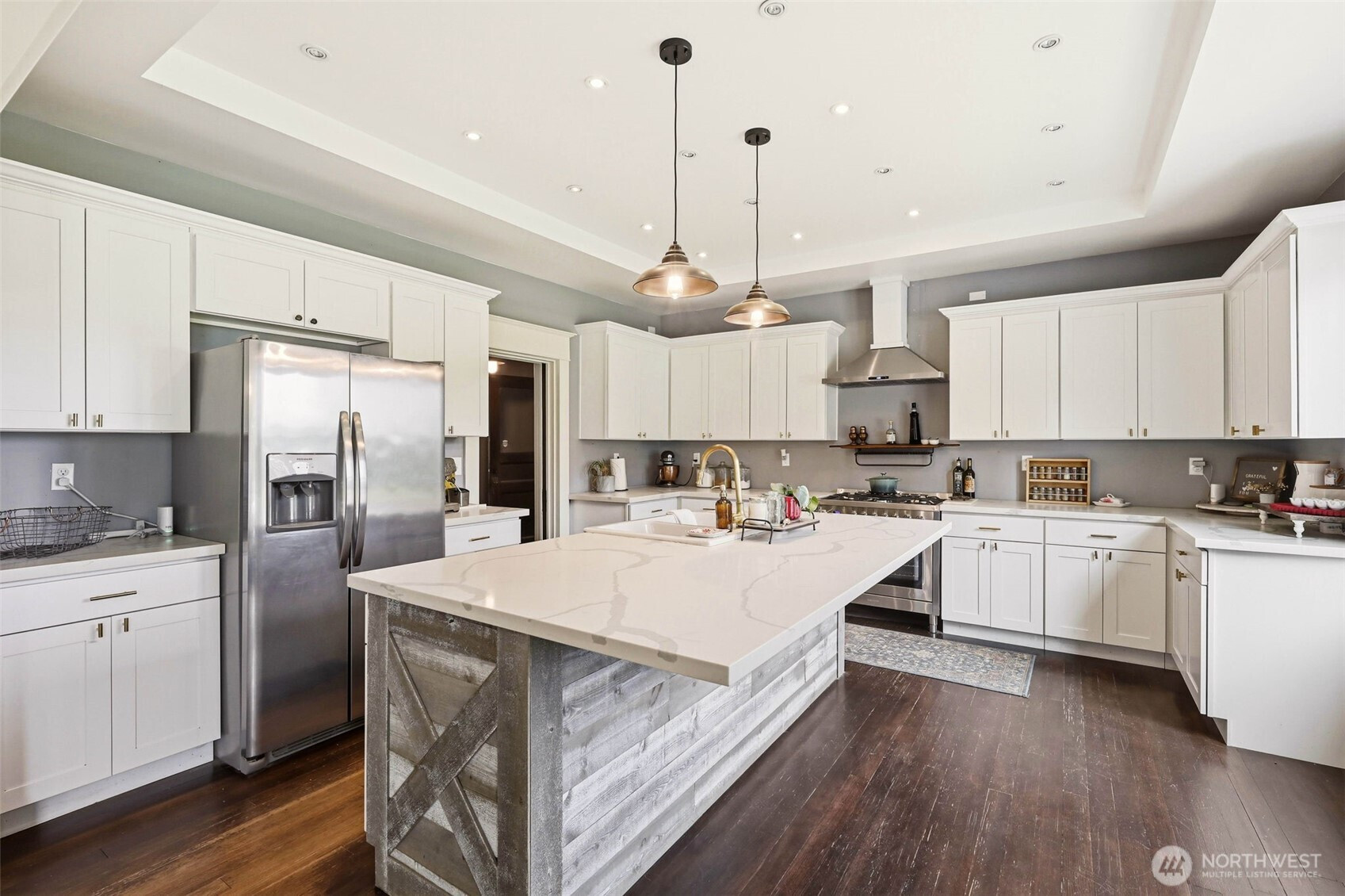Timeless charm meets country living on 4.2 beautiful acres in the heart of Hamilton. Built in 1908, this stunning 4,323 sq ft farmhouse blends historic character with thoughtful updates and breathtaking 360° mountain and territorial views. Inside you’ll find original fir wood floors, pocket doors leading into the living room, and gorgeous stained glass windows that highlight the home’s rich history. The spacious kitchen features white quartz countertops, white shaker cabinets, a large apron sink, an oversized stove, a barnwood wrapped island, and an original butler’s pantry. Fresh interior and exterior paint and a durable black metal roof add modern appeal while preserving the home’s timeless feel. With 6 bedrooms, two are primary suites—including a main suite with an impressive walk-in closet, an office, and a finished attic space, —there is room for everyone to spread out. Outside, enjoy a classic wraparound porch, an established vegetable garden you can dine in on warm summer nights, a chicken coop, partial fencing, and a barn. The property includes three parcels totaling 4.2 acres with two shops (16x24 detached garage and 24x48 shop), offering endless possibilities for hobbyists, agriculture, or recreation. An unused shared city easement between parcels enhances the sense of privacy and open space. Located near the scenic Skagit River, this property has never experienced water getting inside the home—offering peace of mind along with unmatched beauty.