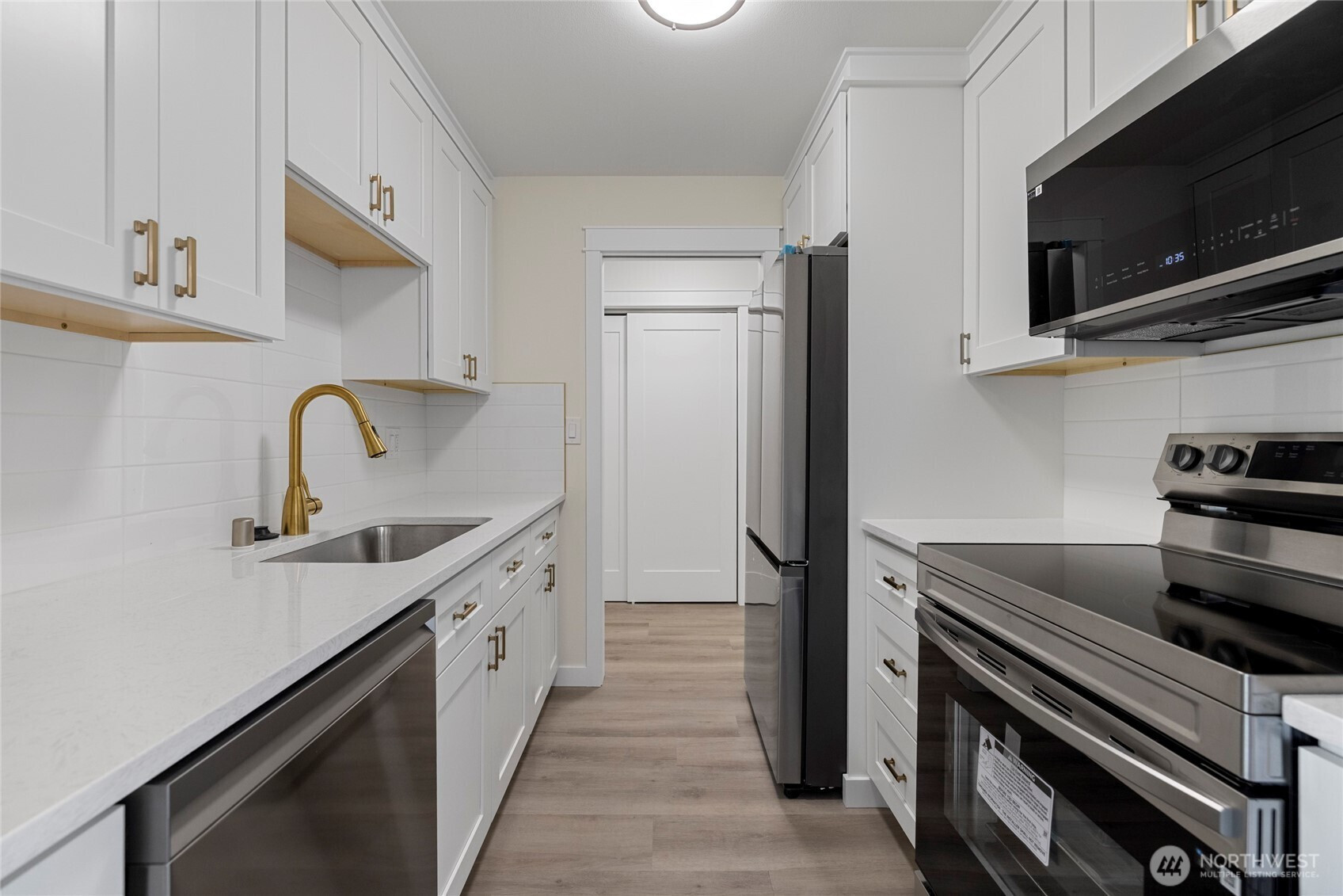 (503) 893-8874Fully updated! All new Flooring, paint, cabinets, appliances, light fixtures, solid core doors, trim, hardware, baseboards, Corian counters, window treatments and water heater. This 2 bed 2 bath 2nd floor unit is a must see. Kitchen has all stainless steel appliances, with soft close cabinets and Corian countertops. Living area has a real wood burning fireplace with white washed brick surround and black granite hearth. Slider door in living room leads out to your large deck with view of court yard and access to your private storage area. There is also more storage downstairs and laundry room. Nice sized Master bedroom has private En Suite. All privately owned, no rentals. Amazing location close I-5, hospital, park, shopping and restaurants.