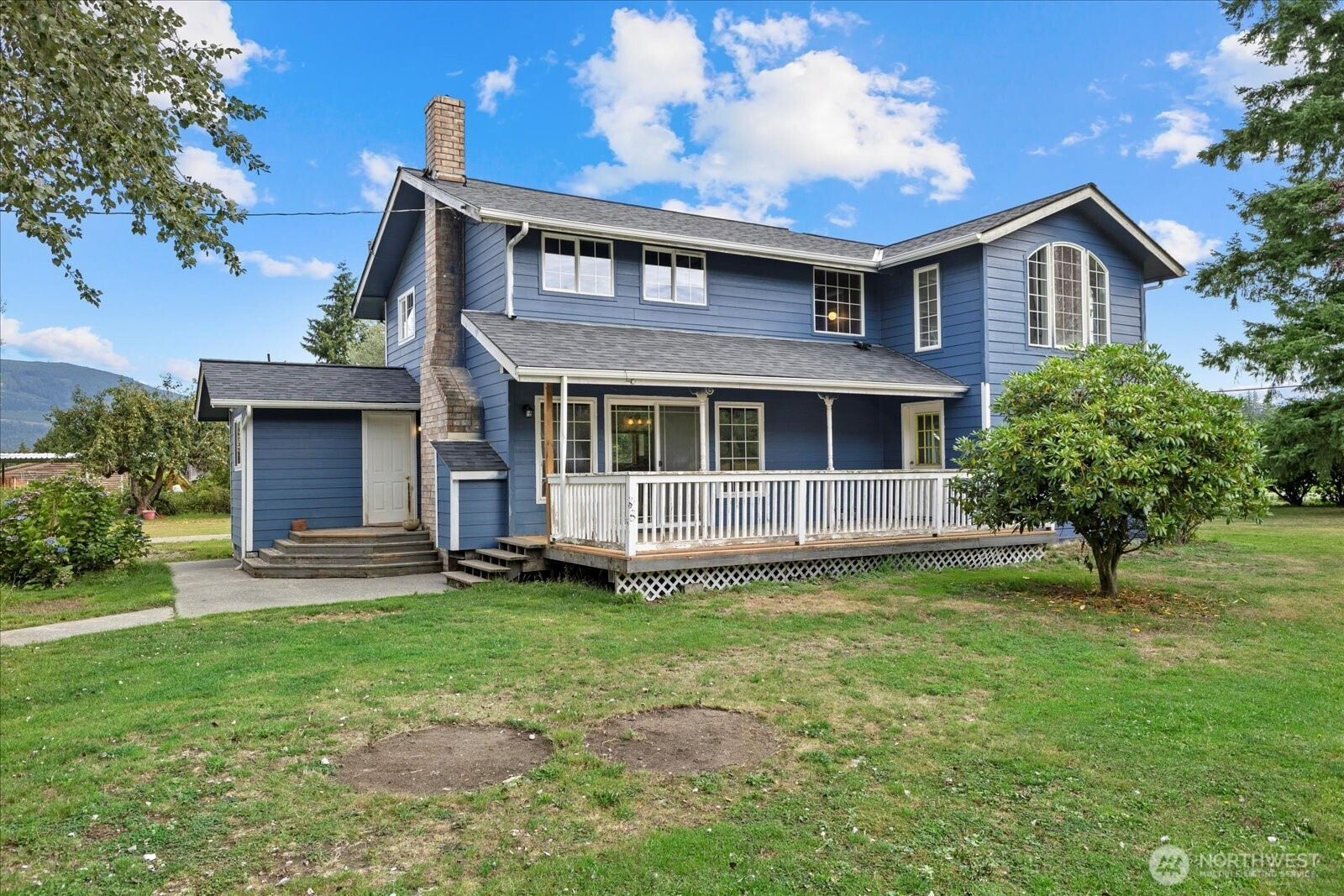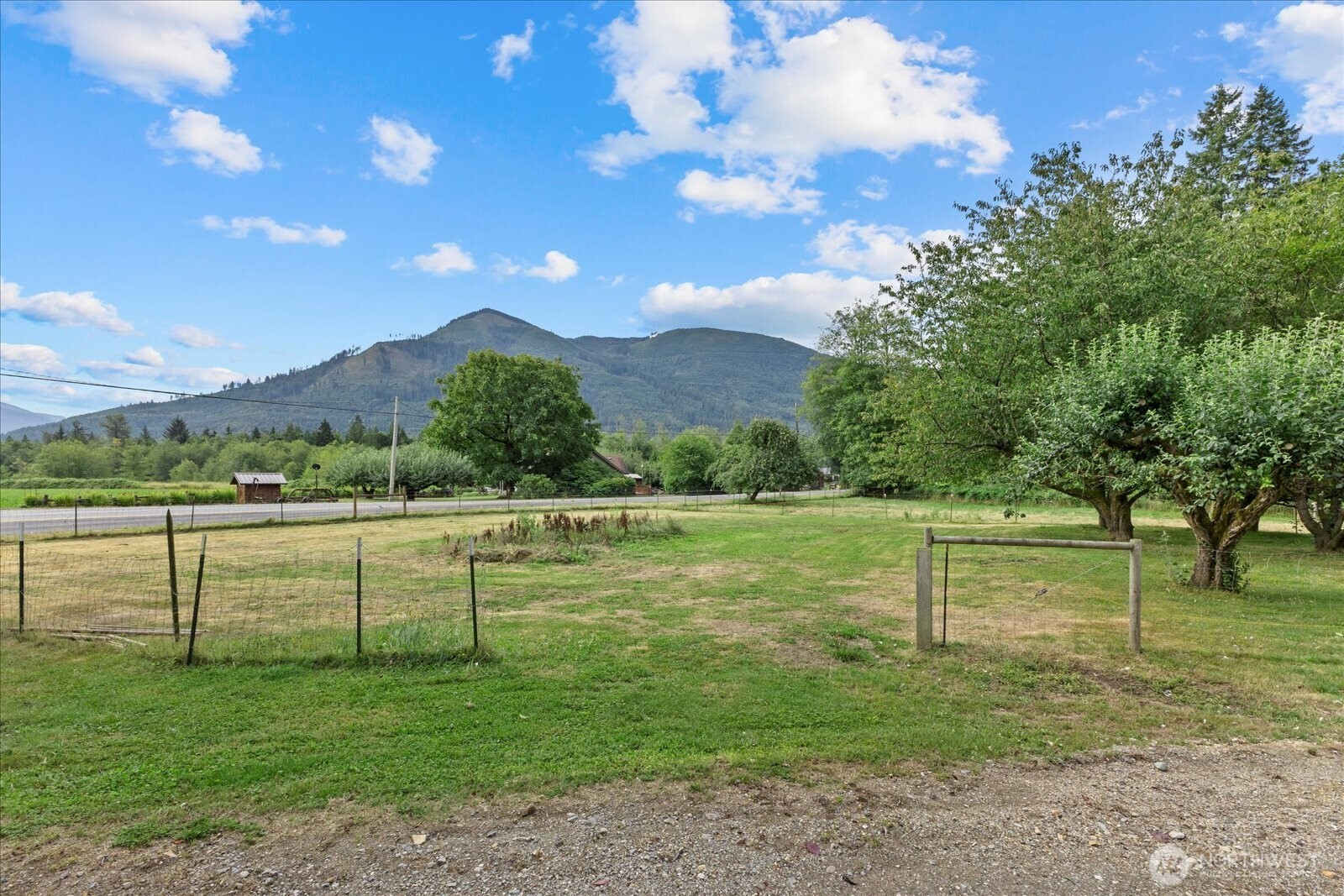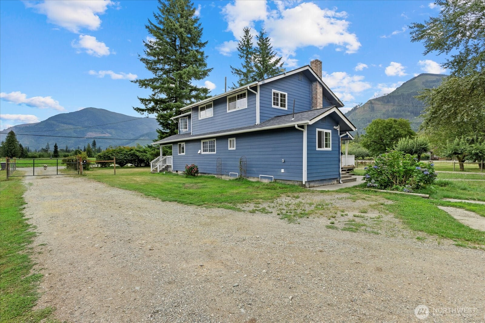 Enjoy peaceful country living on this spacious level 10-acre Farm! New Roof, Siding & Exterior Paint! 2- story home w/ tongue & groove ceilings w/ beams, woodstove & laminate flooring. Country kitchen, living, dining & family room. 4 bedrooms including the primary w/ its own 3/4 bath & walk-in-closet. Vintage dairy barn with loft, 5 stall horse barn, chicken coop, orchard, garden area & vast open pastures ~perfect for horses, cattle, goats etc. The detached 896 sq. ft ~2-car garage/shop or a possible Multi-Generational/ DADU/MIL. Privacy abounds w/ picturesque Mountain views & Morgan Creek bordering the south side of the property. No flood insurance needed. Room for your RV's & all your Toys. Ready for your TLC w/ so many possibilities.