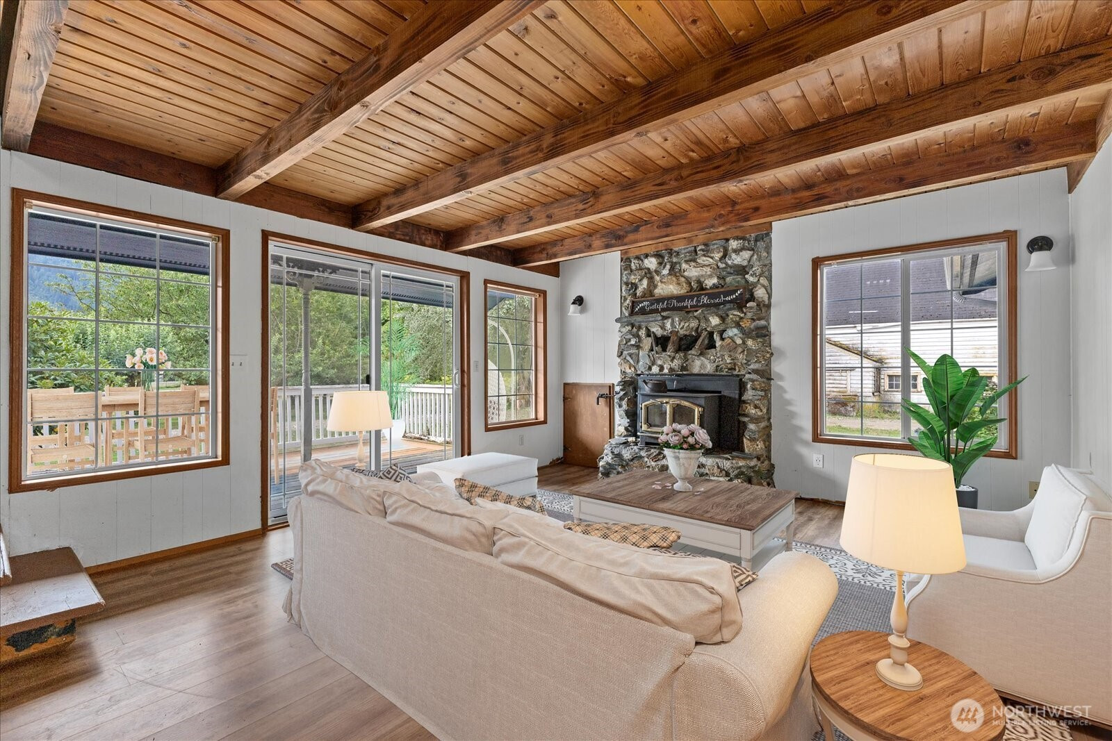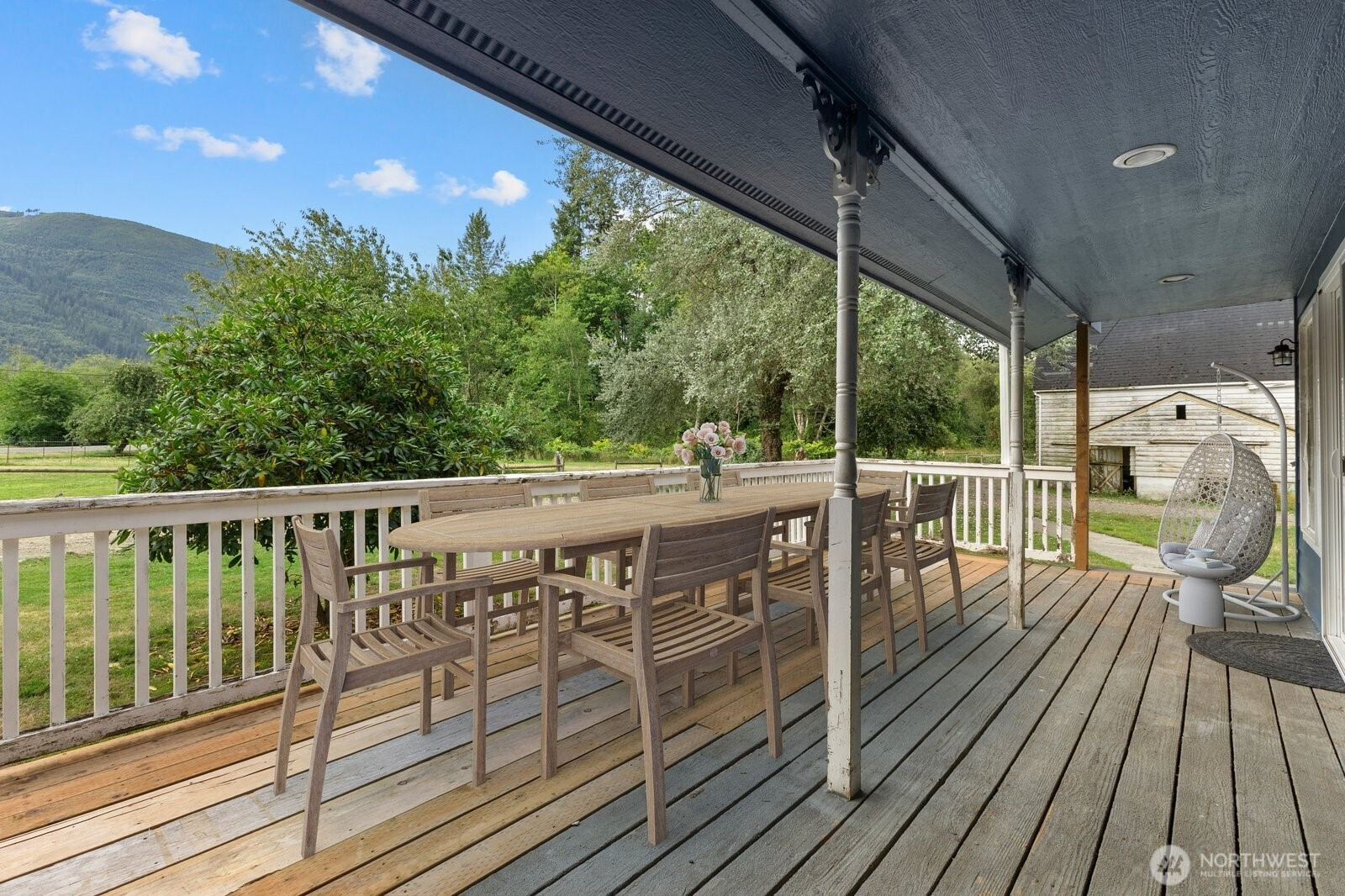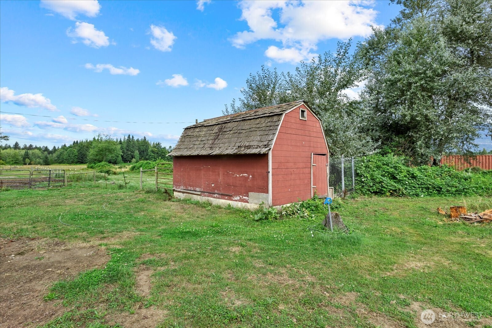 Enjoy peaceful country living on this spacious level 10-acre Farm! New Roof, Siding & Exterior Paint! 2- story home w/ tongue & groove ceilings w/ beams, woodstove & laminate flooring. Country kitchen, living, dining & family room. 4 bedrooms including the primary w/ its own 3/4 bath & walk-in-closet. Vintage dairy barn with loft, 5 stall horse barn, chicken coop, orchard, garden area & vast open pastures ~perfect for horses, cattle, goats etc. The detached 896 sq. ft ~2-car garage/shop or a possible Multi-Generational/ DADU/MIL. Privacy abounds w/ picturesque Mountain views & Morgan Creek bordering the south side of the property. No flood insurance needed. Room for your RV's & all your Toys. Ready for your TLC w/ so many possibilities.