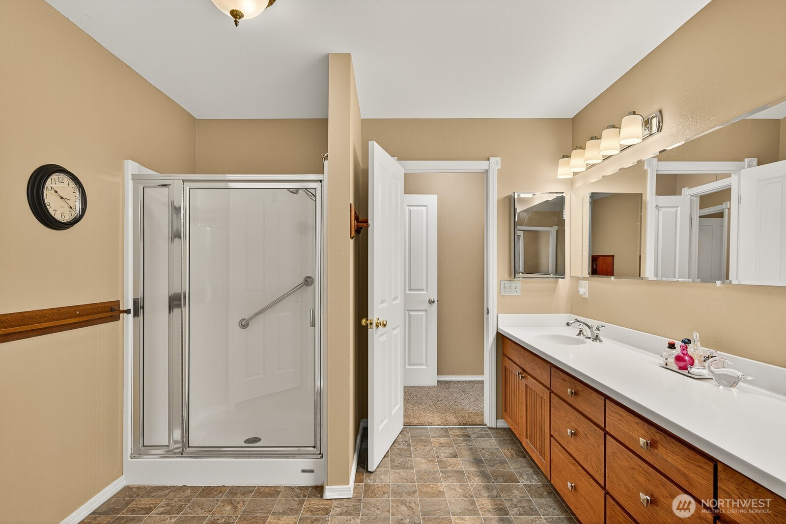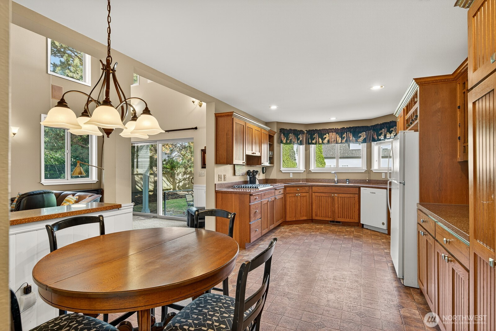 This stately Rock Ridge home sits at the end of a cul-de-sac, just steps from the scenic trails of the Anacortes ForestLands leading to Little Cranberry Lk. Designed for comfortable main-level living, it features a spacious primary w/walk-in closet & 5-piece bath. The soaring living room ceilings create an inviting sense of space, drawing your eye out to private backyard. Open fully equipped kitchen plus formal dining room & cozy kitchen nook make entertaining effortless or mornings peaceful over coffee. Upstairs, a massive family rec room w/wet bar & deck overlooking mature, landscaped yard. Two addtl bedrms & full bath complete the upper level. With generous storage & oversized 2-car garage, this home offers both elegance & practicality.
