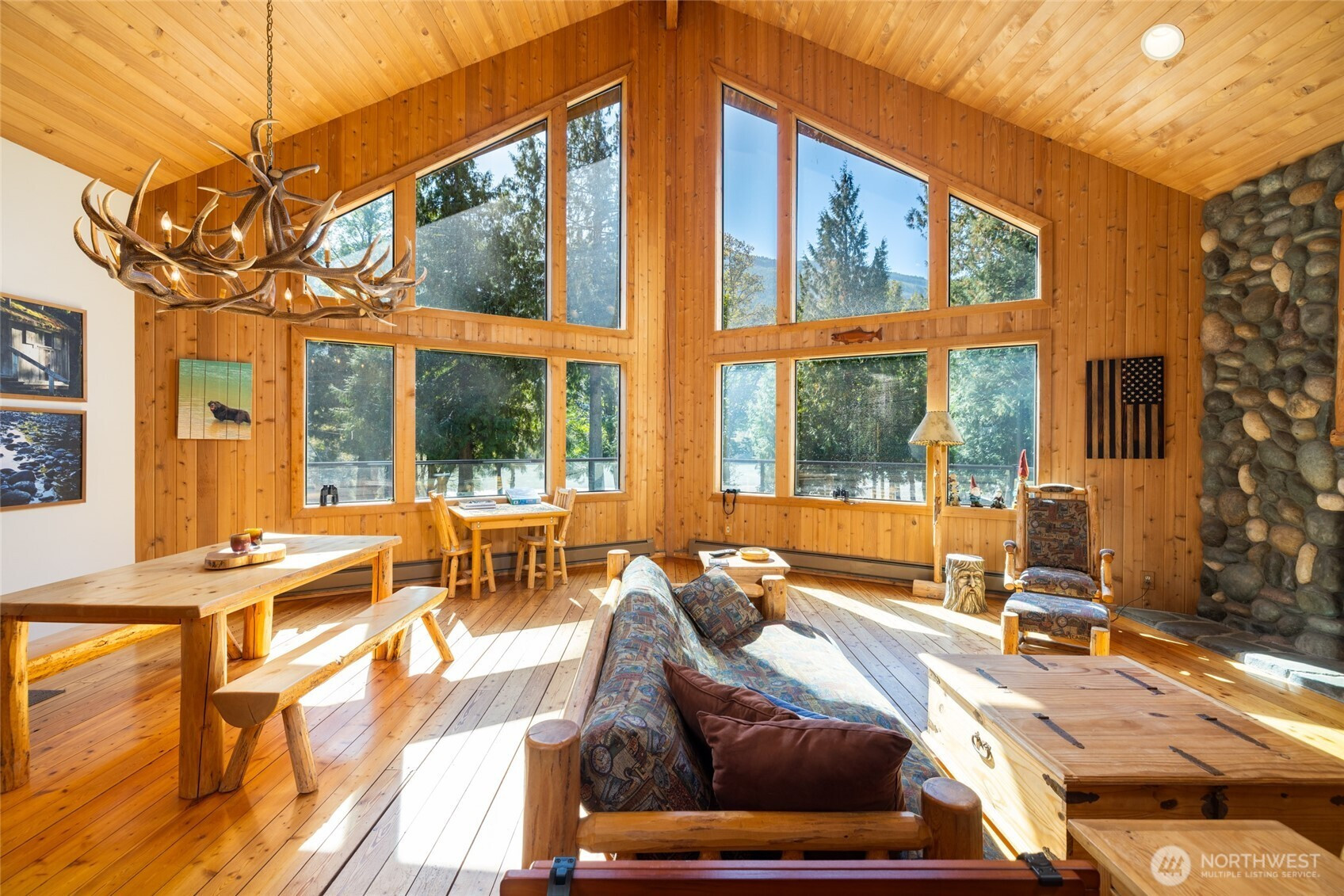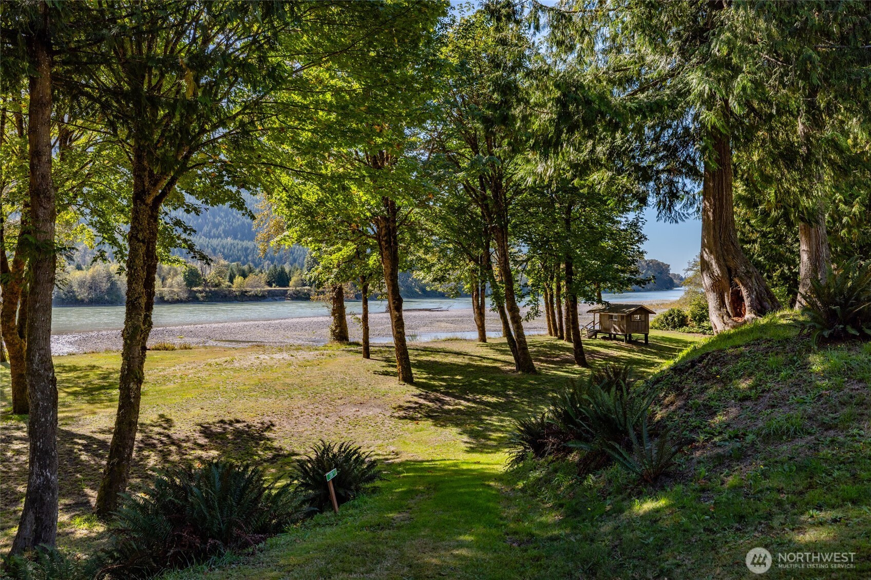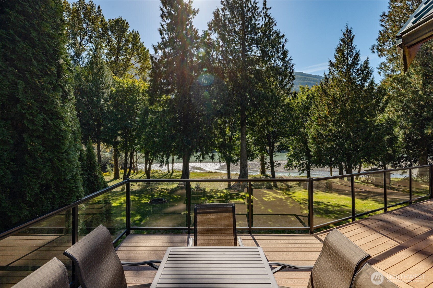 (503) 893-8874Rustic, log-accented custom residence on just shy of 2 acres of prime riverfront. Set in an upscale enclave w/other high-end homes, this dramatic 4000+SF home rests on park-like grounds w mature trees, private setting, grassy terraced land w/lots of room to play & relax. The vaulted great room, open kitchen w/eating bar, huge view deck, upper level primary suite w/views & a cozy finished basement are warm & inviting. Log posts, steps & railings, T&G ceiling, hardwood flooring, river rock fireplaces, fly-tying table, wine cellar, hot tub & more. Fish from your own property, check out the 'fishing cabin' on the lower level by the river. Make this amazing home your own & enjoy eagle-watching, sunsets & the ever-changing beautiful Skagit River.