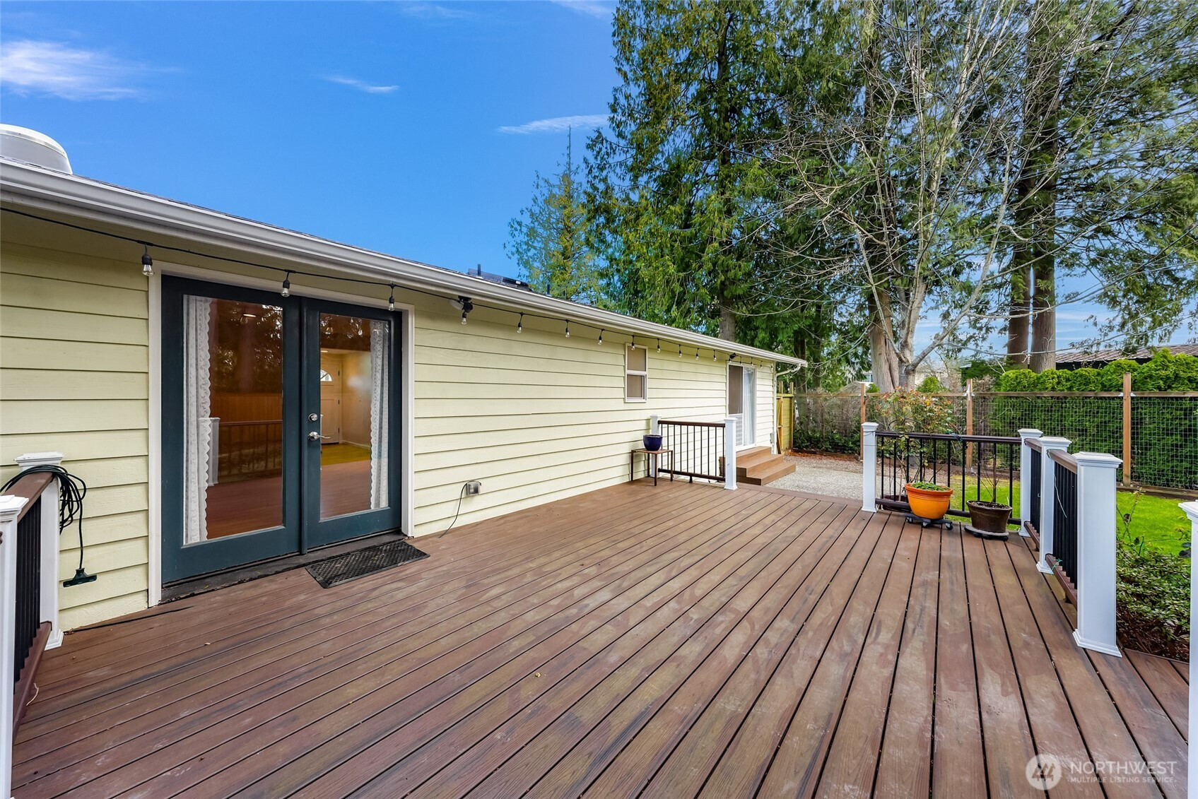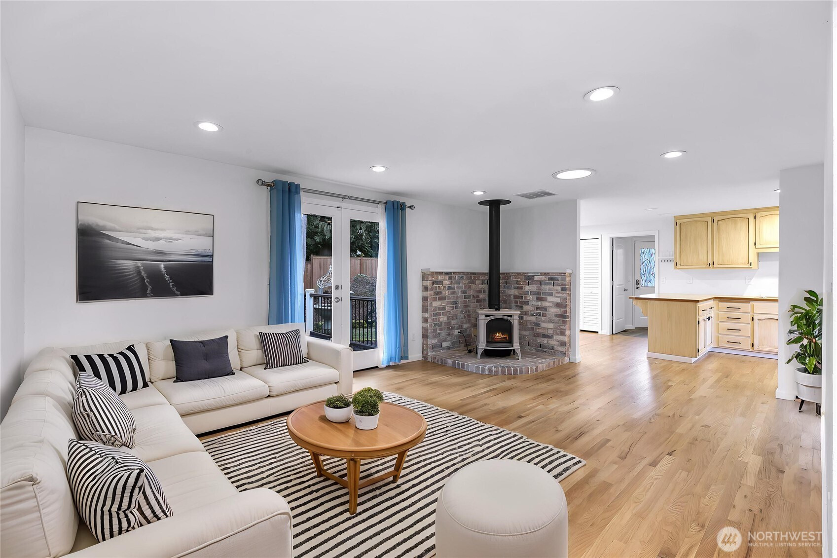 Tucked away on a quiet cul-de-sac in the Waugh Hill neighborhood, this well-maintained rambler offers comfort and functionality in a single-level design. Featuring just under 1,900 sq ft, the home includes a spacious primary suite with an ensuite bath and a walk-in closet, plus two additional bedrooms and a full bath. Skylights and a wall of windows bring in abundant natural light, highlighting hardwood floors and both formal and informal living and dining areas. The updated main bath adds a modern touch, while a freestanding gas stove provides warmth and ambiance. French doors open to a large deck overlooking a private, landscaped backyard. Includes an outdoor shed for storage. Conveniently located near amenities, this move-in-ready home offers a great combination of space, privacy, and livability. Turnkey or make it your own, you don’t want to miss this amazing home!