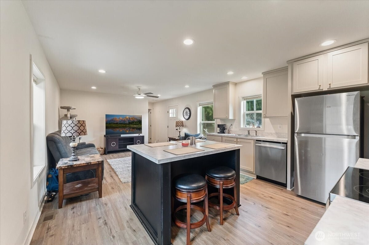 Welcome to Cape Horn, one of Skagit County’s most coveted river communities in Concrete, WA. This brand-new manufactured home sits on one of the highest points in the neighborhood and was not impacted by the record 2025 flood levels. Title eliminated & truly move-in ready, the home features all-new materials, 900sqft of optimized living space, 2 bedrooms, 1.75 baths, LVT flooring, stainless steel appliances, double-pane vinyl windows, & forced air heat. The open-concept kitchen & living area is perfect for gathering, highlighted by a large island for dining & a quality vent hood for gourmet cooking. The spacious primary bedroom offers an ensuite bath with shower & walk-in closet, while the second bedroom is thoughtfully located off the living room. Set on a sprawling level .83-acre lot with RV parking, fruit trees, concrete patio, and fully fenced dog run. The manufactured home sits on a concrete block foundation with high quality aluminum skirting. A massive 1000+ sqft 4-car workshop includes an office, loft, propane heat, its own address, and home business potential. Steps from the Skagit River with community beach access. Peaceful & secluded, only 10 minutes to historic Concrete, Baker hotel, the famous Hub Tavern, Annie's Pizza station. 35 minutes to Sedro-Woolley, Mount Vernon, Burlington, & 90 minutes to BC Canada. Transit lines 70X & 717 nearby. Camper, 2004 Task Master Trooper tractor, Husqvarna riding mower, & Polaris 4 wheeler negotiable.