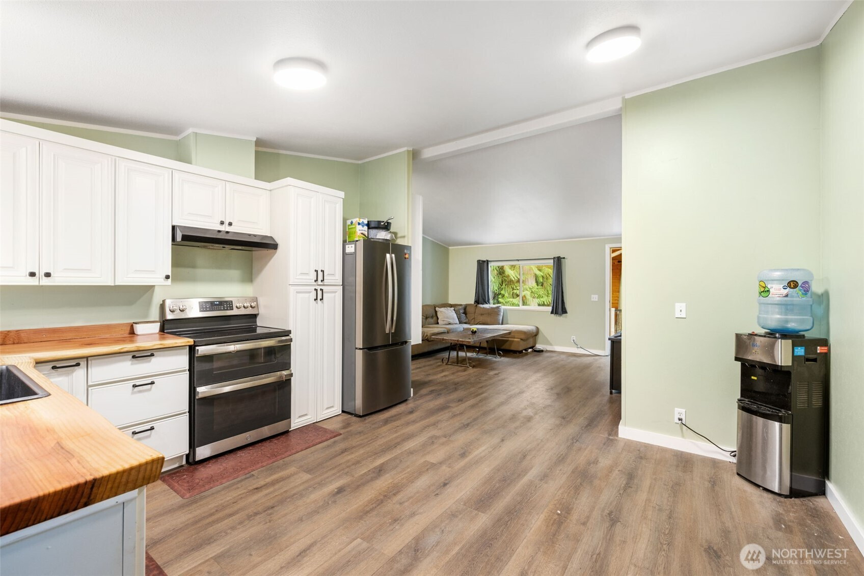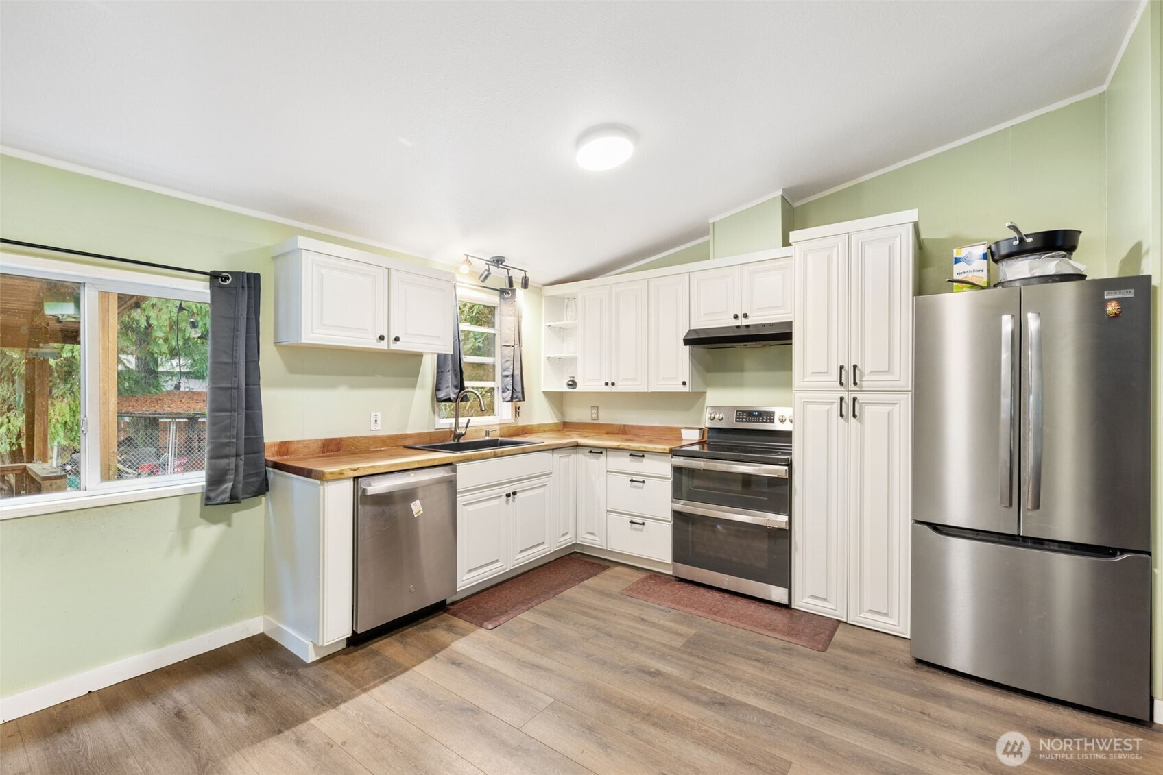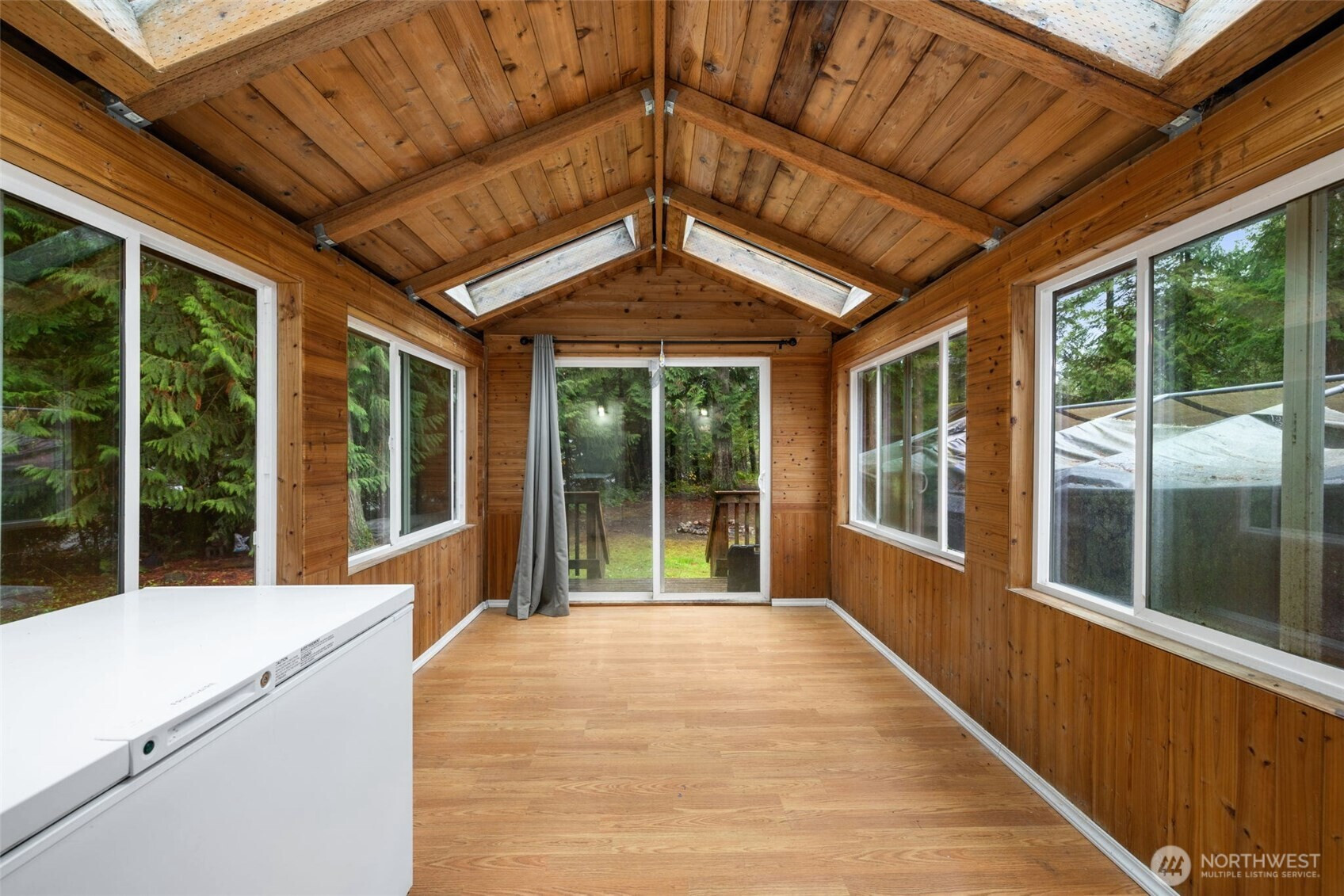 Wake up each day surrounded by towering trees and incredible privacy in this beautifully updated 3-bed, 2-bath home on a gorgeous wooded lot. The remodeled kitchen—with warm Red Sequoia butcher block counters, new cabinets, and new appliances—flows into inviting living spaces with vaulted ceilings. Enjoy a morning cup of coffee and bonus space in the sun room, the perfect space for hobbies or entertaining. Step outside to unwind in the gazebo, explore the spacious yard, or make use of the 3 outbuildings and kennel. With a new roof and peaceful, scenic setting, this is a place to truly settle in and breathe.